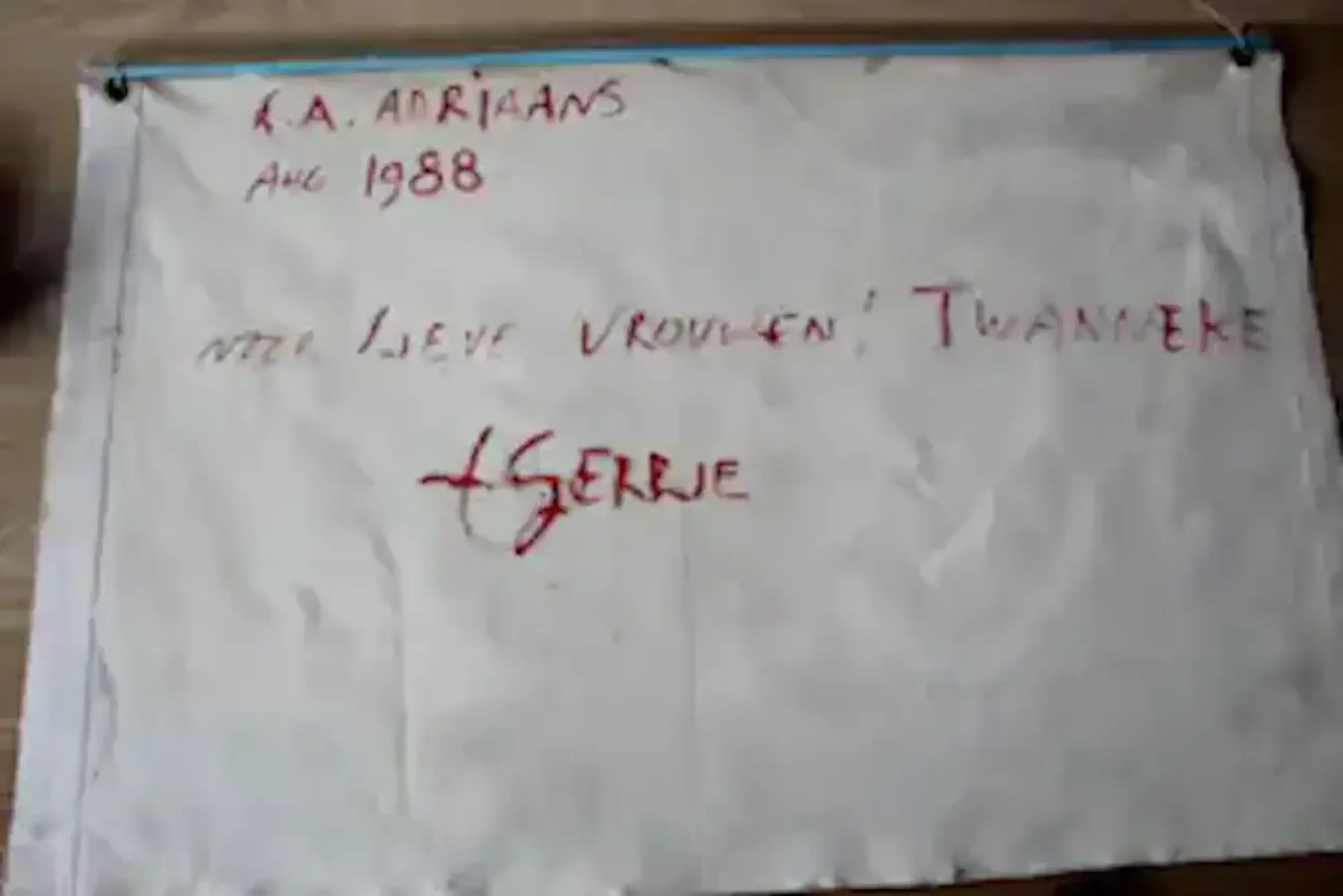Besonderes Werk von Leon Adriaans. Dieses Werk ist seiner Frau und seiner Tochter gewidmet. Auf der Rückseite befindet sich der Text: „.voor lieve vrouwen Twanneke en Gerrie“. Abmessungen Werk: H67,5 x 103 cm.