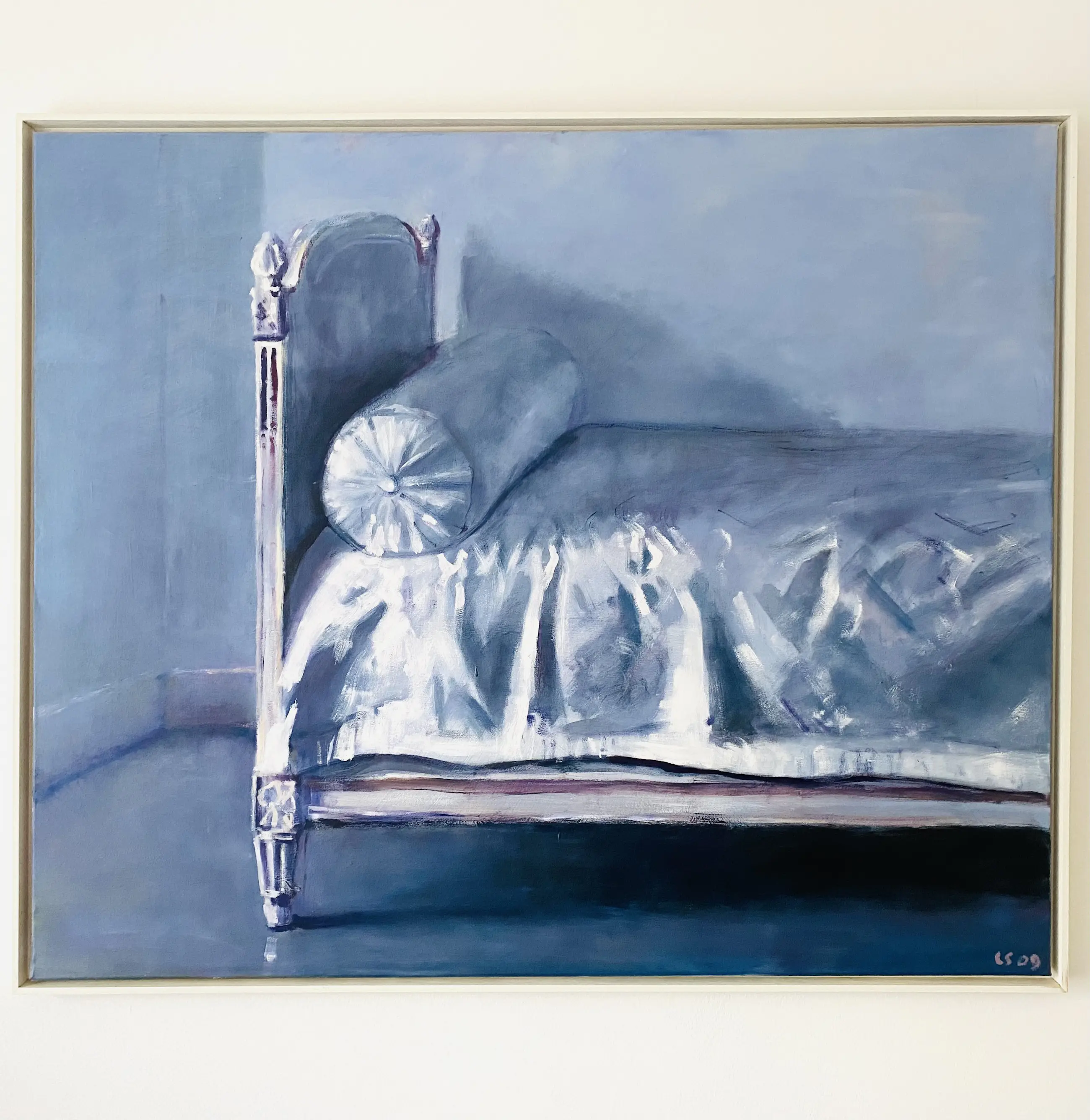 Titel: Bett Öl auf Leinwand Maße: 100 x 120 cm Signiert: Unten rechts LS '09 Inklusive Rahmen, 104 x 124 cm
