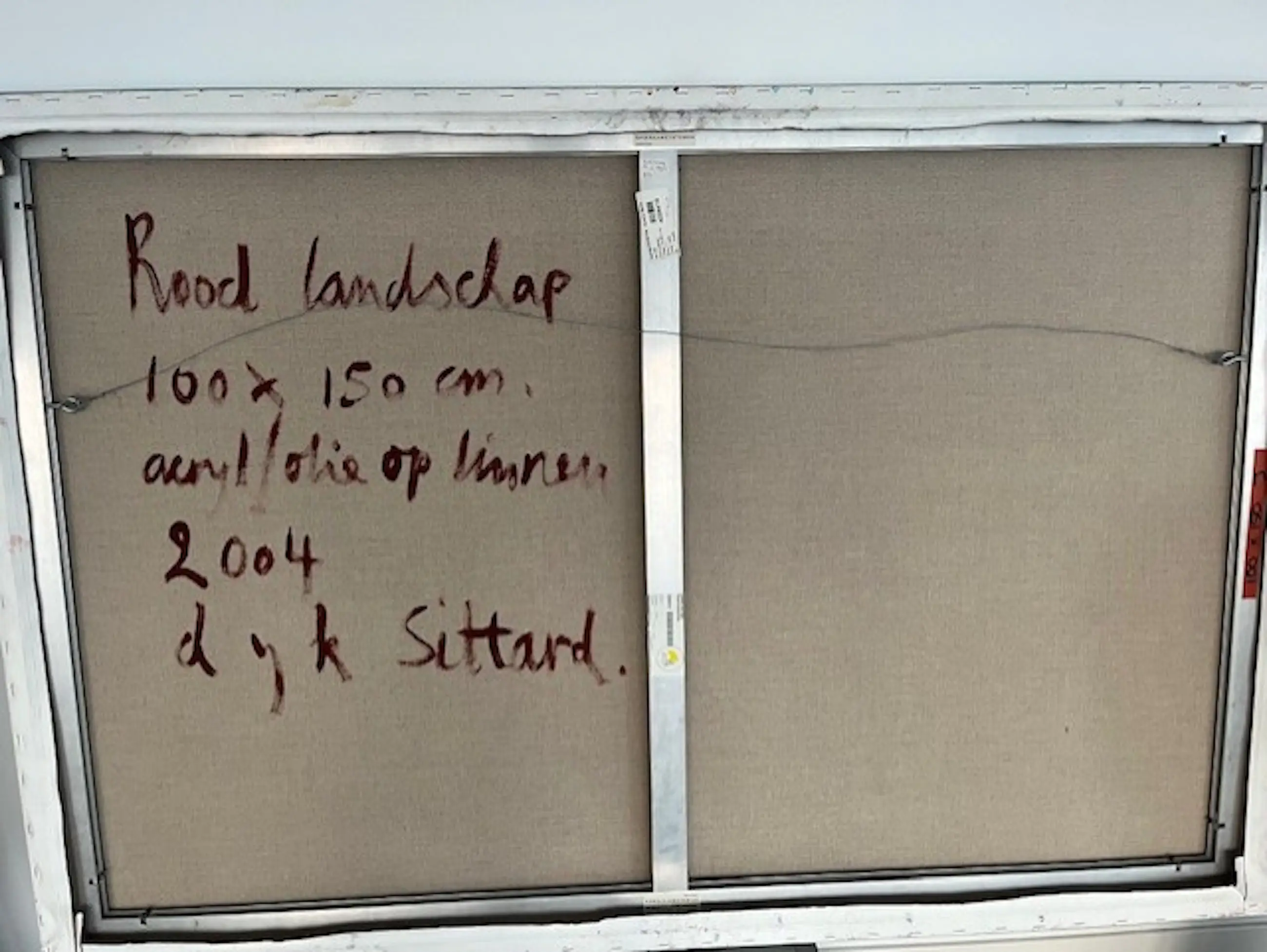 Beeindruckendes Acryl-/Ölgemälde auf Leinen mit dem Titel „Rote Landschaft“ von Martin van Dijk (1963). Wunderschöne Technik mit viel Ausdruck und Farbe. In gutem Zustand und mit einer Beschreibung des Künstlers auf der Rückseite. Es existiert nur ein Exemplar.