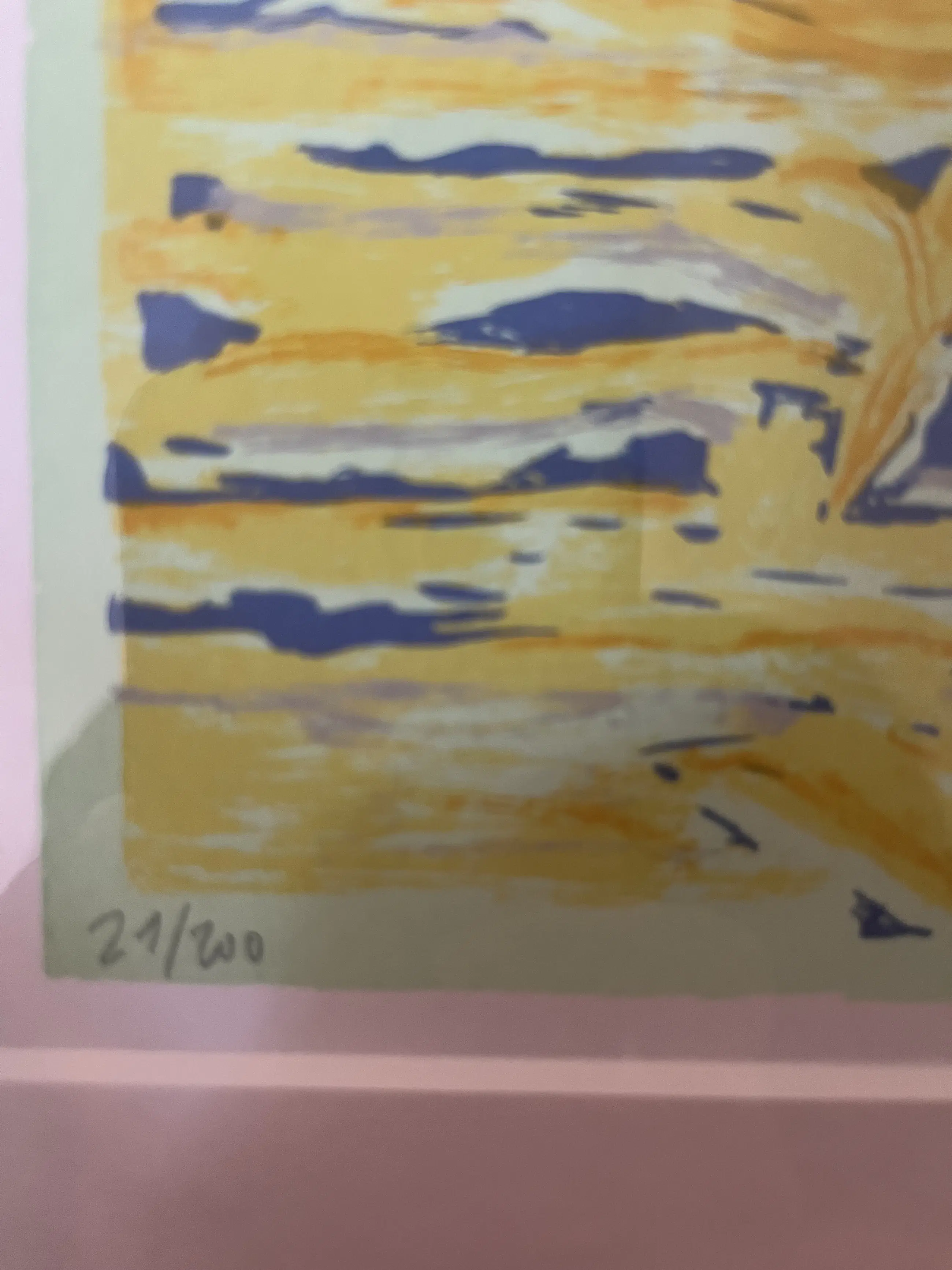 Wunderschöner auffälliger abstrakter Siebdruck, Nr. 21/200 in Grün, Blau und Gelb. Ist noch in einwandfreiem Zustand.