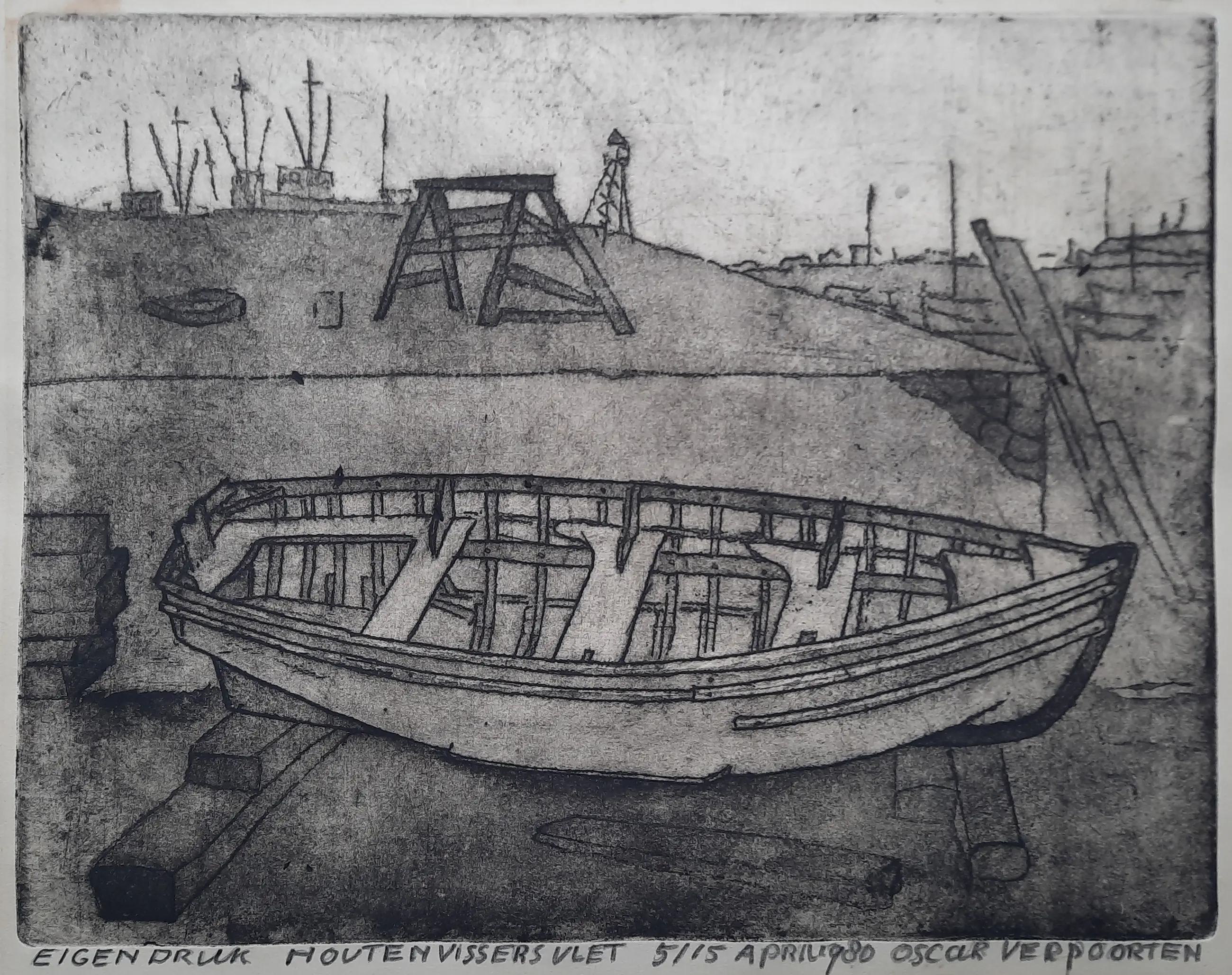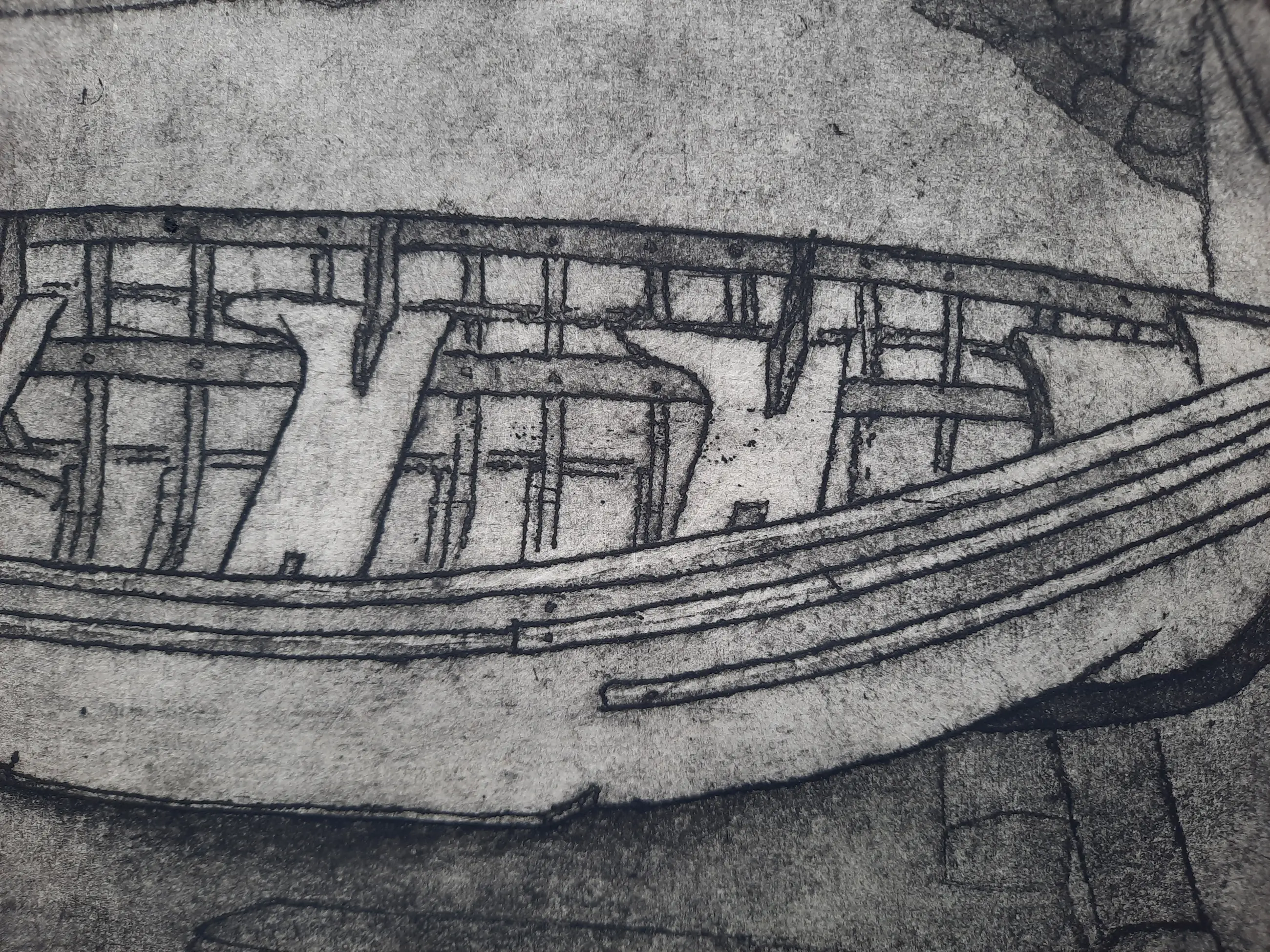 Eigendruck: Hölzernes Fischerboot 5/15 Radierung Größe 25 x 33 cm.