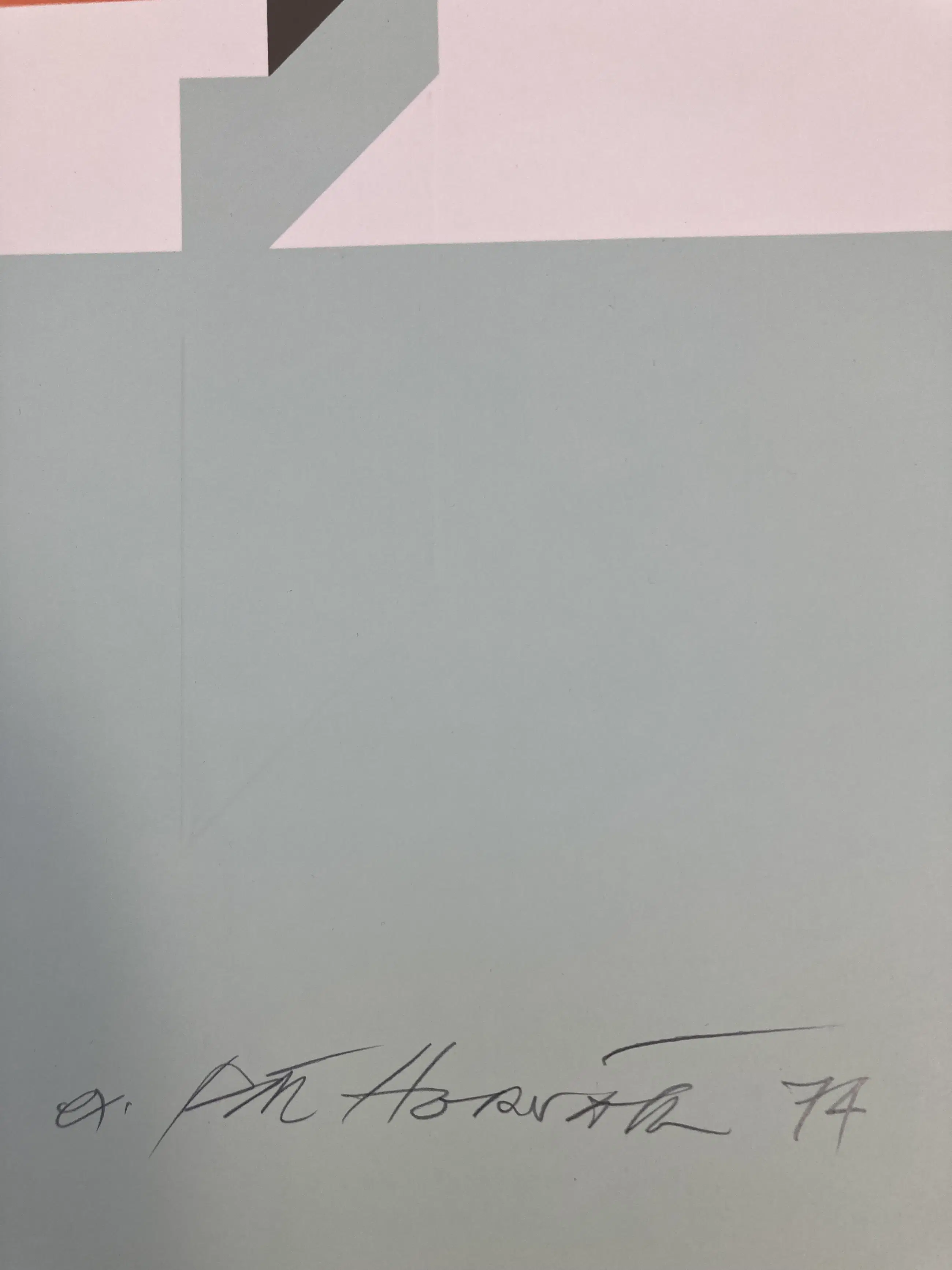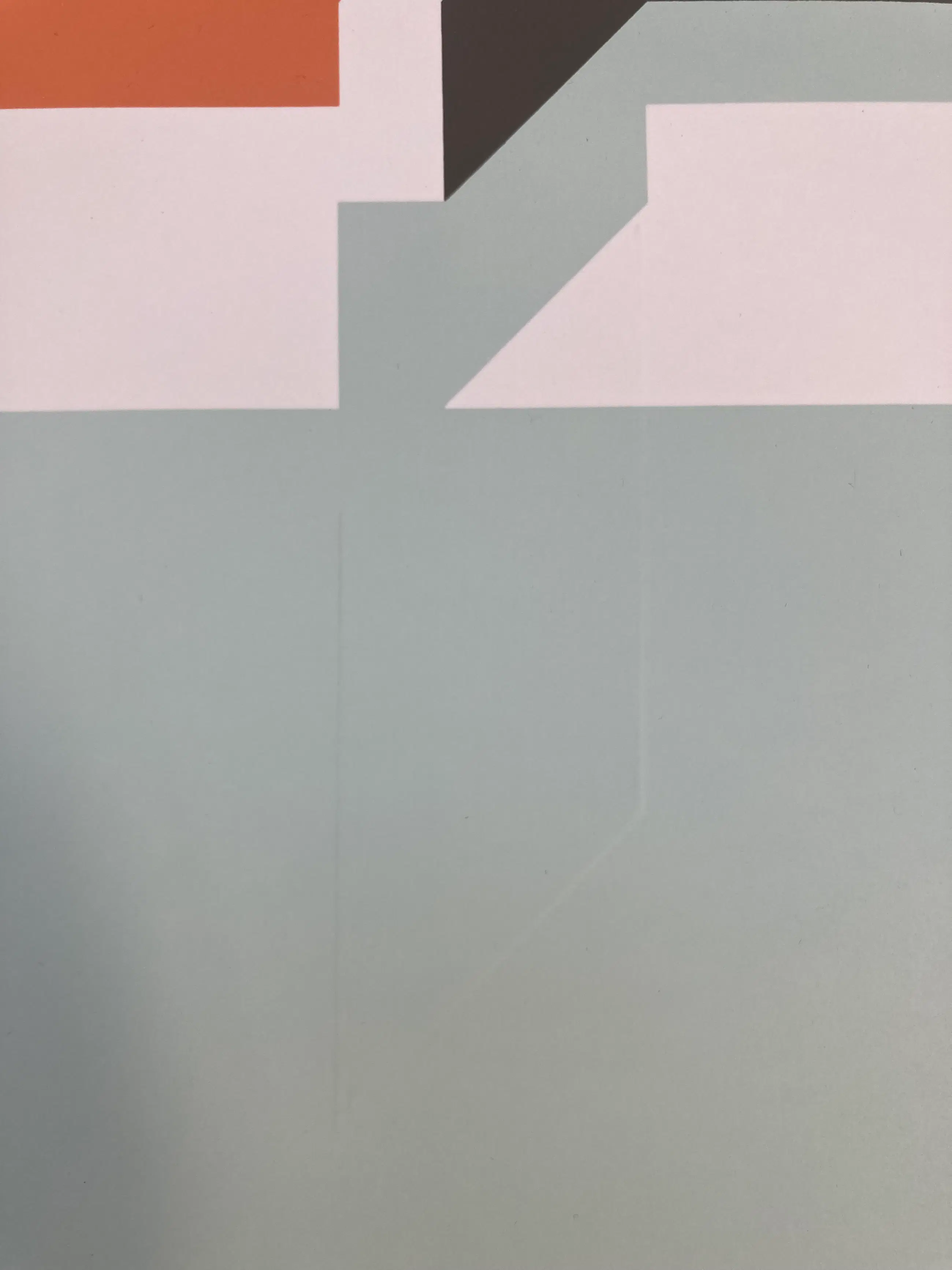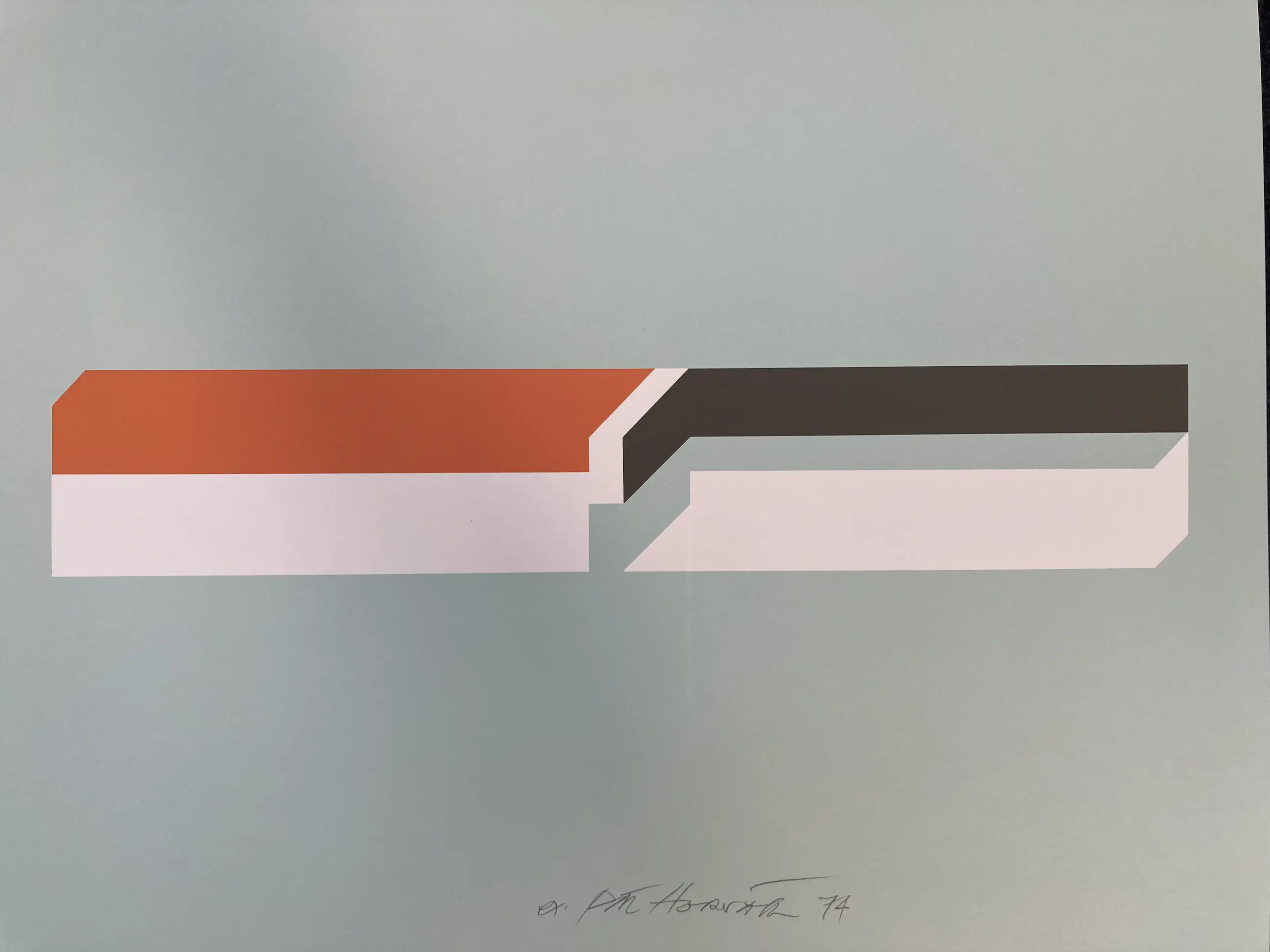 Typischer Siebdruck mit Relief- und geometrischen Merkmalen.