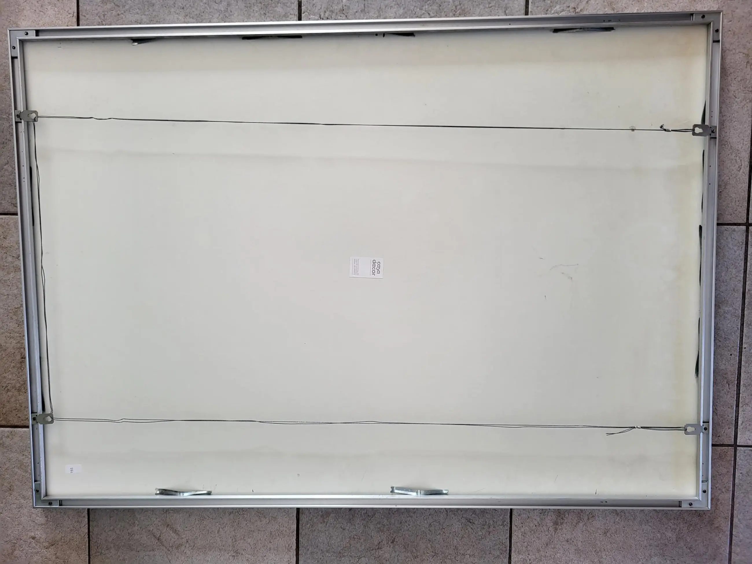 Ist hinter einer Kunststoffplatte statt Glas gerahmt.