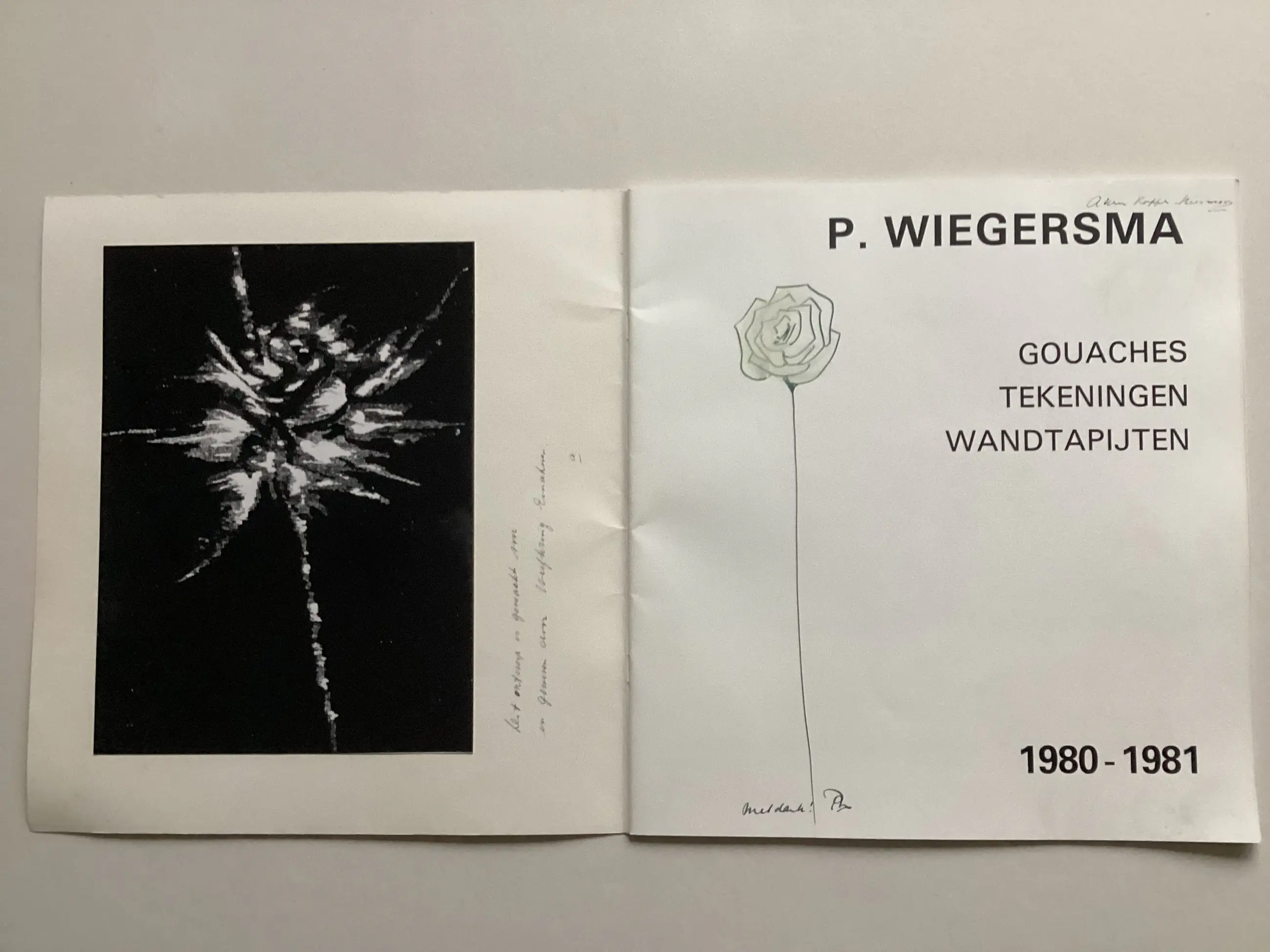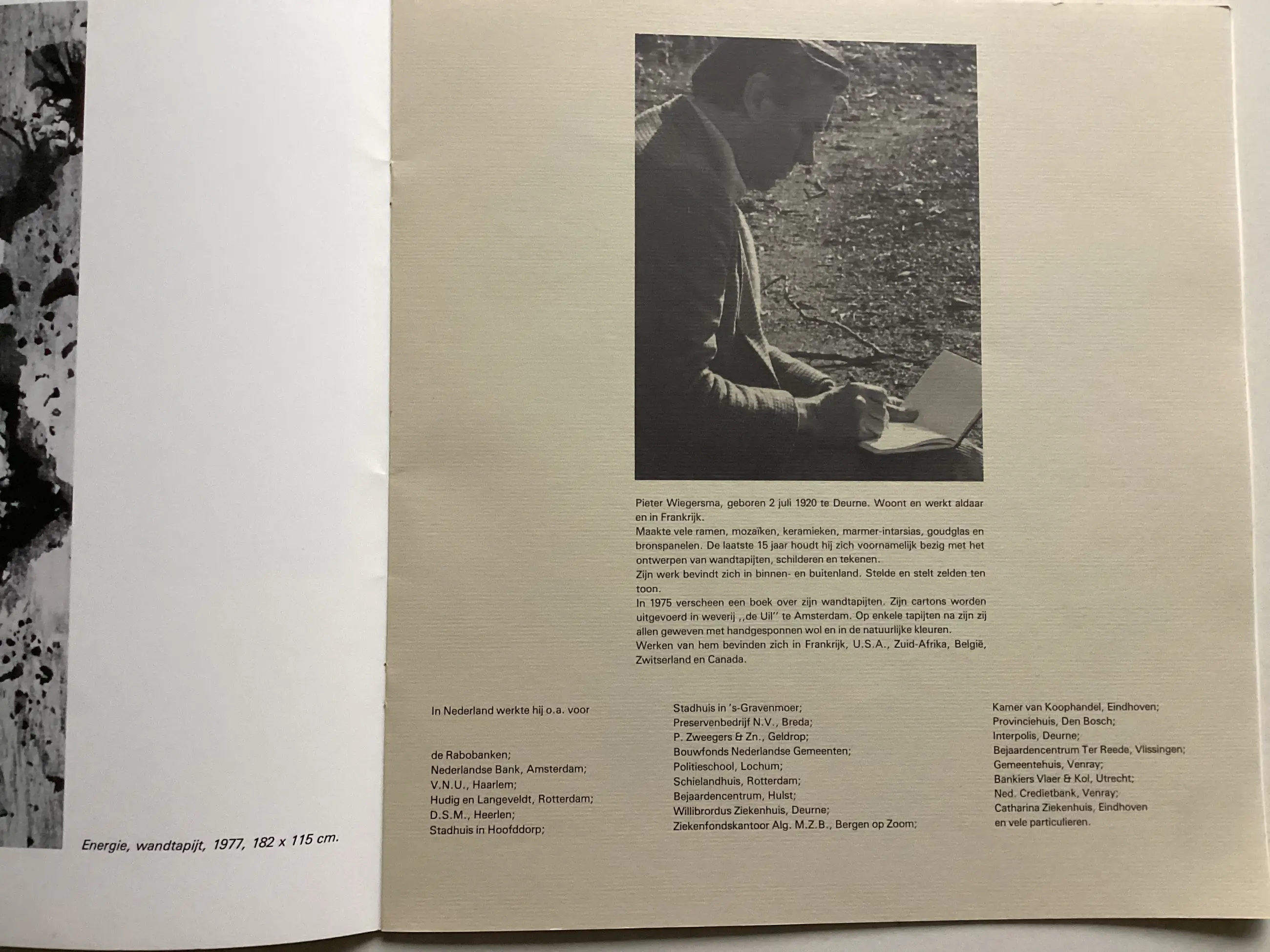 Veröffentlichung anlässlich einer Doppelausstellung „Gouachen, Zeichnungen, Wandteppiche in Deurne (NL) und Frankreich, 1980-1981“. Enthält ein Originalfoto eines Wandteppichs auf dem Vorsatzblatt; Originalzeichnung und Unterschrift.