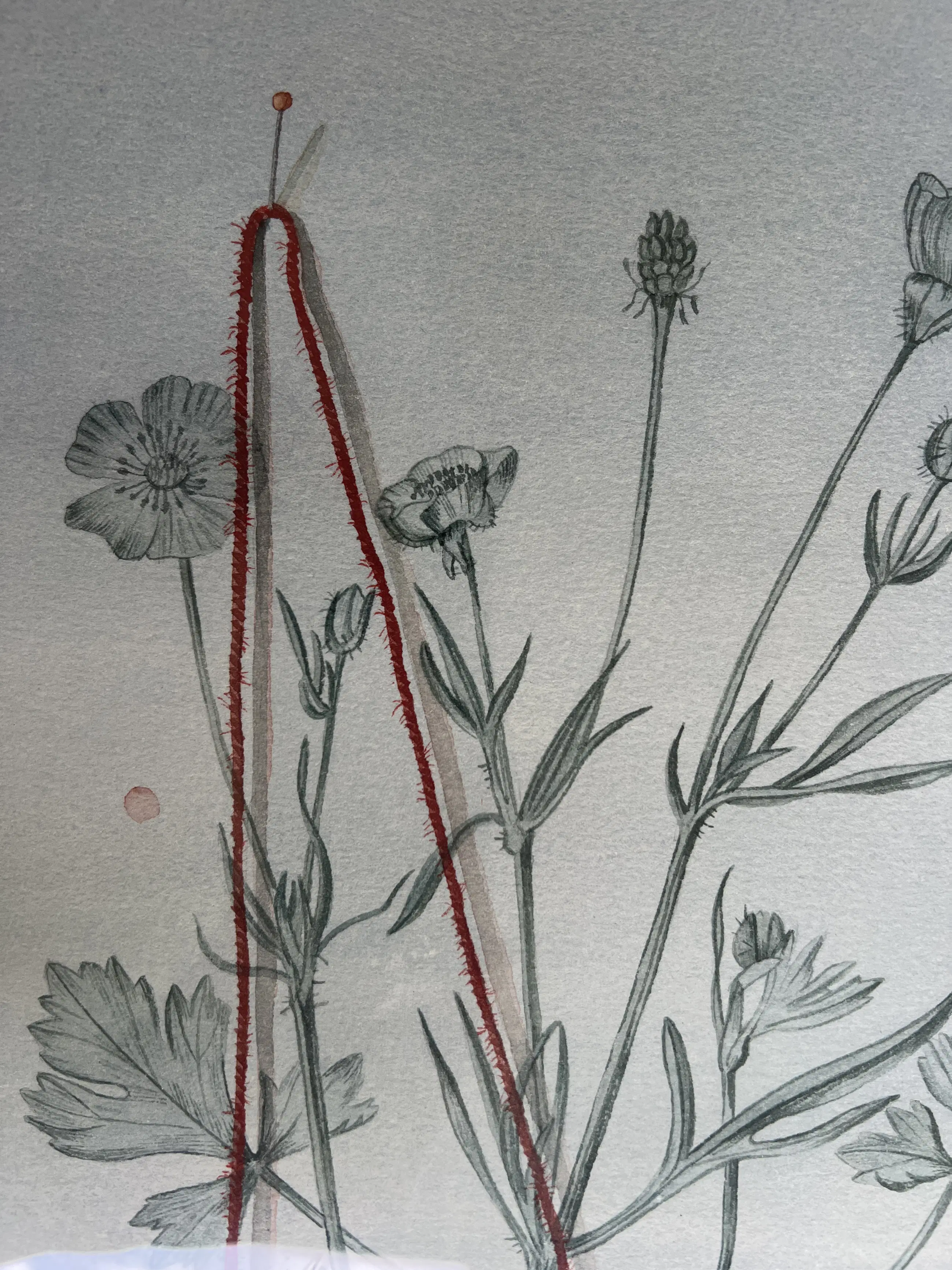 Dieses Aquarell ist professionell gerahmt mit einem Doppelpassepartout in einem Messingrahmen