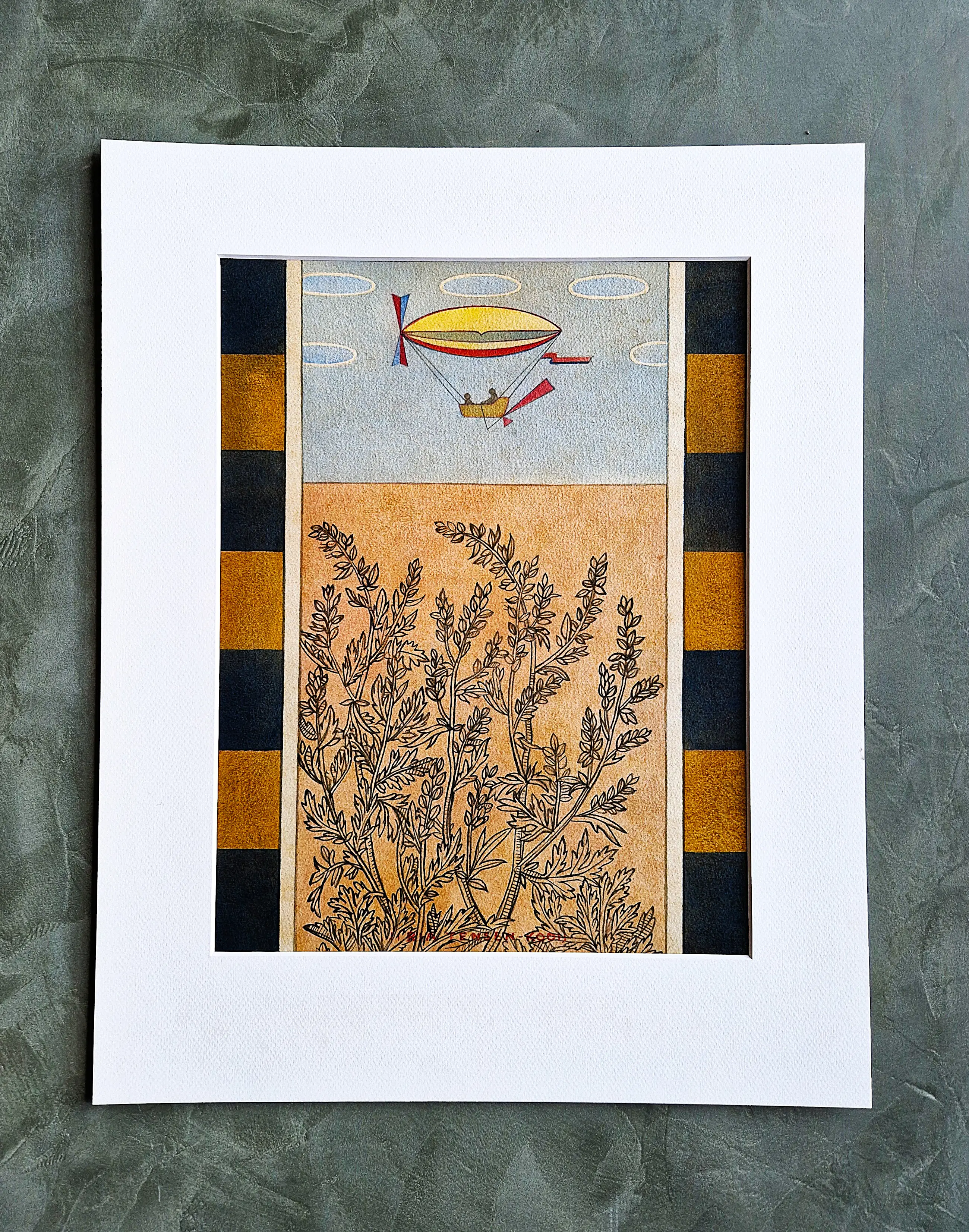 Ein wunderschönes Aquarell auf handgeschöpftem Papier „über der Landschaft“. Das Werk der Amstelveener Künstlerin Ria Tensen-Kooy (1947-)