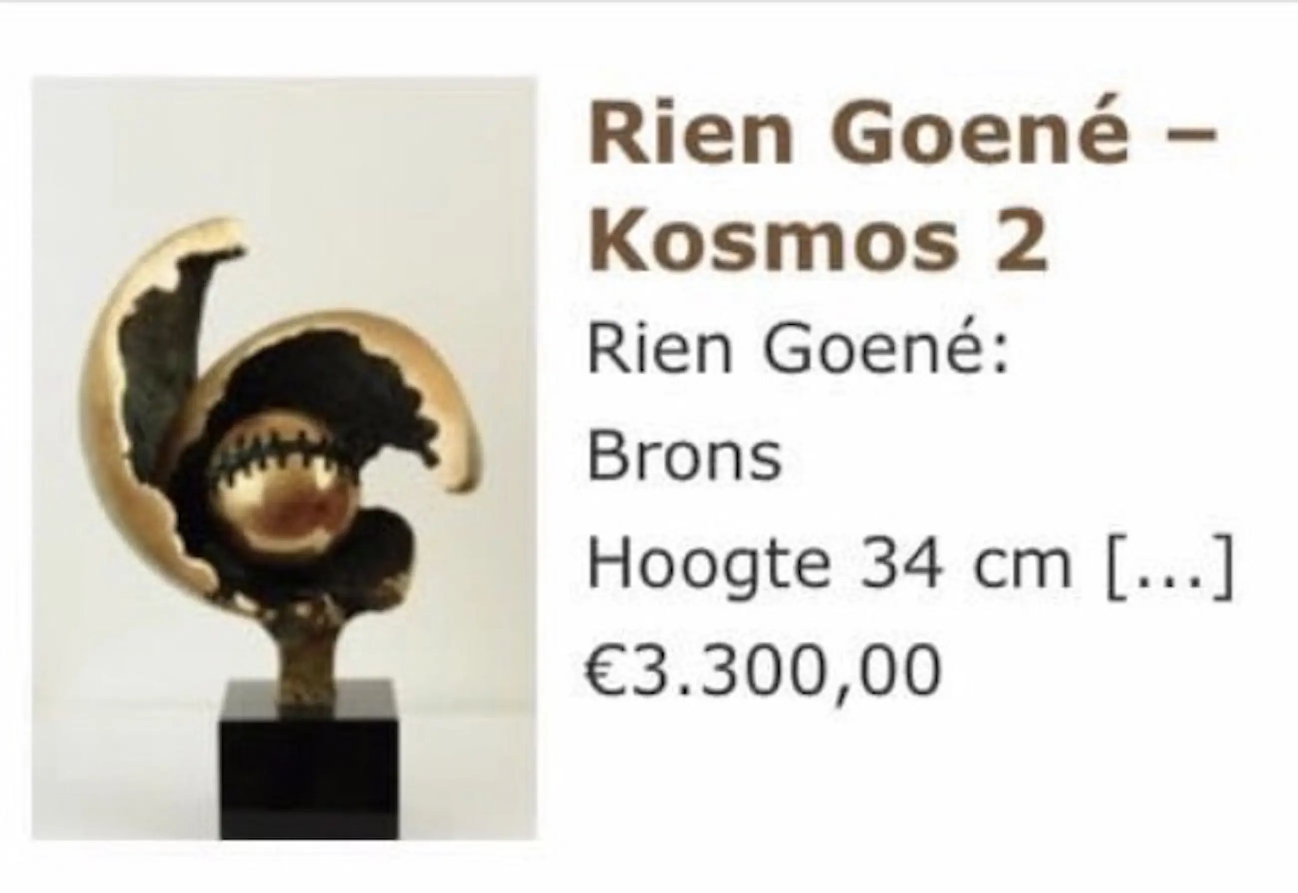 Die Skulptur wird mit einem Zertifikat und einer Monographie (Broschüre) über den Künstler geliefert: Rien Goené „Das Unsichtbare sichtbar machen“