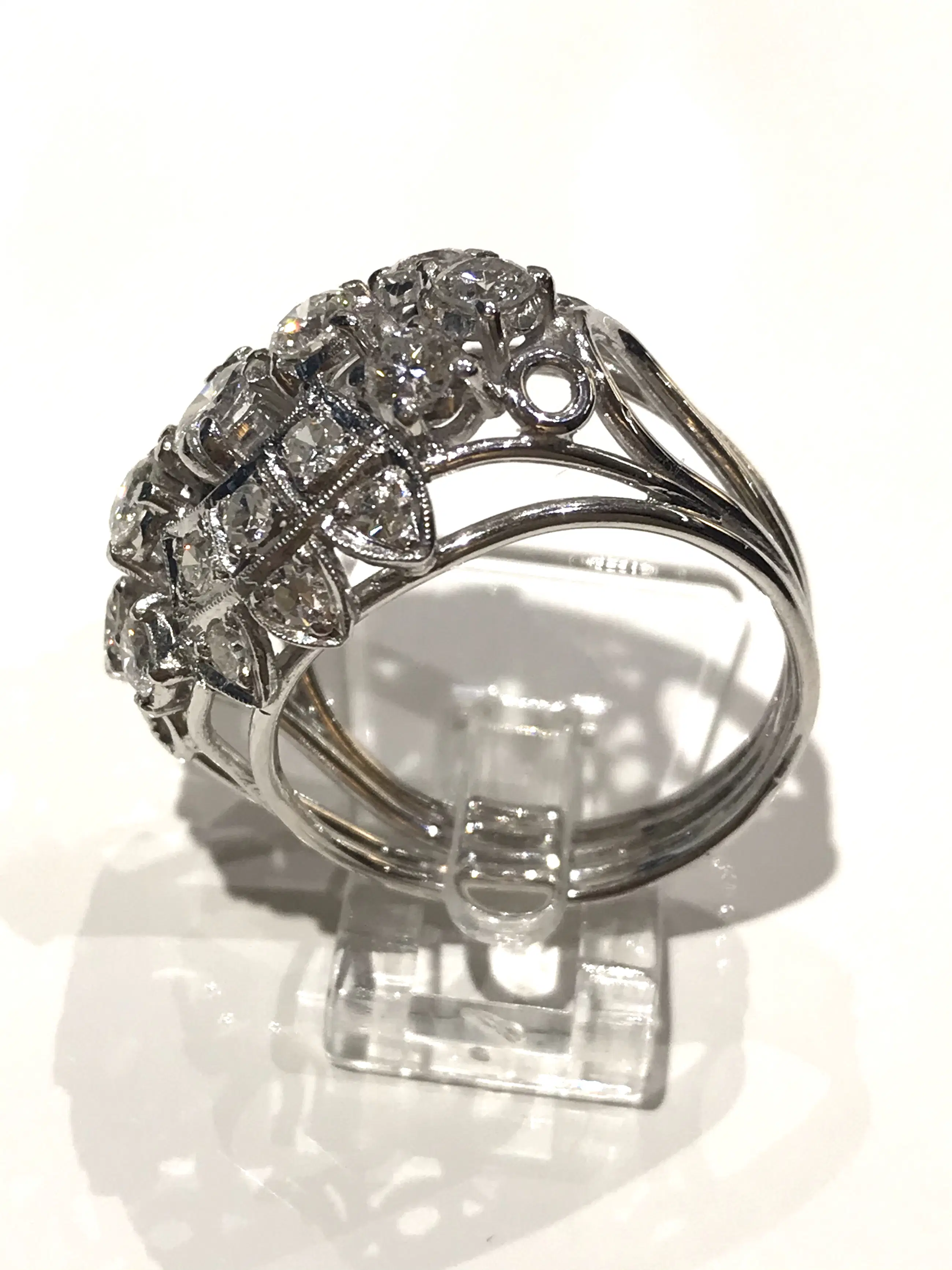 Antiker Ring aus 18 Karat Weißgold mit einem natürlichen Diamanten von 1,40 ct im älteren Schliff, wunderschön brillant. Der Ring hat die Größe 55 und kann auf Anfrage in unserer Fachwerkstatt angepasst werden. Der Ring ist von ALGT (einem unabhängigen Labor in Antwerpen) zertifiziert und kann versichert versendet werden.