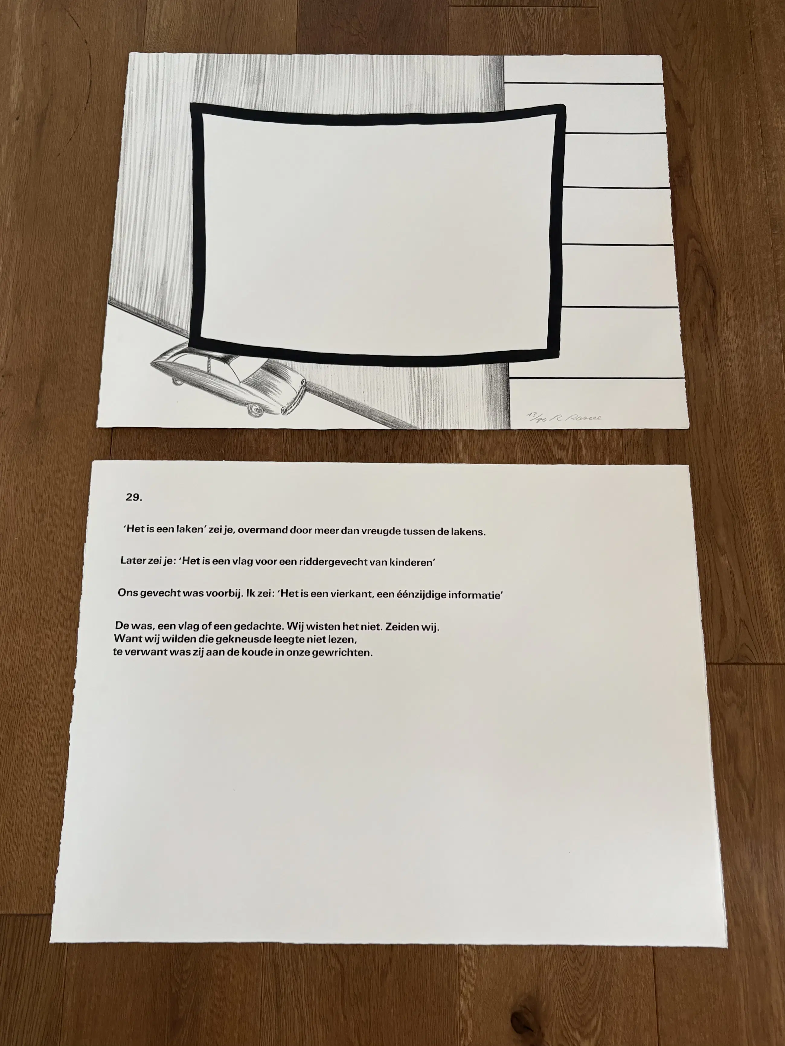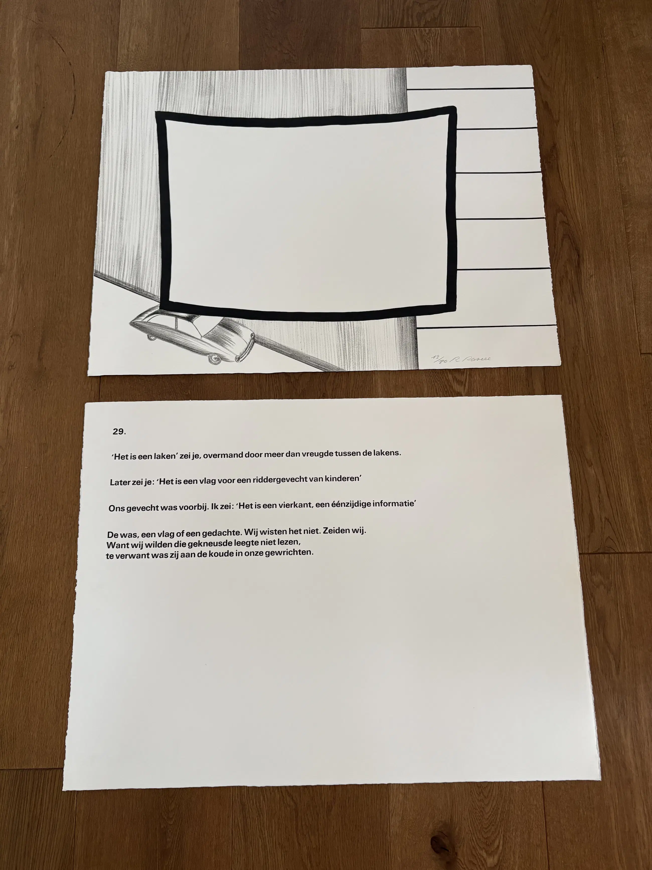 Das 29. Werk der Genesis-Reihe von Roger Raveel. Signiert und nummeriert, limitierte Auflage von nur 80 Exemplaren. Begleitgedicht von Hugo Claus Im Rahmen 80x60 cm