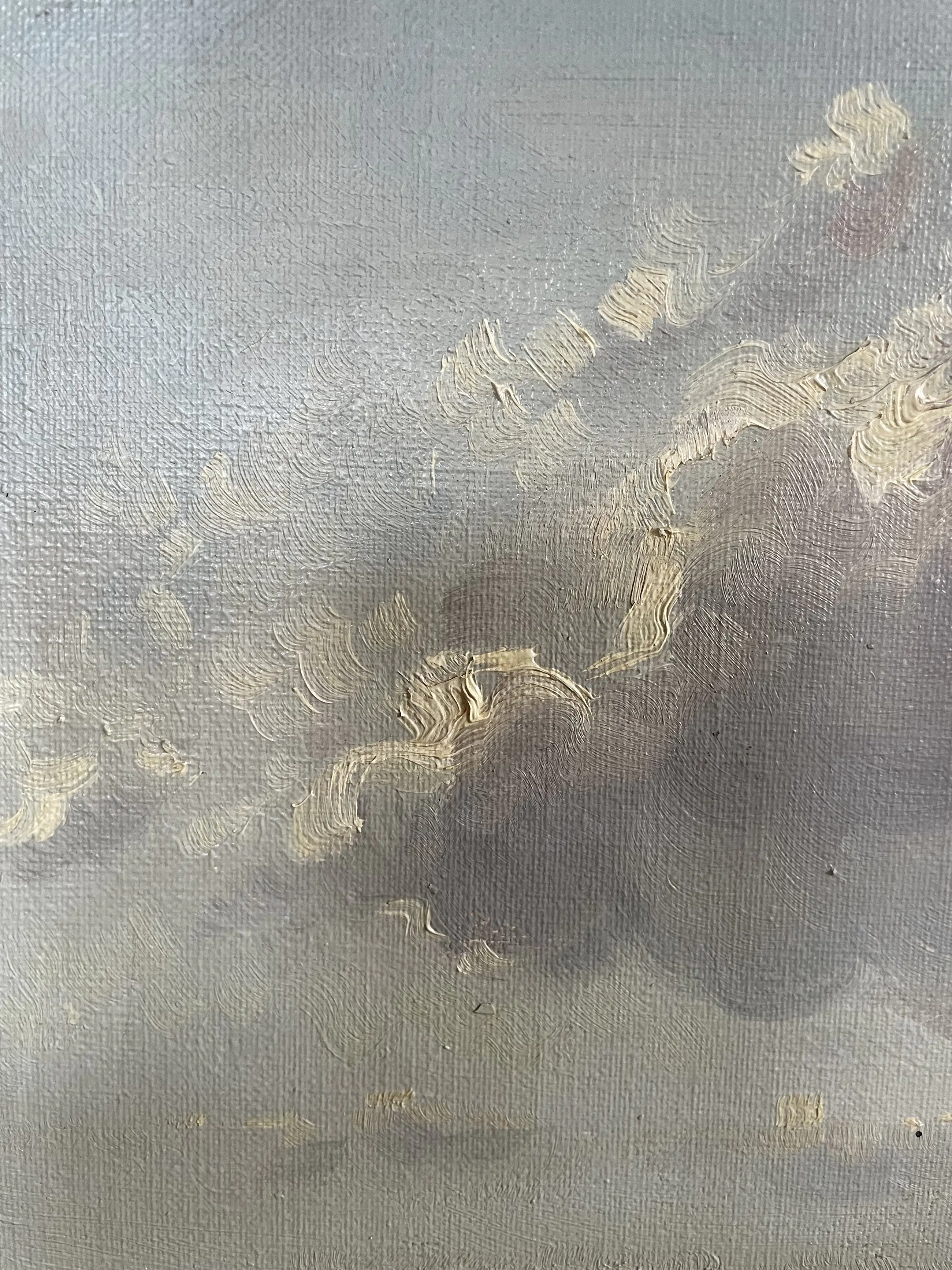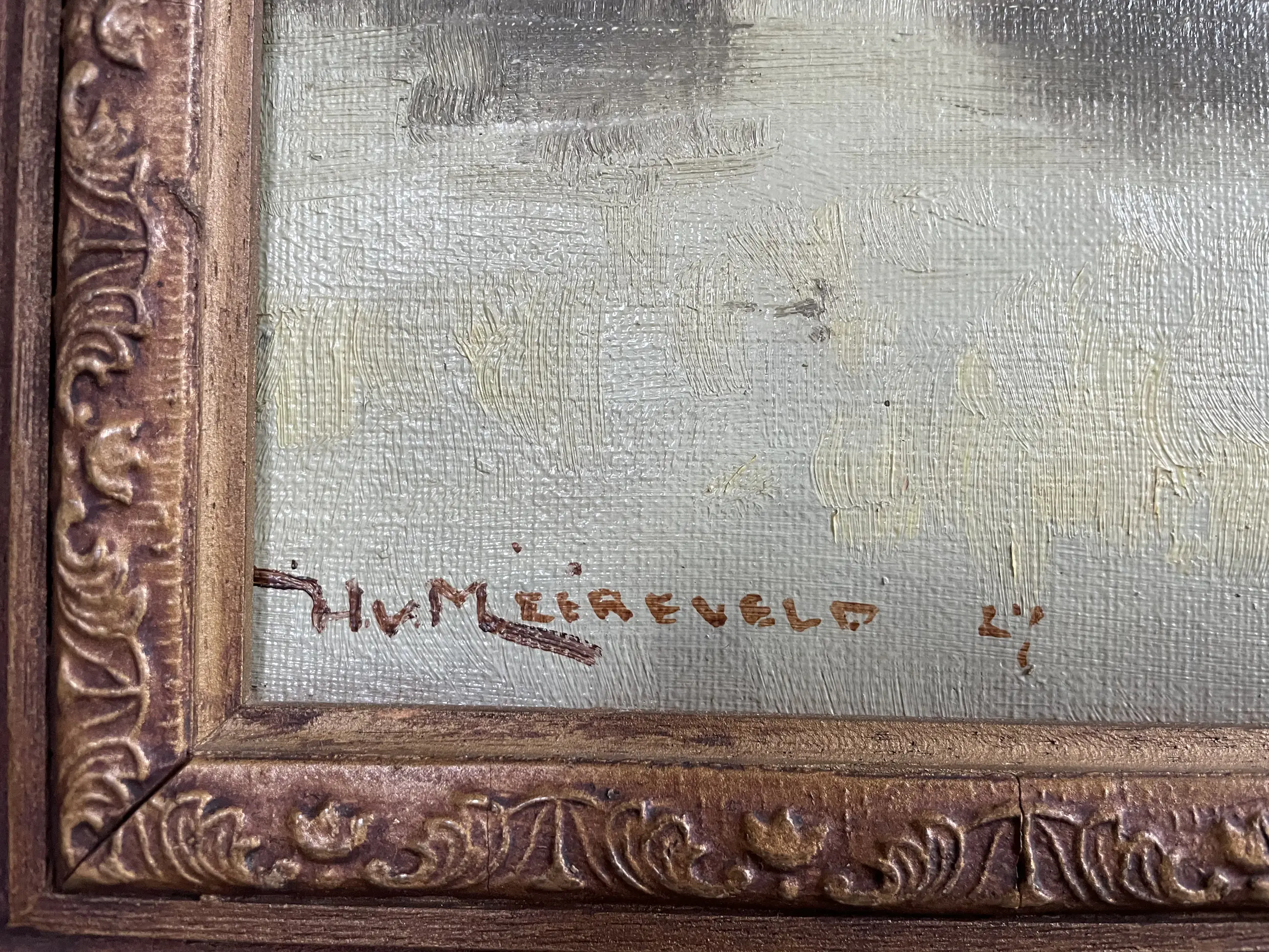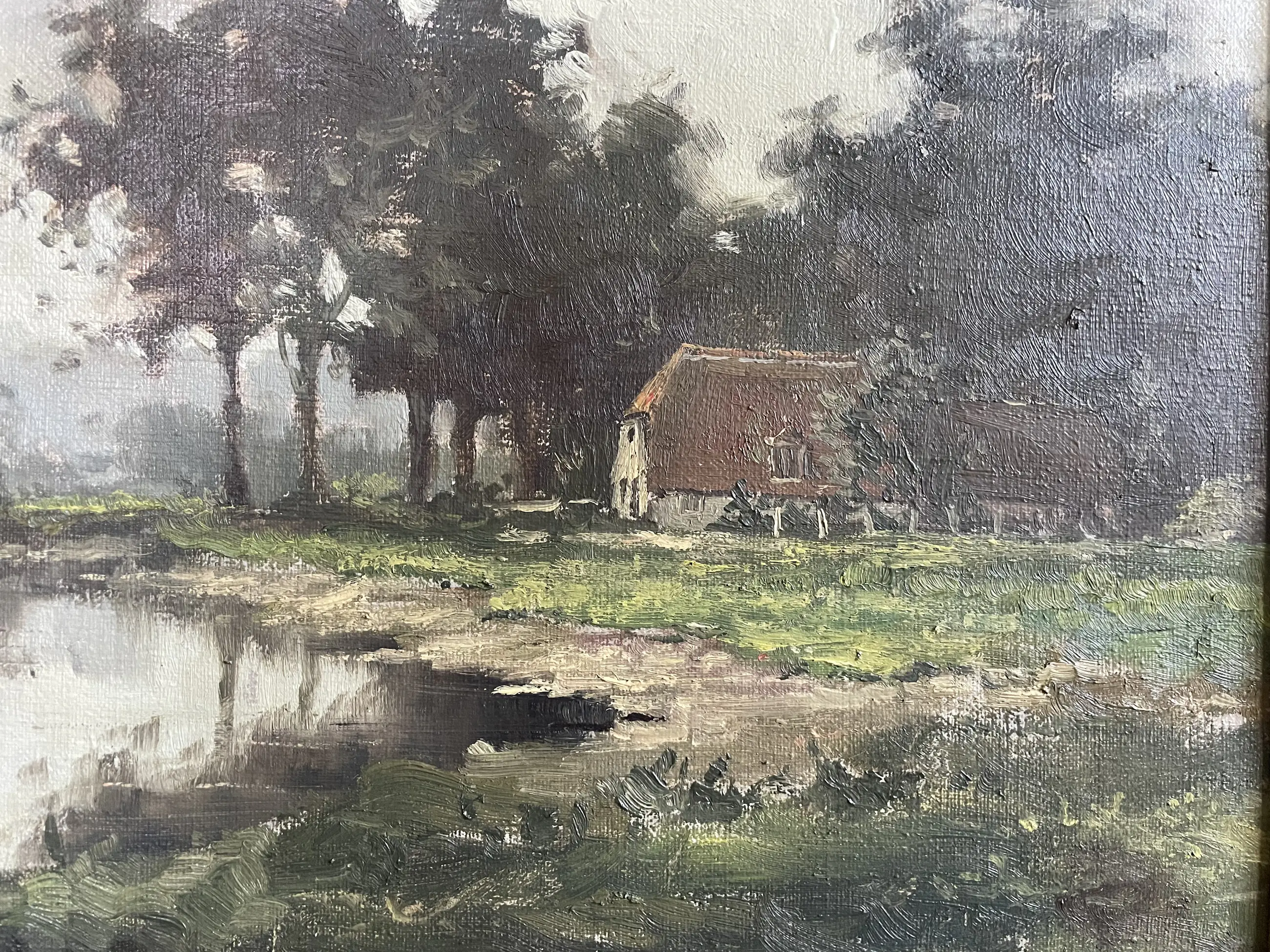 Die Leinwand ist in einem guten Zustand .Altersbedingt angelaufen. Der Rahmen hat unten rechts eine sichtbare Beschädigung.