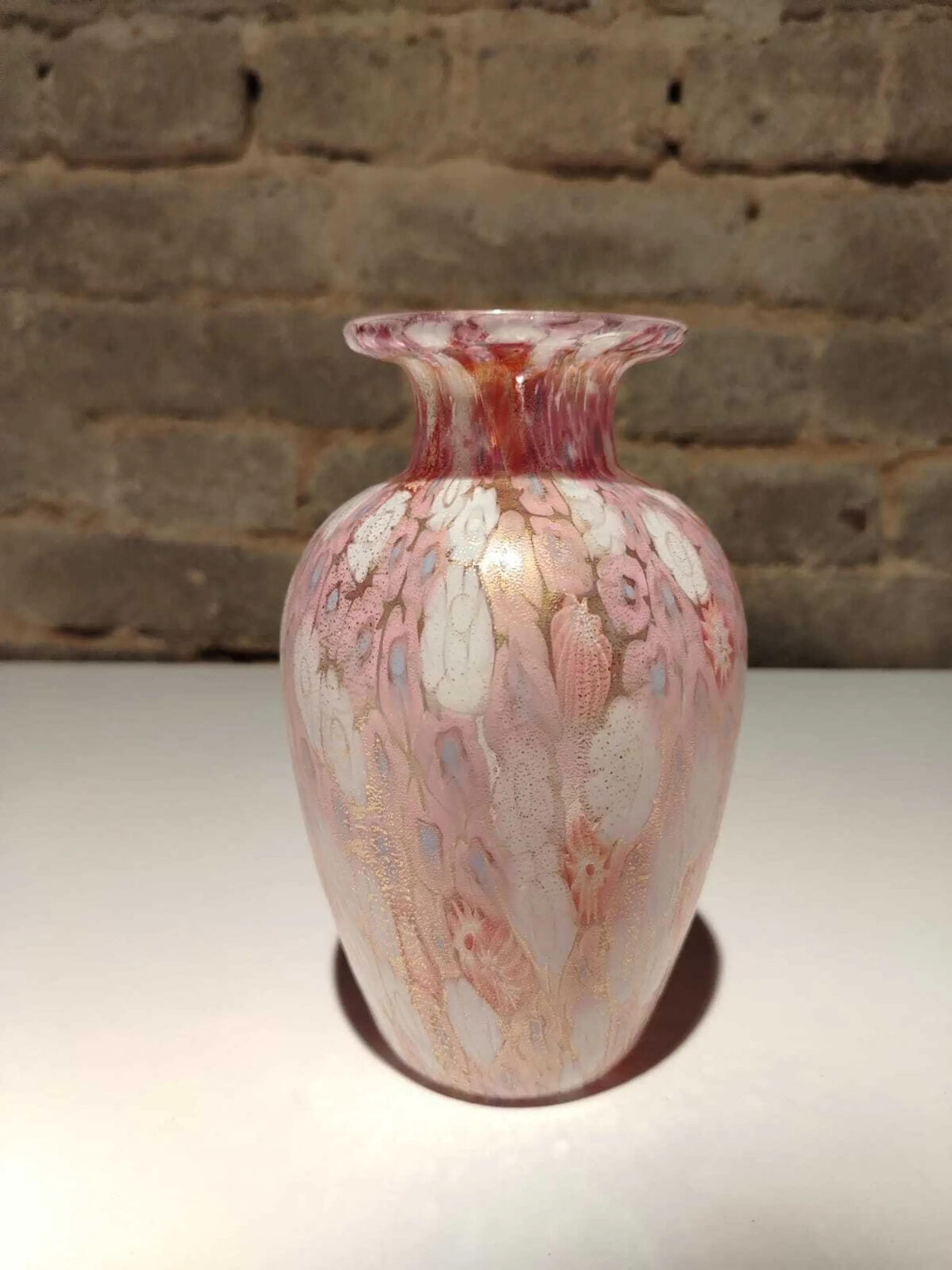 Muranoglasvase mit Millefiori-Murrine und 24 Karat Gold – H 17 cm