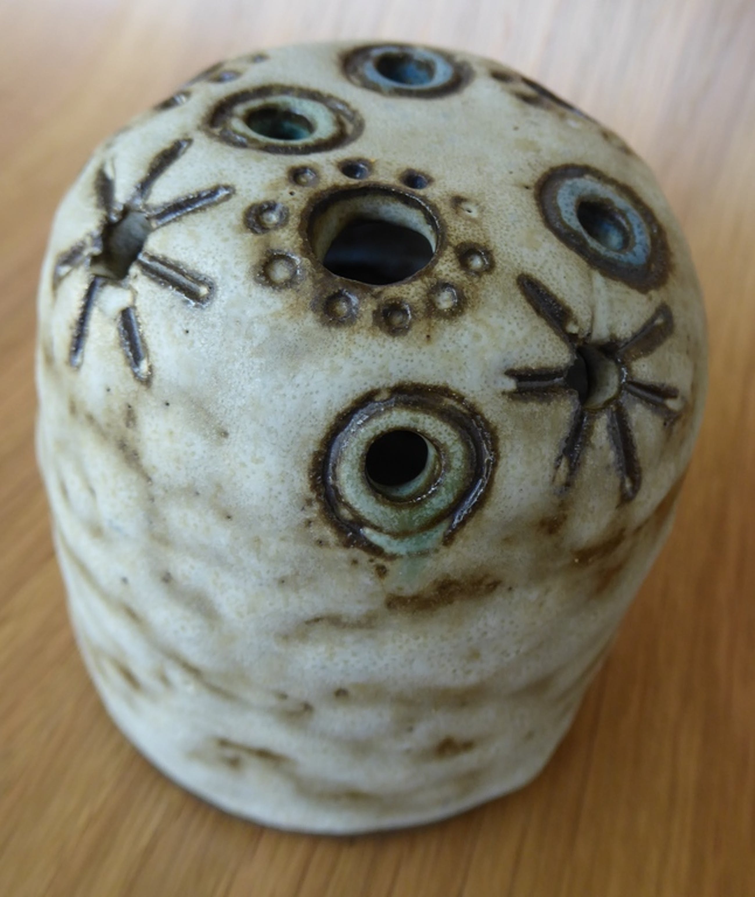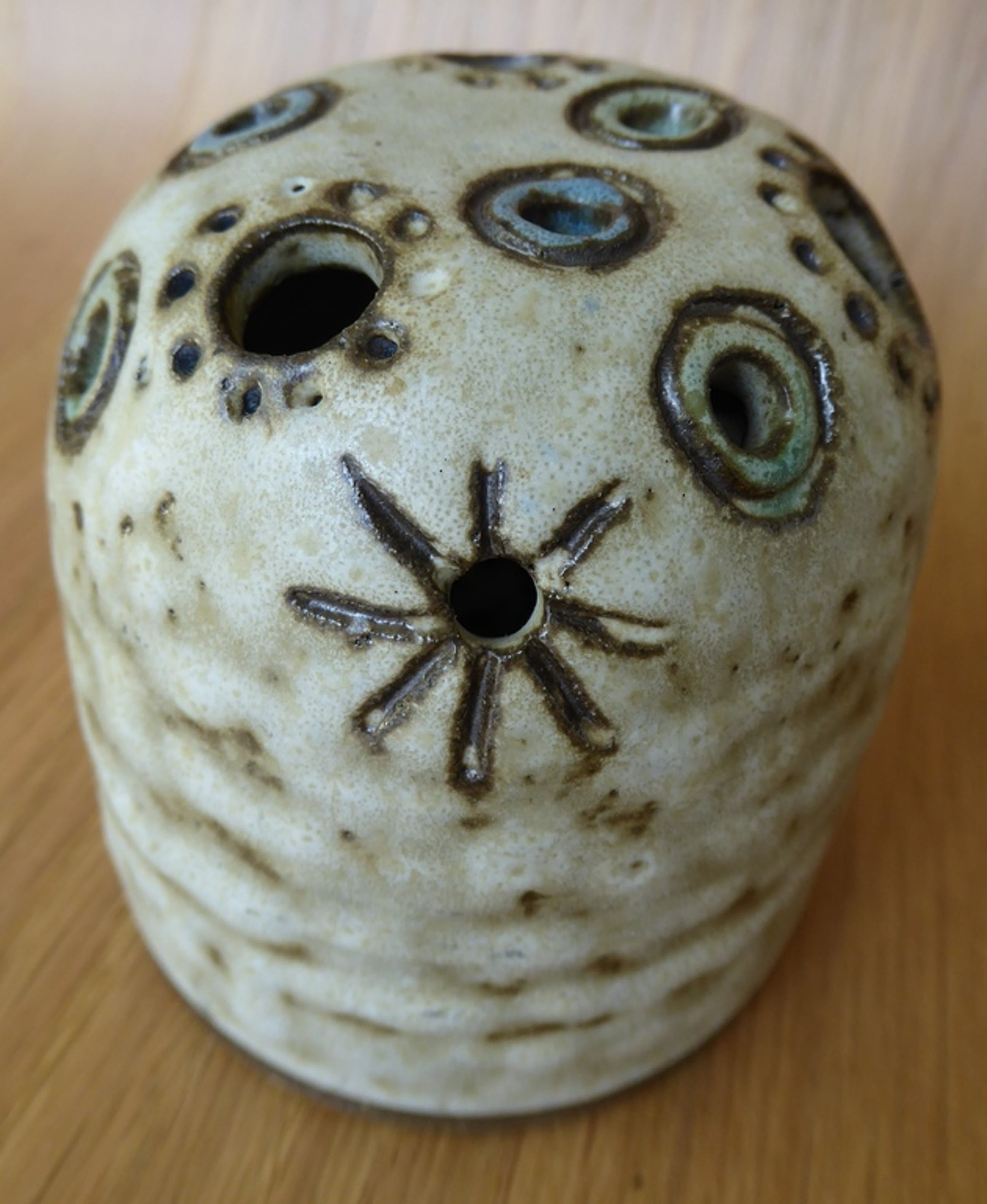 Deze bloemensteker uit de jaren '70 is gemaakt door de Utrechtse keramiste Hannie Mein (1933-2003).
