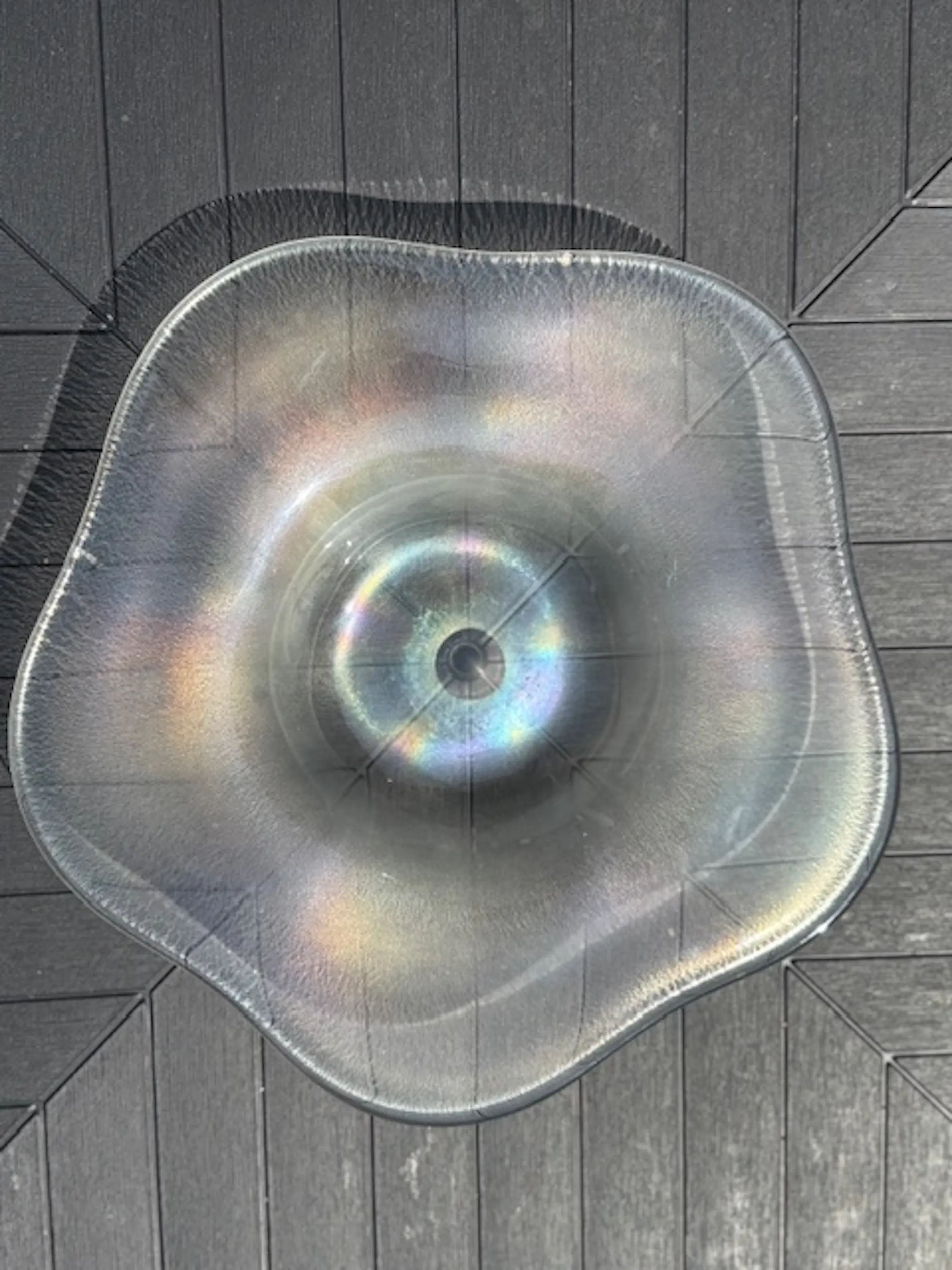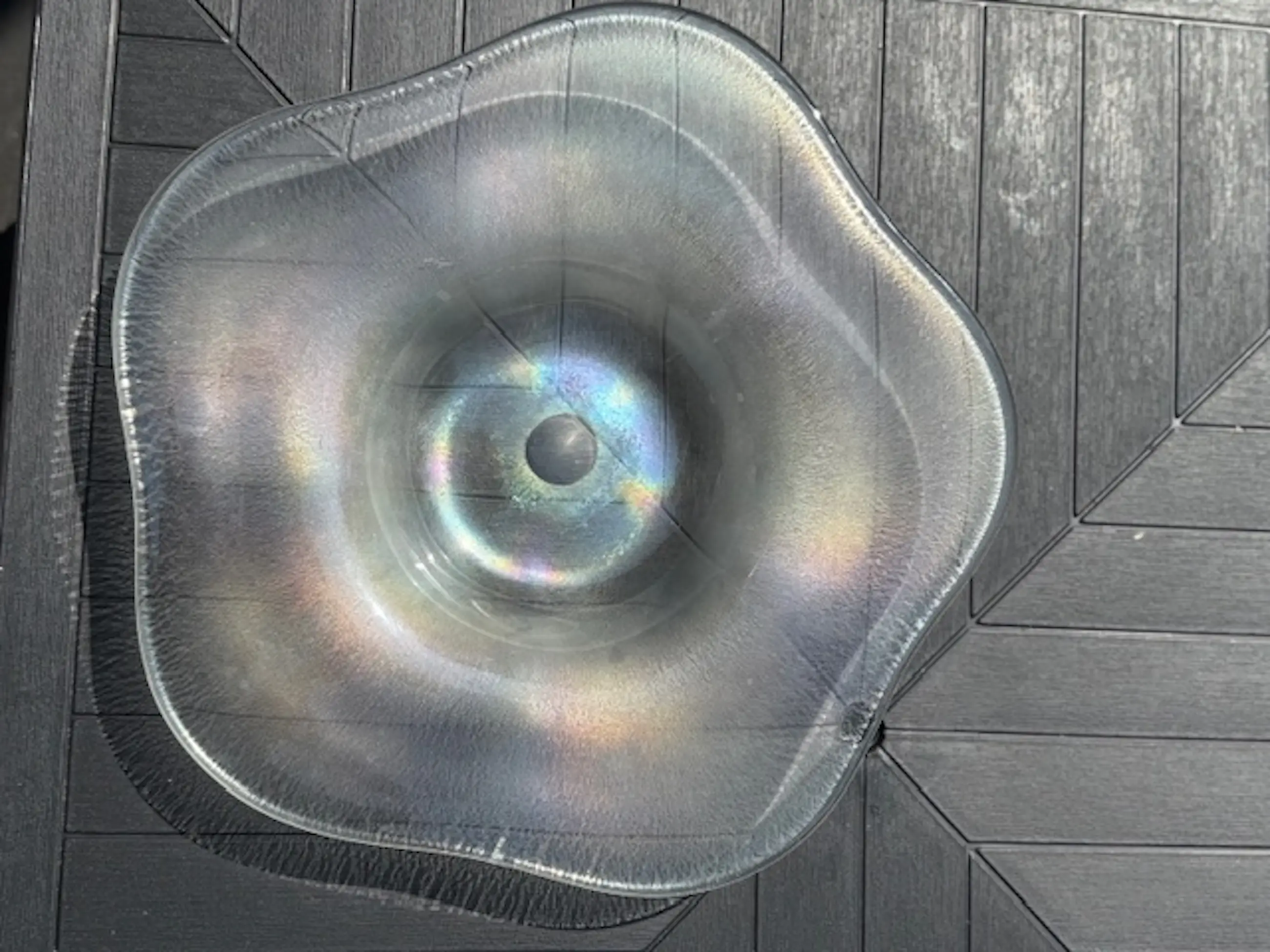 Klare Glasschale mit Zinn-Craquelé und Glanz „Coquille“, Entwurf WJRozendaal 1937, Ausführung Kristalunie Maastricht
