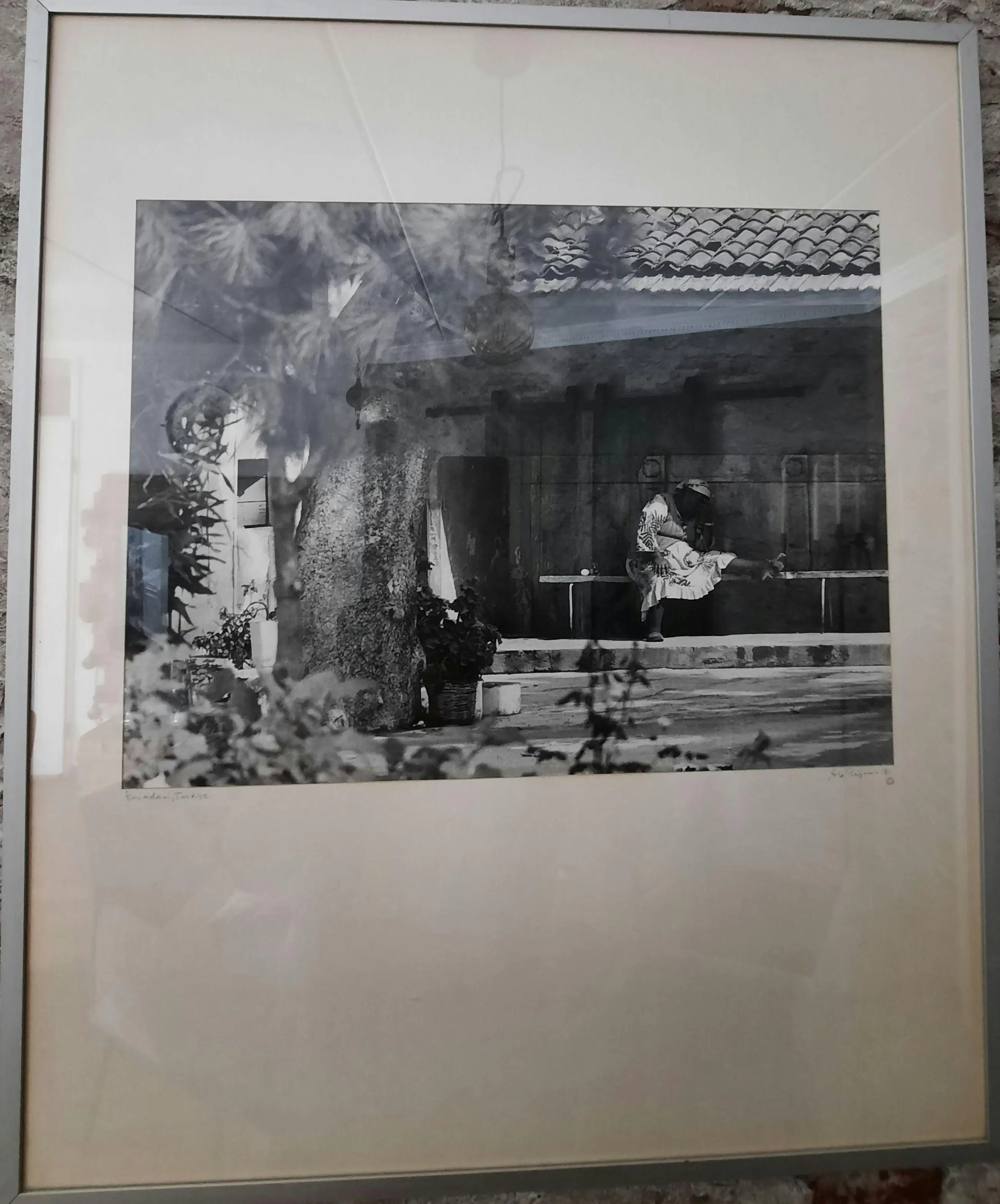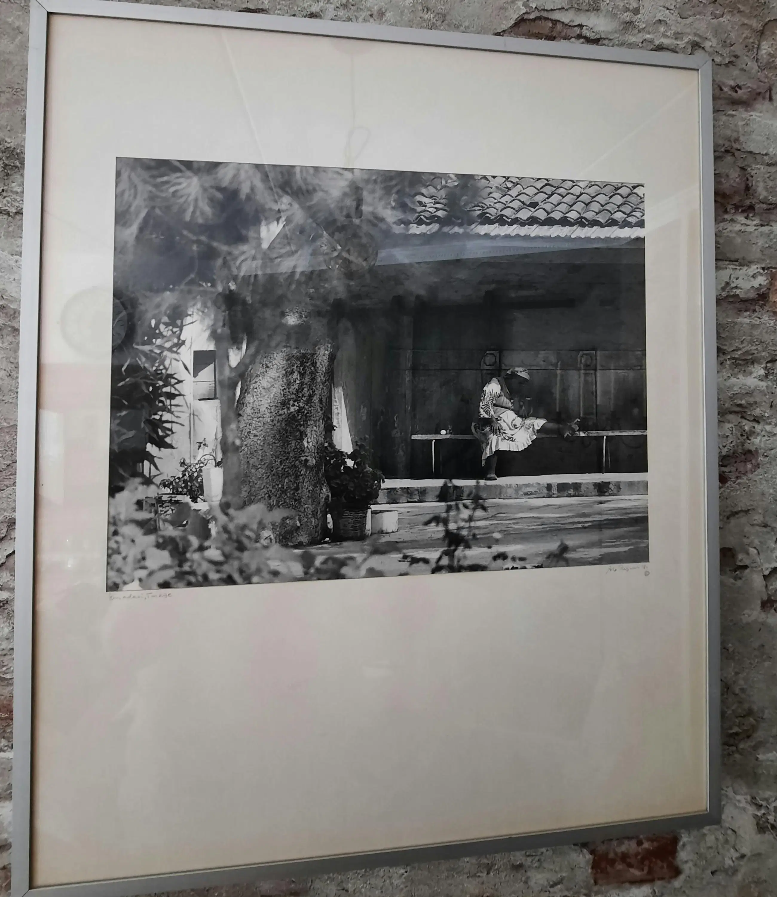In the black and white photo, an elderly lady sits on a worn-out bench in front of her dilapidated house in Kusadasi, Turkey 1981. The photo tells stories of times gone by.