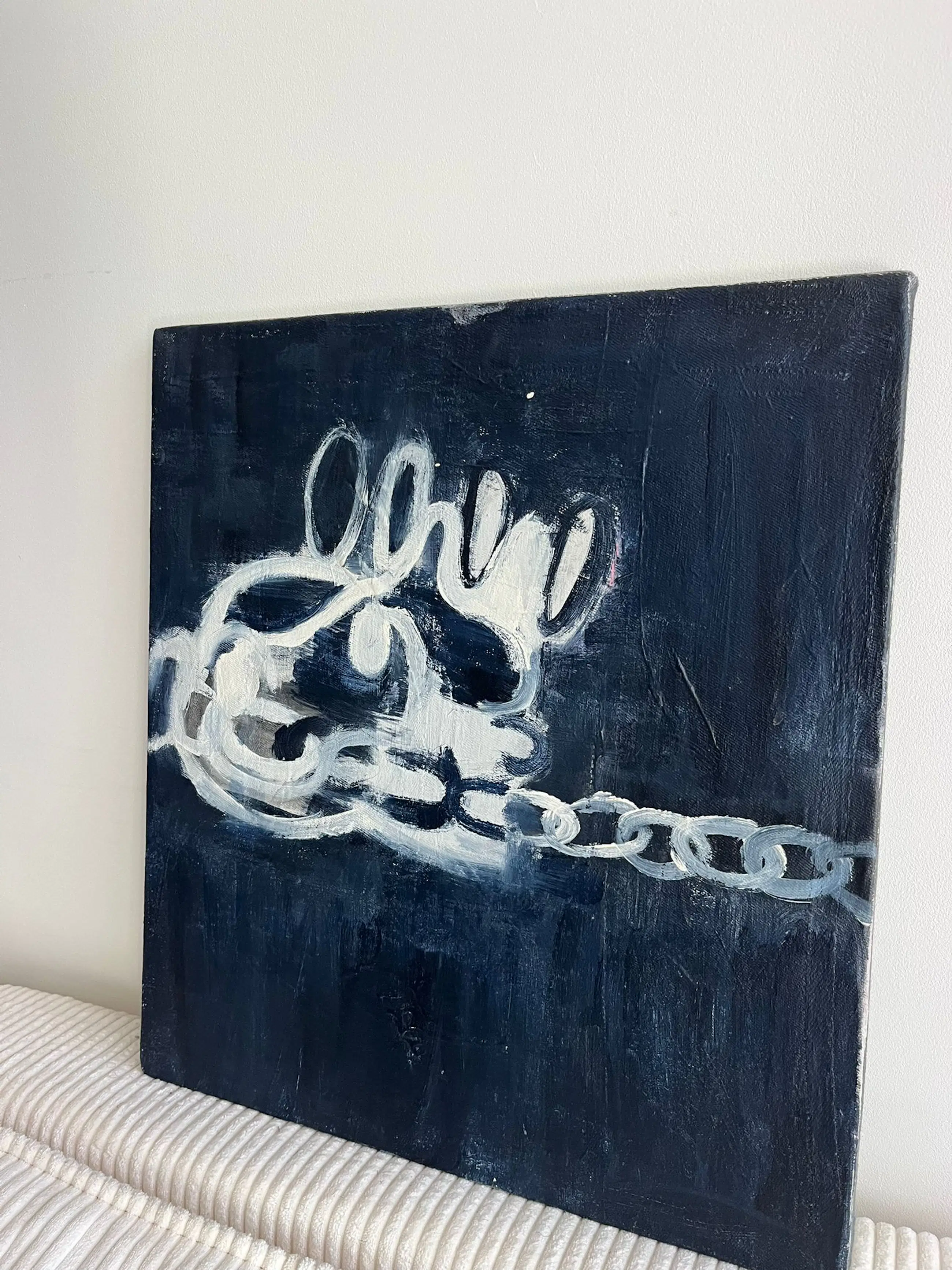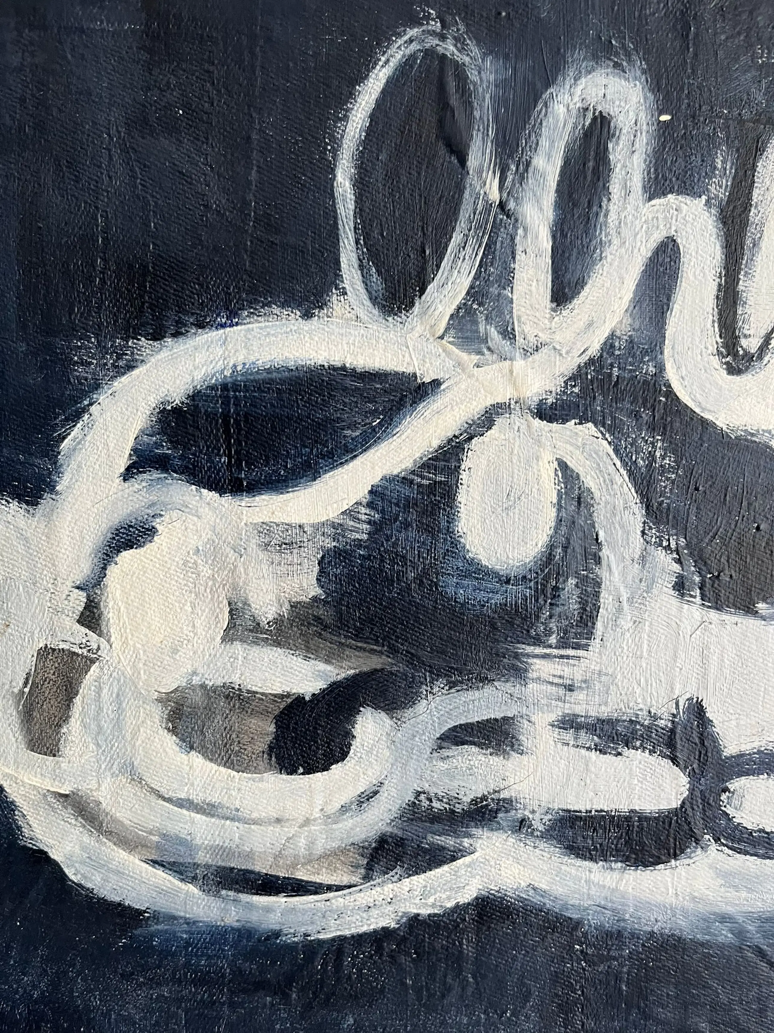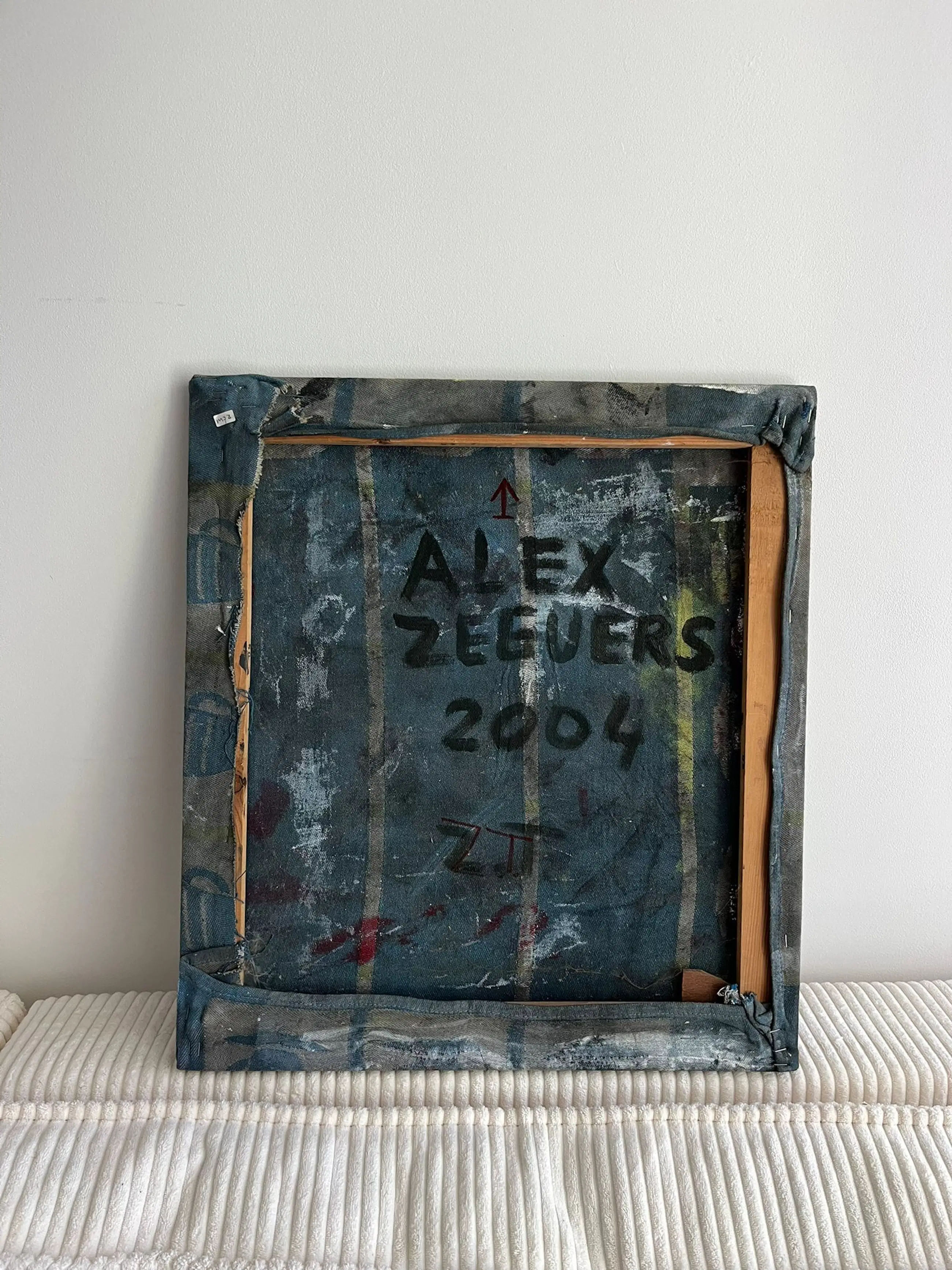 Black abstract canvas by Alex Zeguers. Signed in 2004.