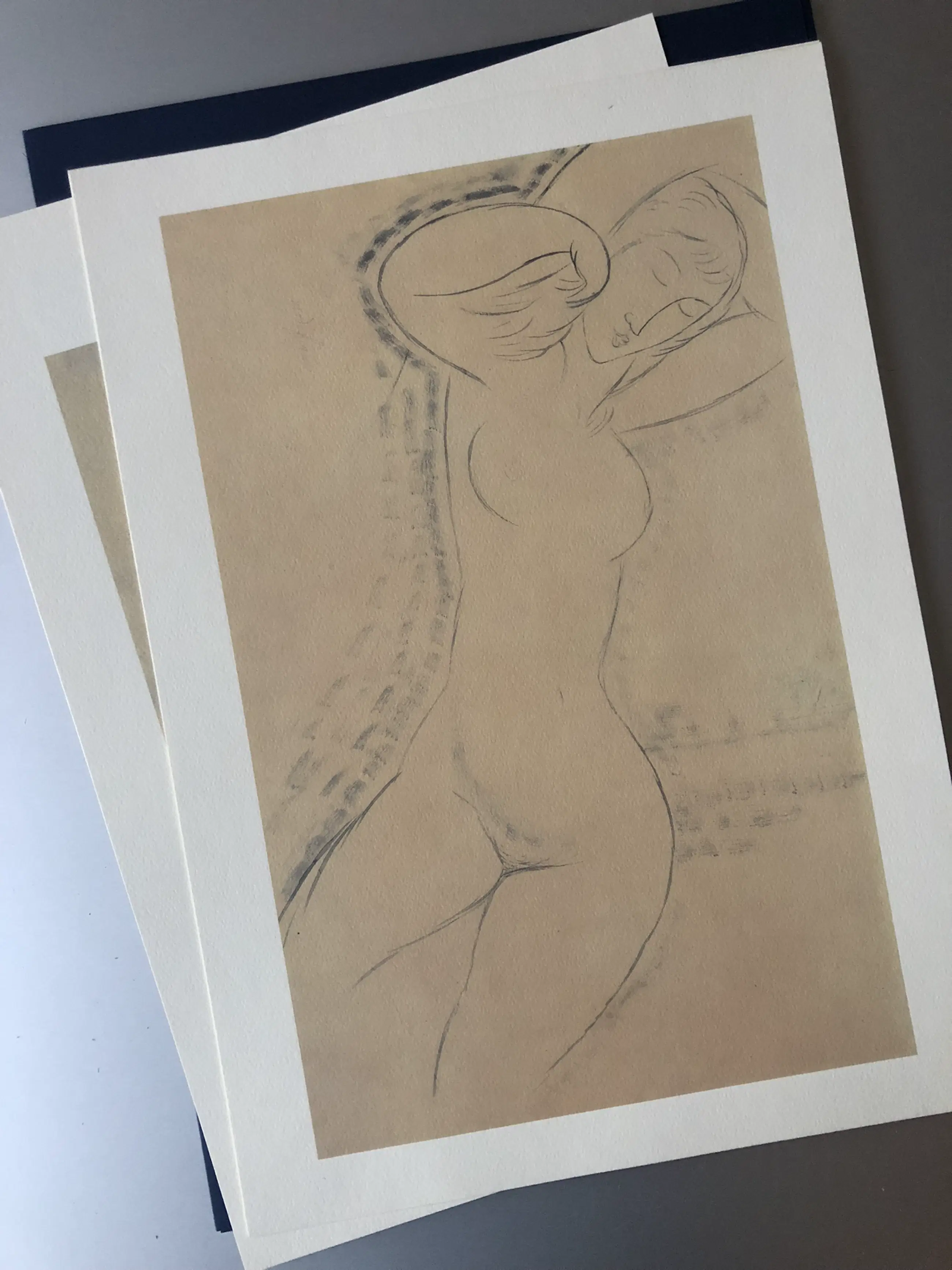 Luxury portfolio with six drawings (reproductions) by Modigliani in mint condition. Beautiful work published on the occasion of a retrospective exhibition of Modigliani's work in Musée Luxembourg Paris.