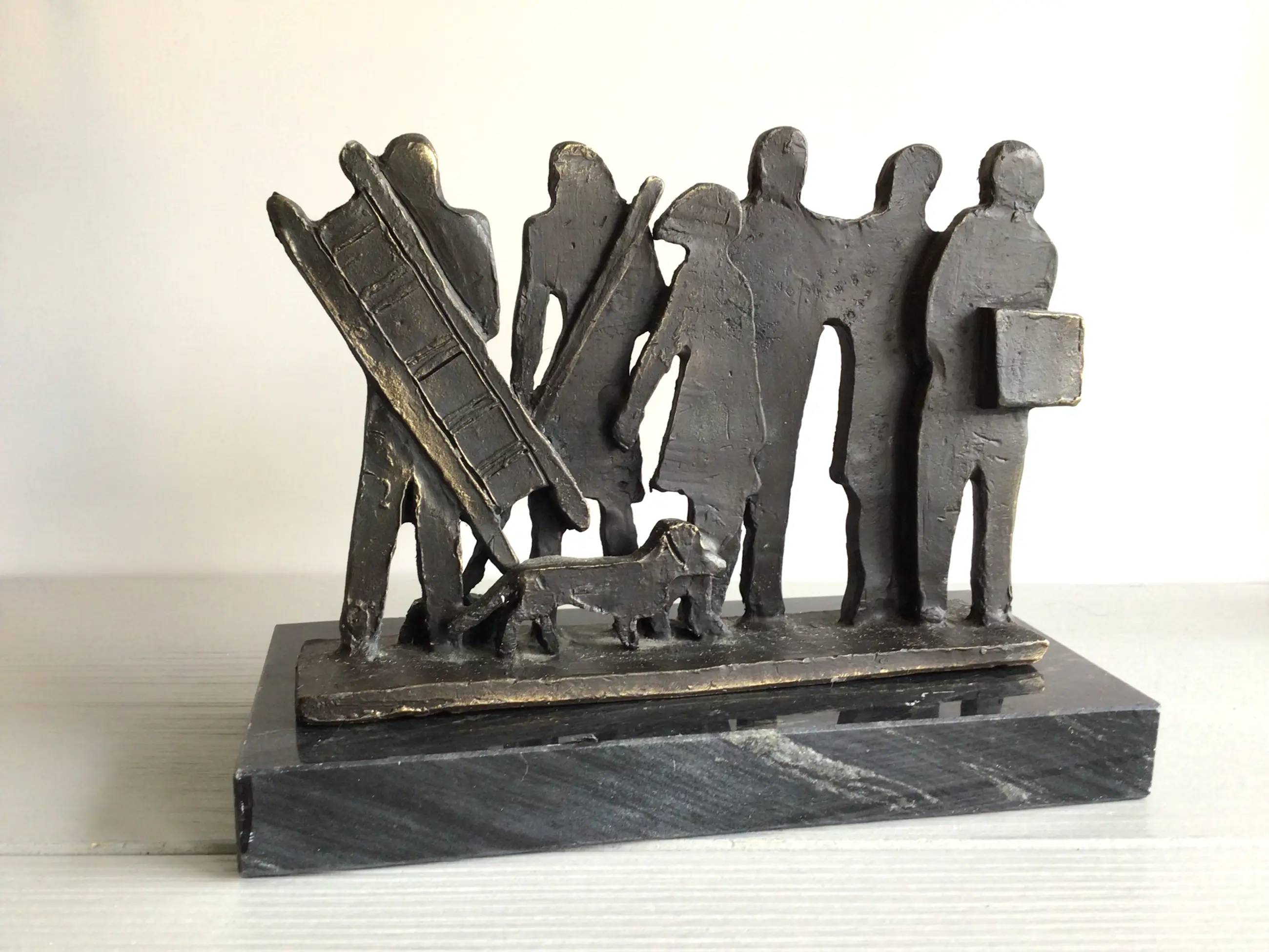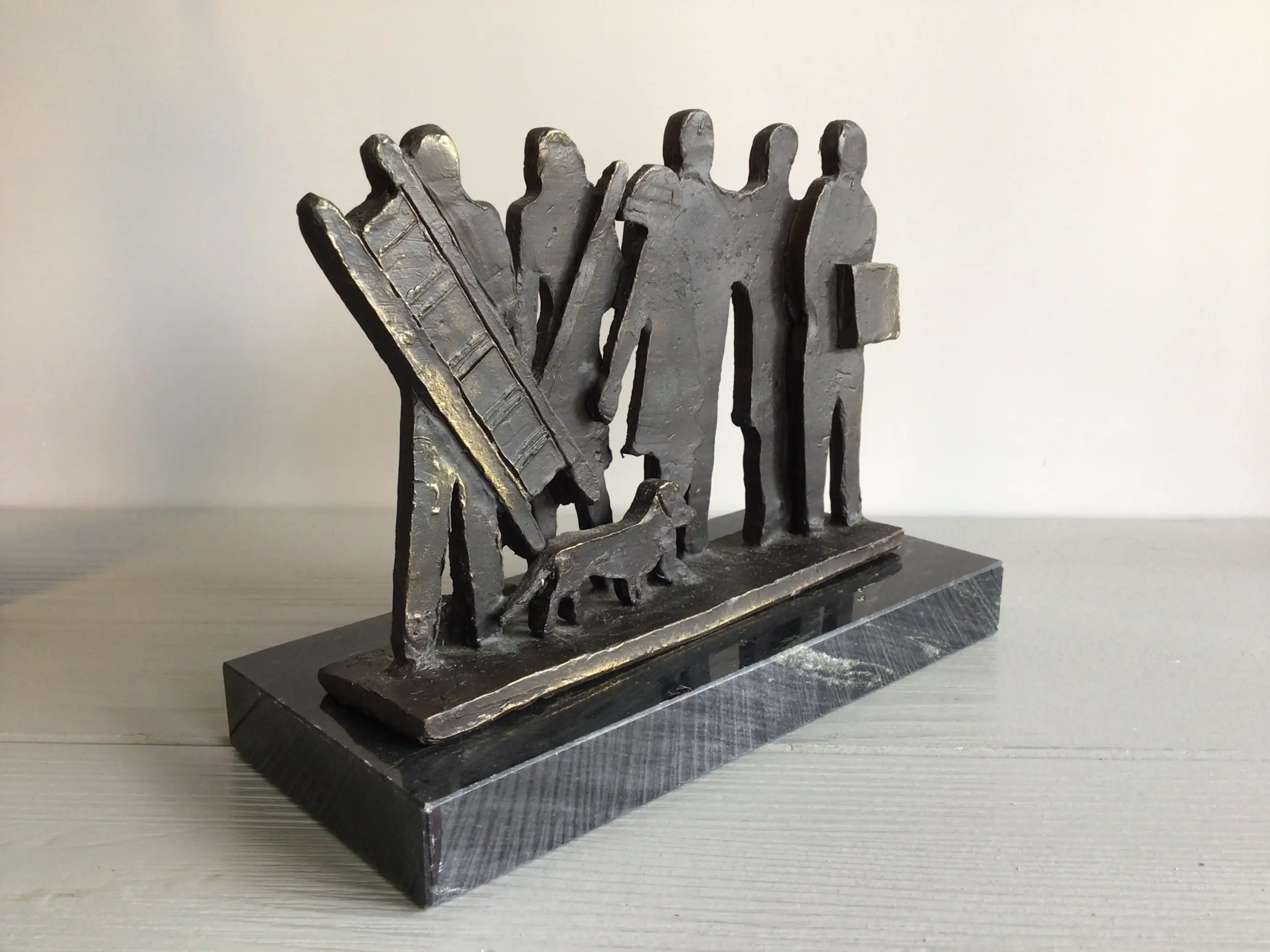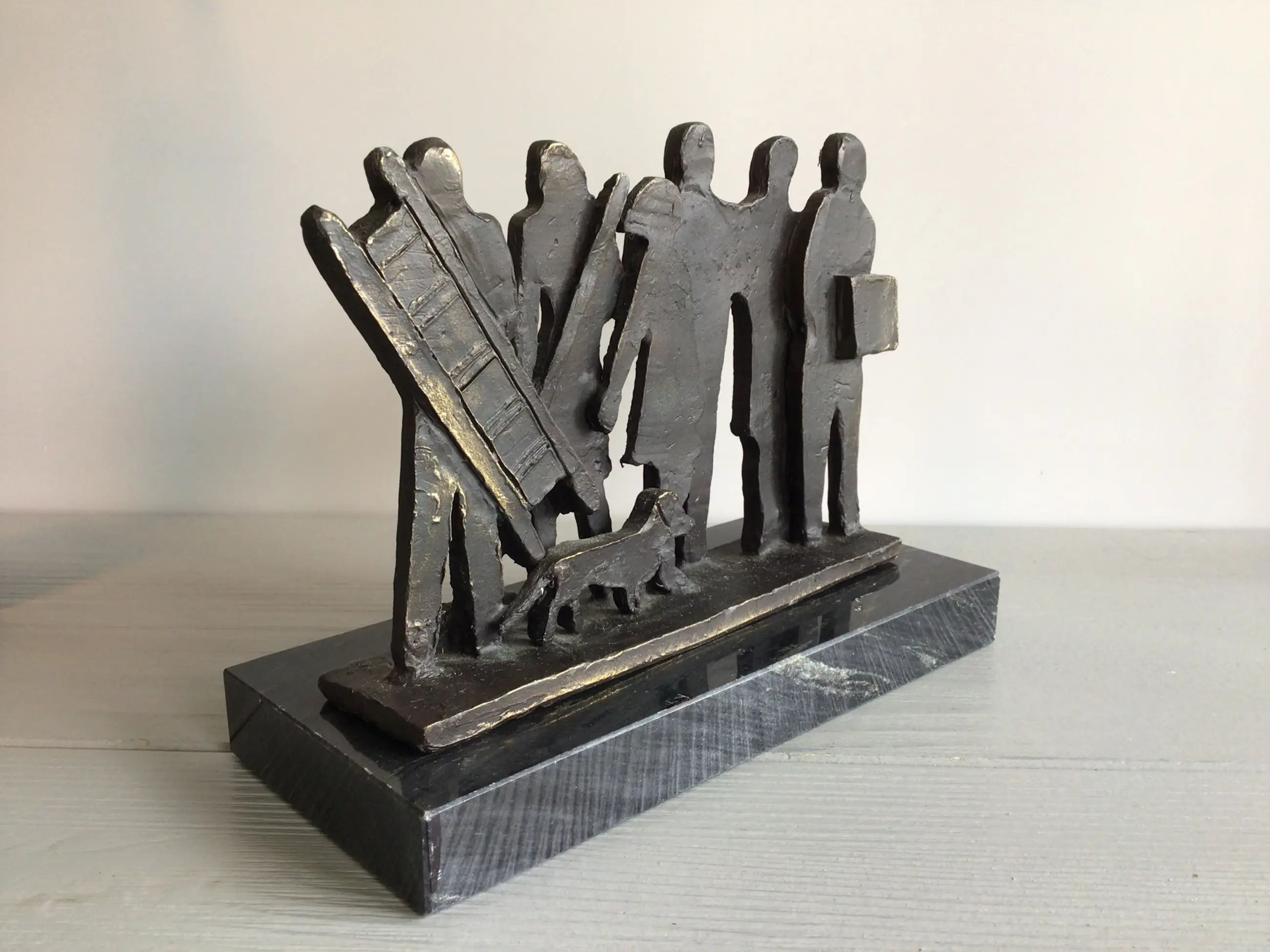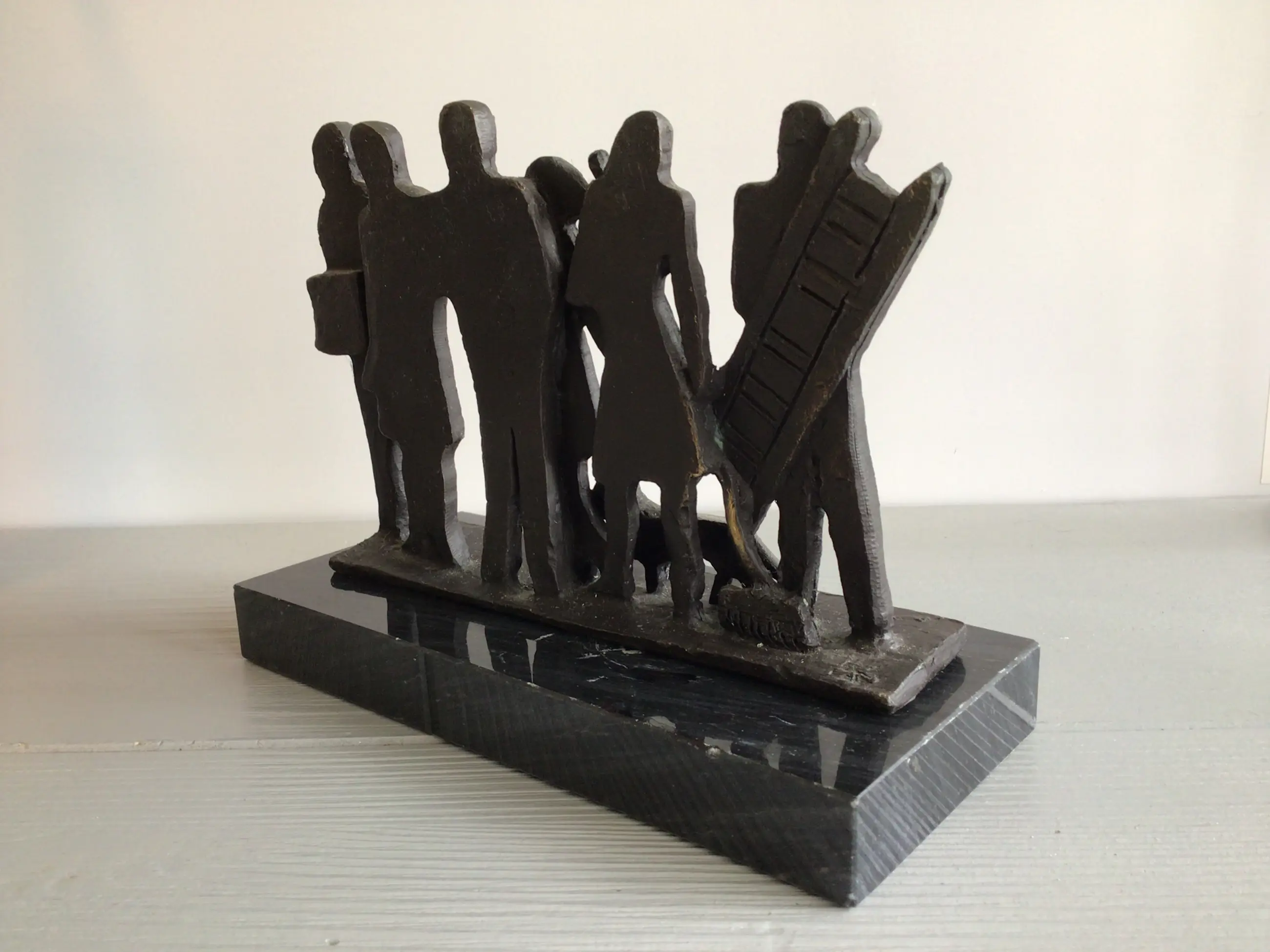 A beautiful stylistic sculpture of six human figures, each with their own story. This is a fairly rare specimen, no longer available for sale. Artist: Astrid Veldhuyzen heads The statue is signed: AV Material: bronze The statue is in good condition and will be shipped carefully packaged.