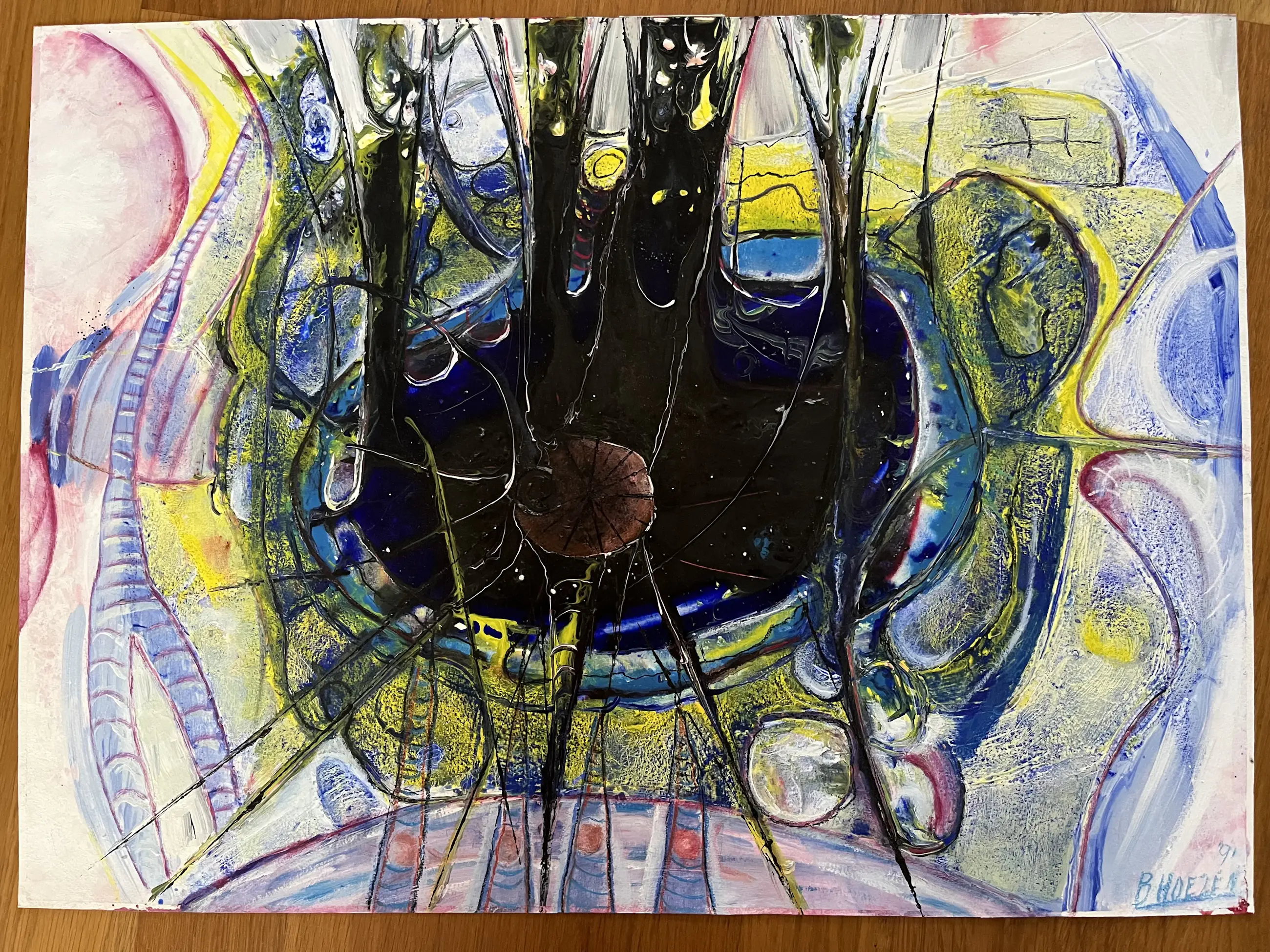 Mixed media from 1991. The work has been framed, as can be seen from the edges of the sheet. Comes from the former ABN collection Dimensions: 55 x 75 cm.