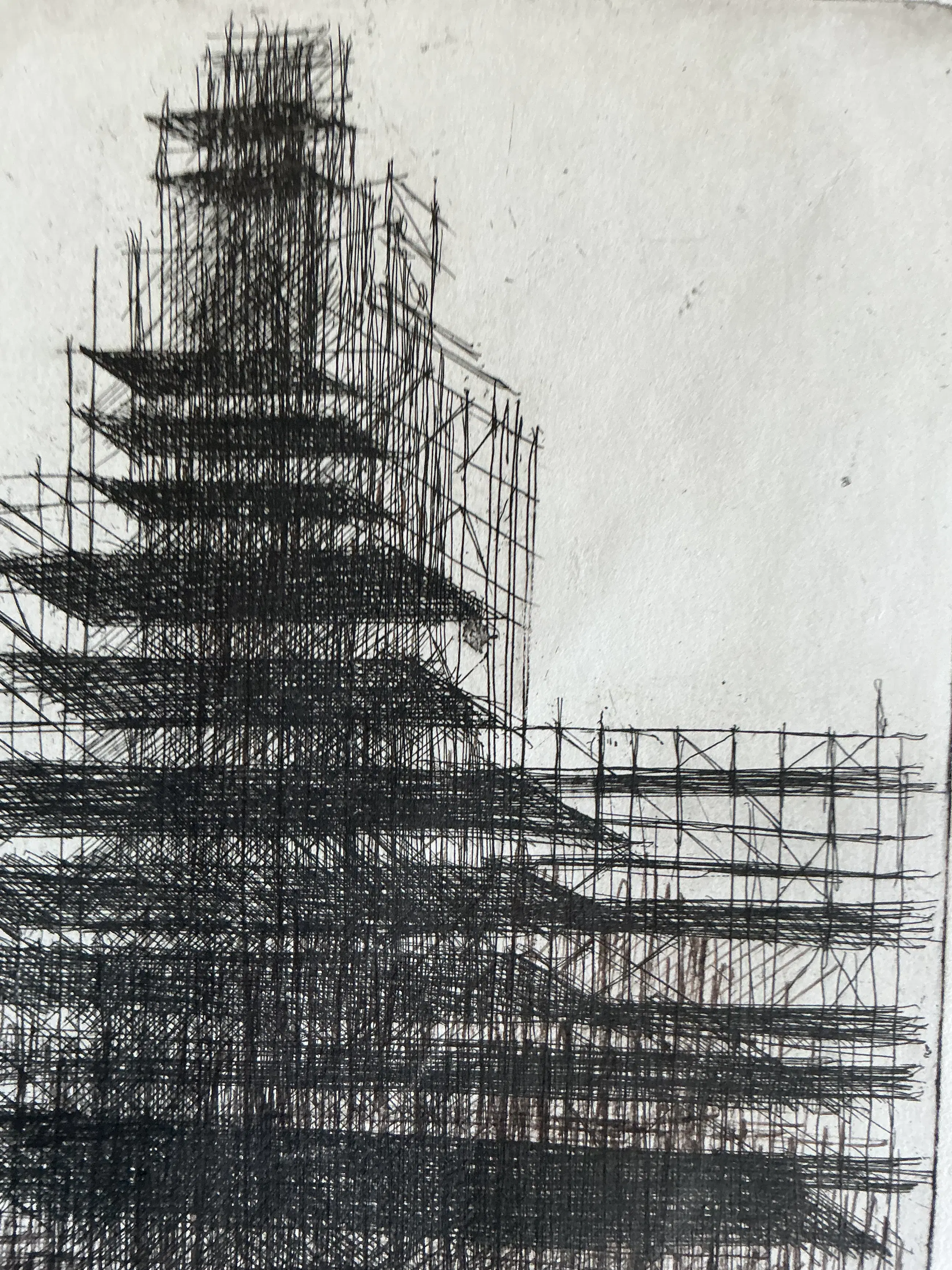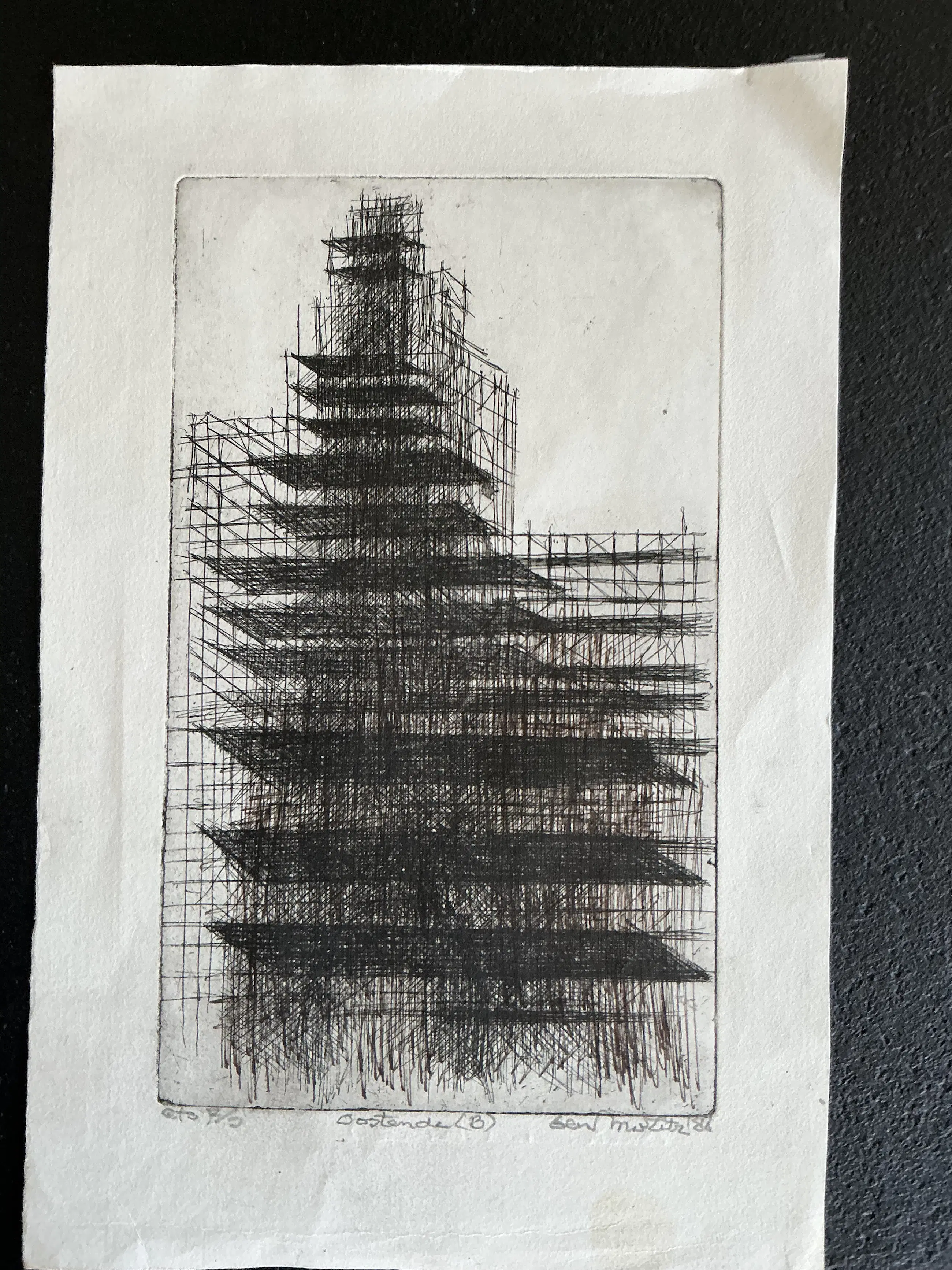 Plate size: 25 * 15 cm Condition: good condition (age spots not disturbing) Ben Moritz (1906 _ 2000) was an architect and student of Walter Gropius at the Bauhaus in Dessau. He is known as an artist for his etchings. The etching offered here reveals his training as an architect.