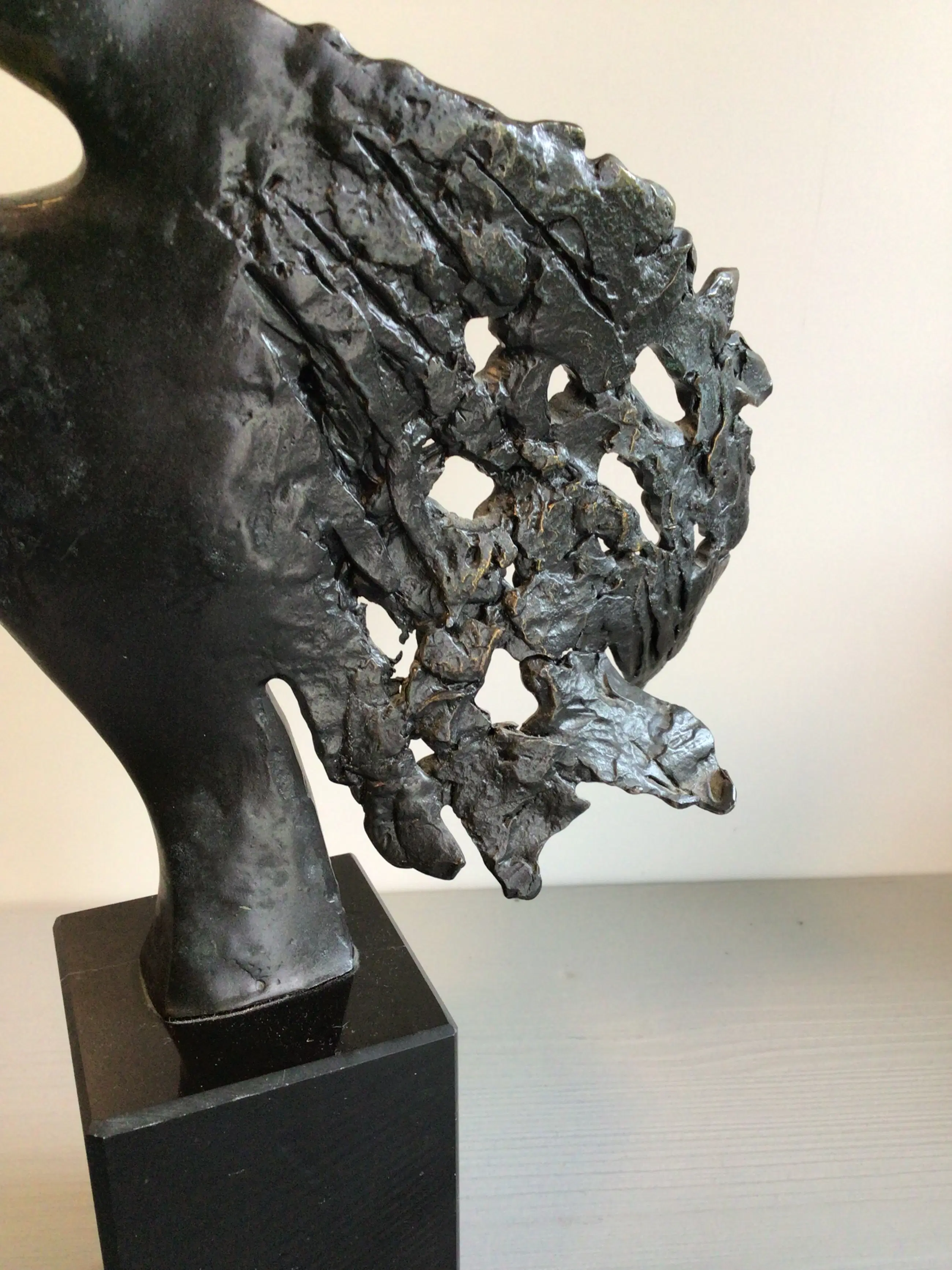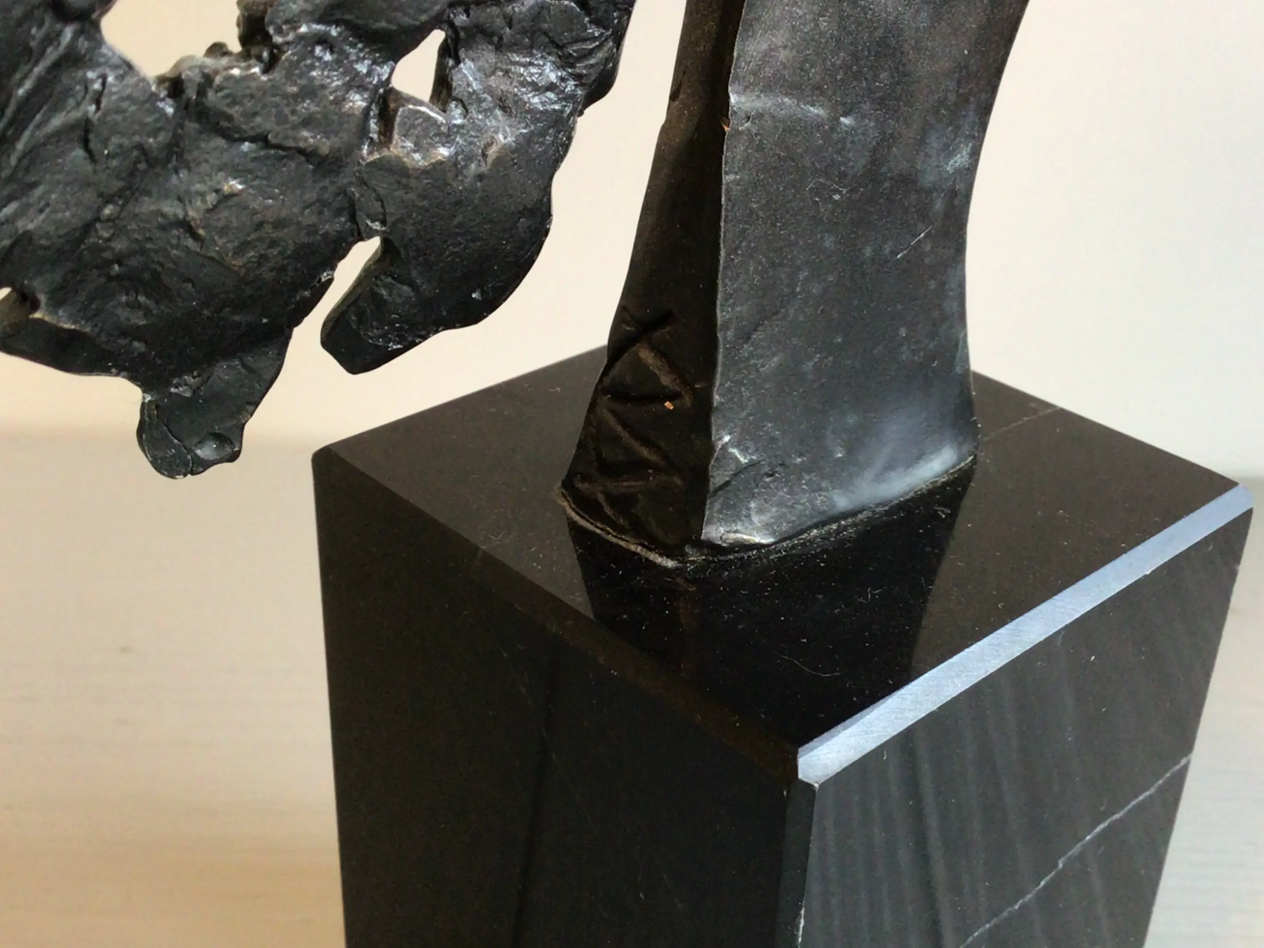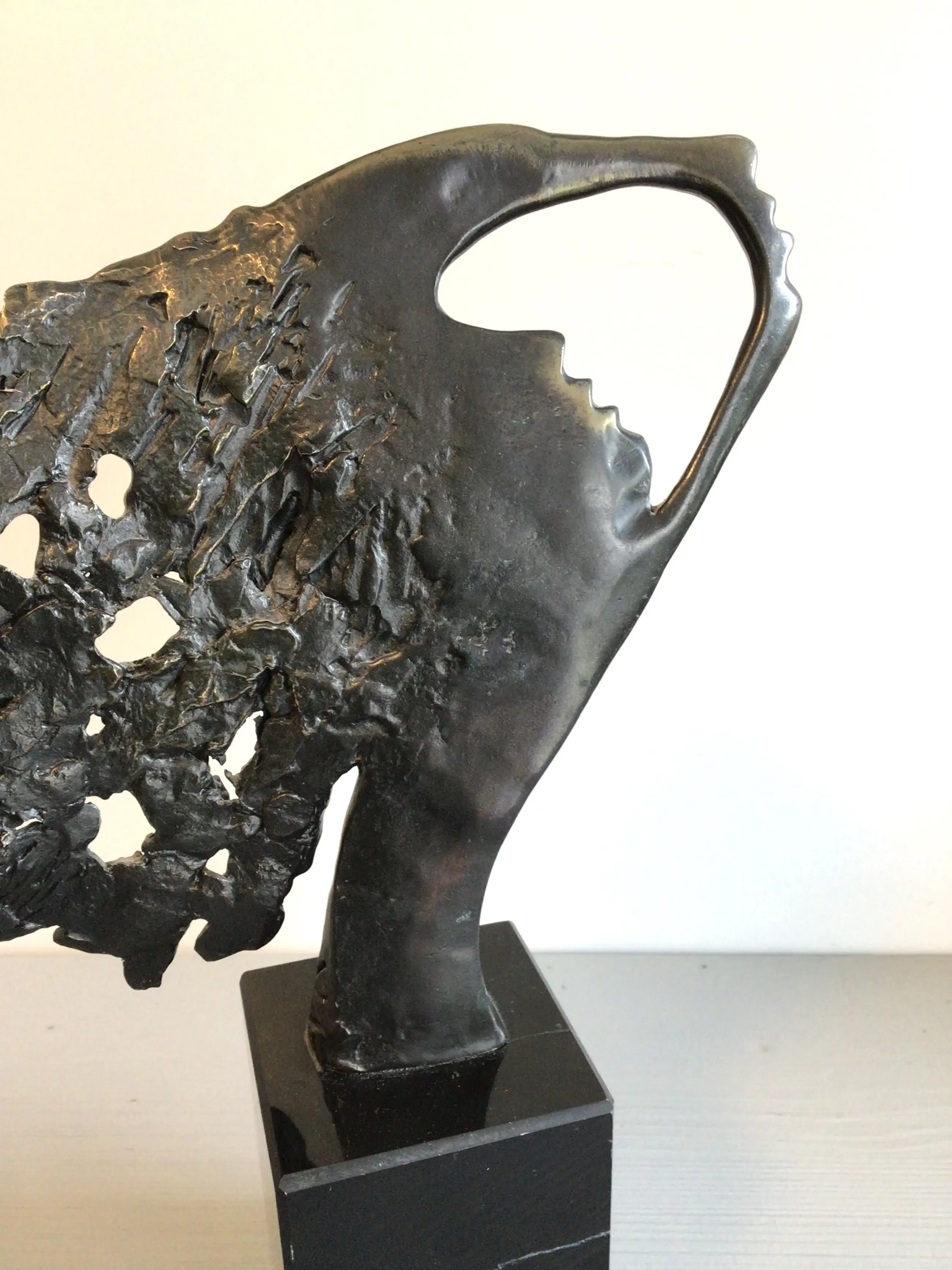 Very beautiful and detailed sculpture of a woman's face looking up expectantly, a very special and rare example. Title “Vision of the future” Artist: Bernadette Leijdekkers The statue is signed on the back: BL Material: bronze on a beautiful black marble base The statue is in very good condition and will be shipped carefully packaged.