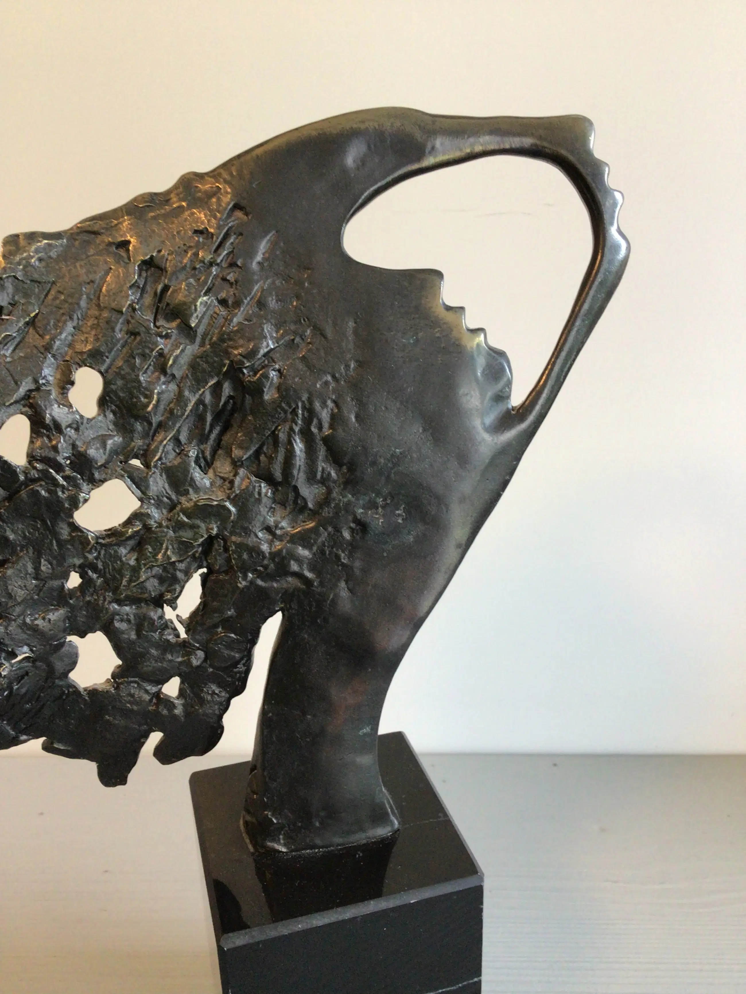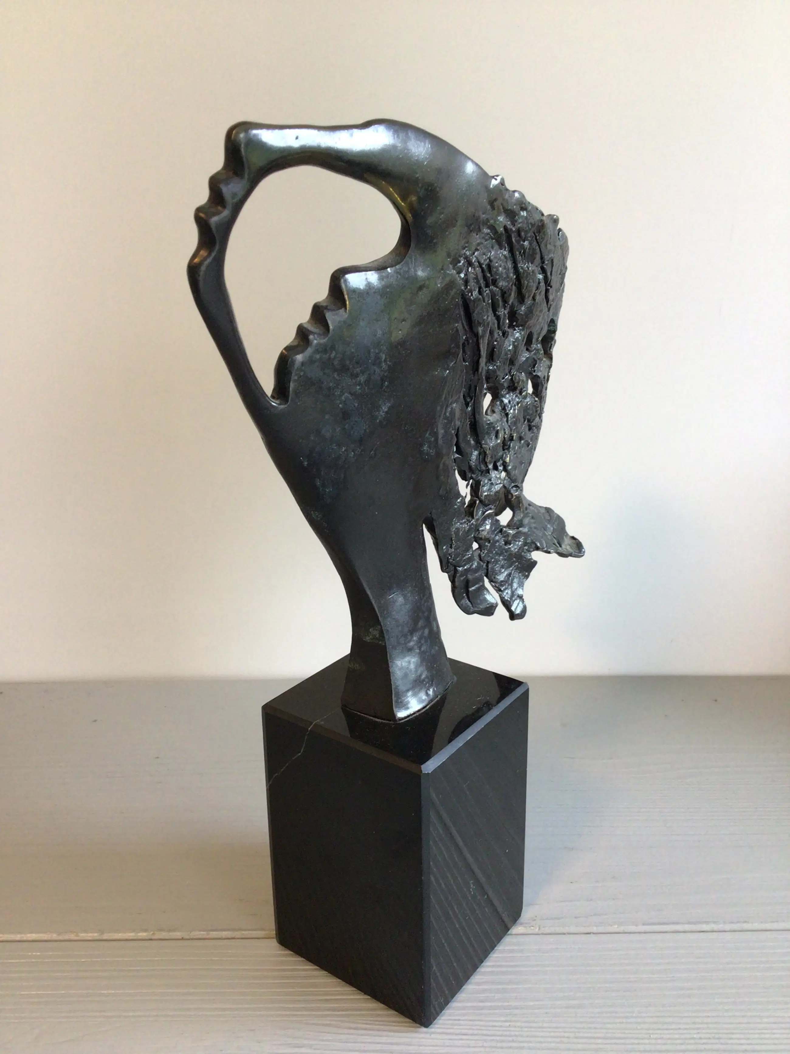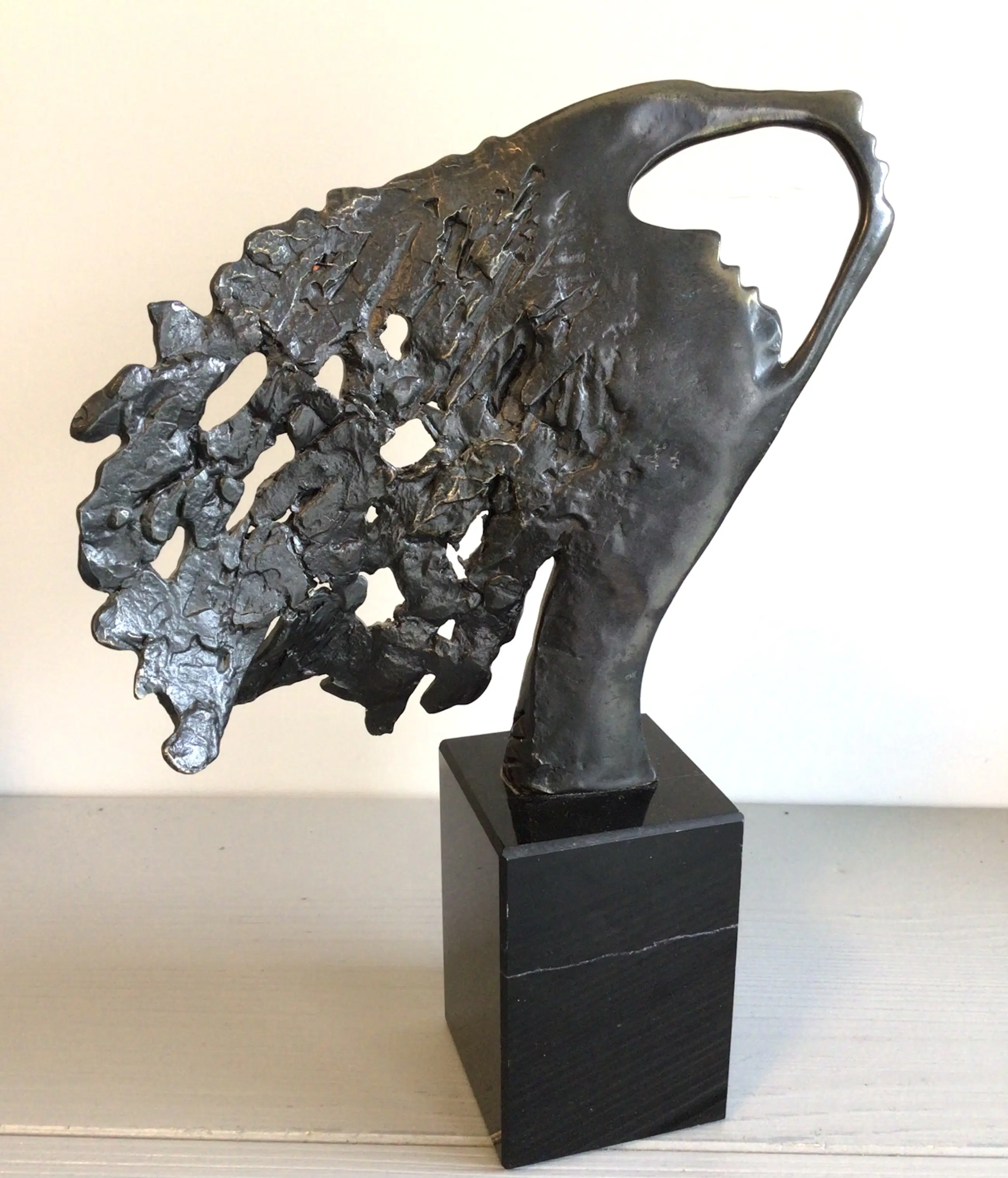 Very beautiful and detailed sculpture of a woman's face looking up expectantly, a very special and rare example. Title “Vision of the future” Artist: Bernadette Leijdekkers The statue is signed on the back: BL Material: bronze on a beautiful black marble base The statue is in very good condition and will be shipped carefully packaged.