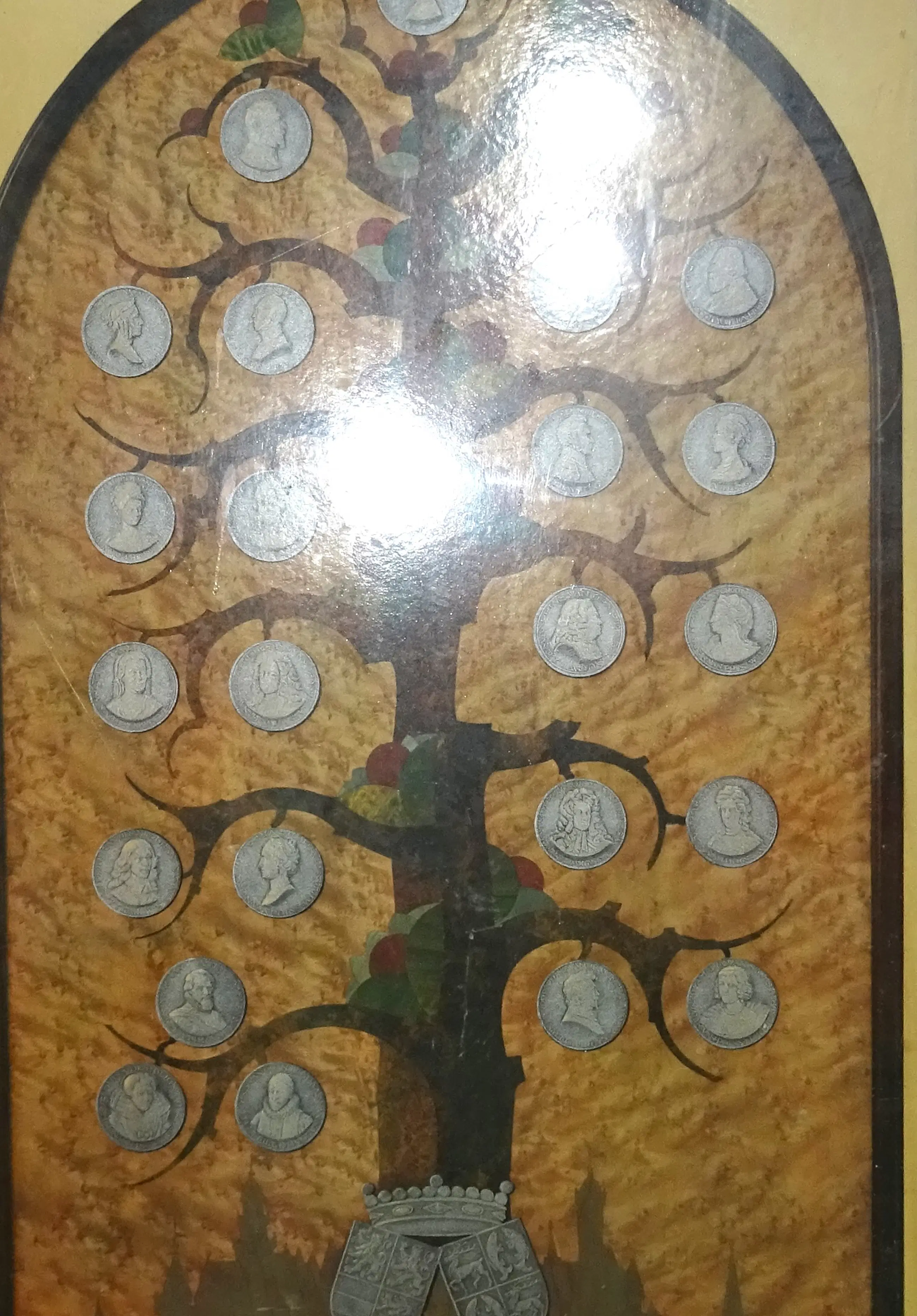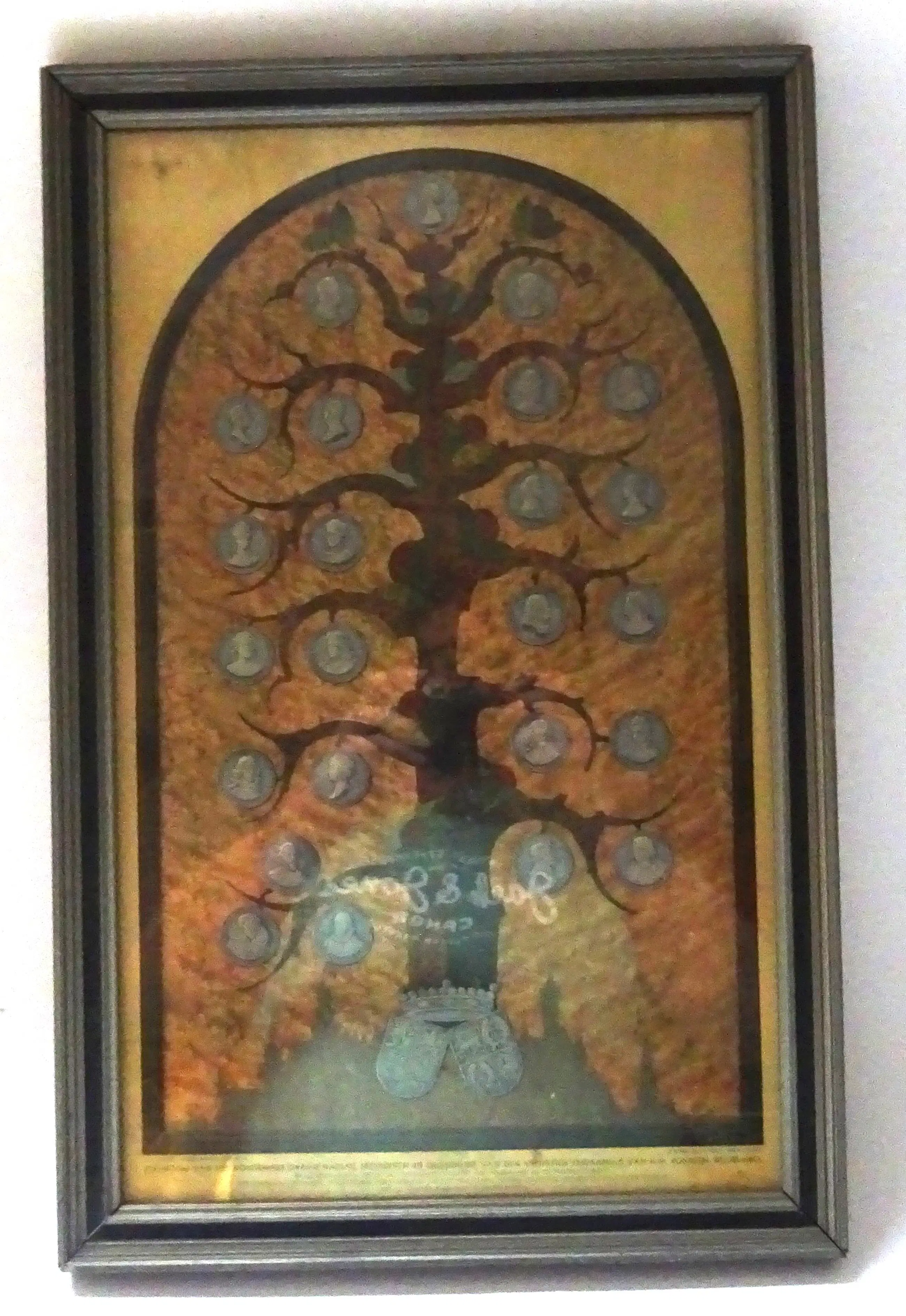 A rotogravure of a family tree of the royal family on the occasion of the fiftieth birthday of Queen Wilhelmina. Design Chris van der Hoef.