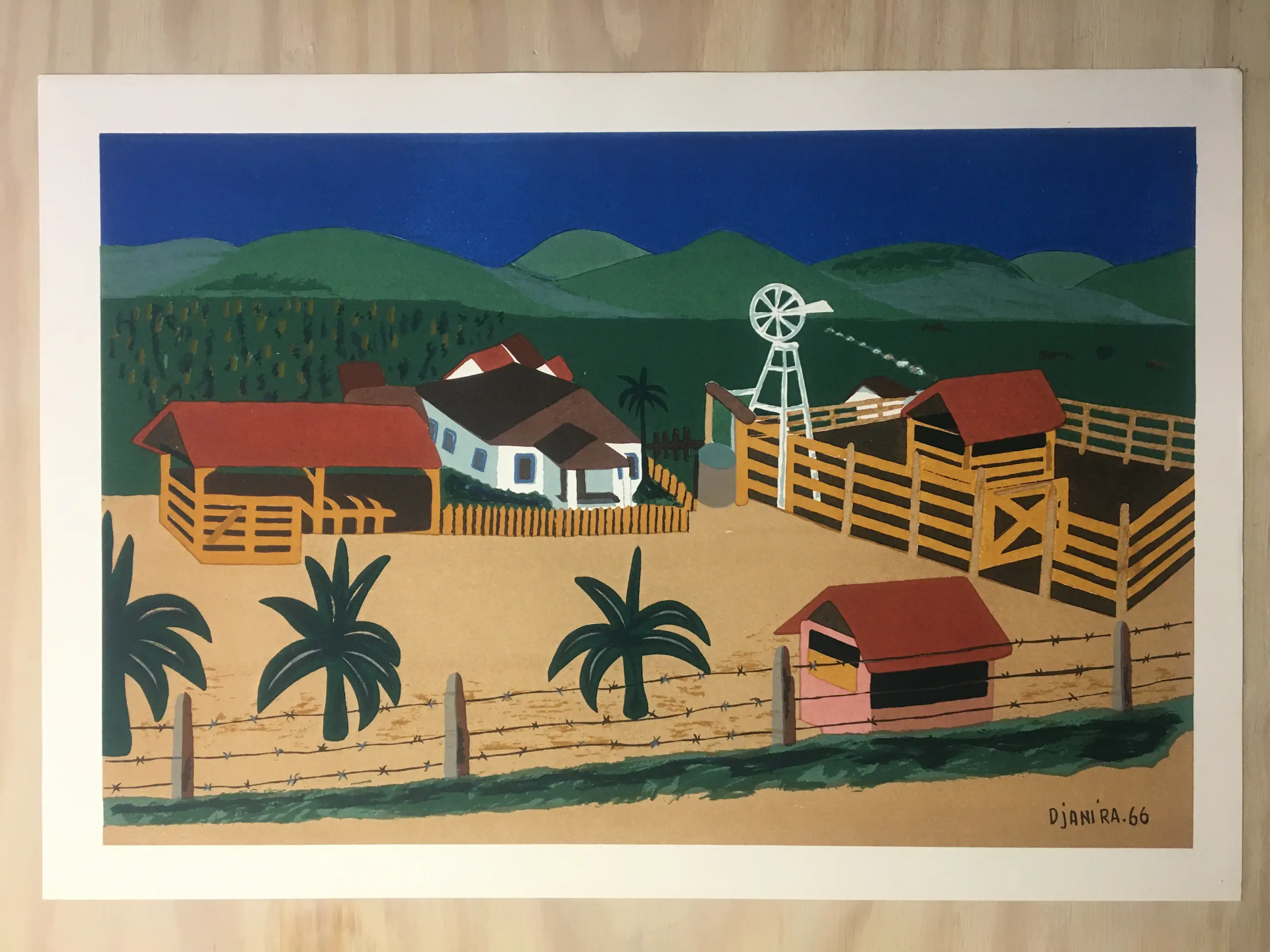 Djanira continued to work with woodcuts, engravings and made drawings for tapestries and tiles. In production is the monumental tile tableau for the tunnel chapel of Santa Barbara (1958) in Rio de Janeiro. Her work was initially called "primitive", but has gradually gained more critical acclaim. According to the art critic Mário Pedrosa (1900-1981), Djanira is an artist who does not improvise and although her works look naive and instinctive, they are the result of careful preparation. (Source: Wikipedia)