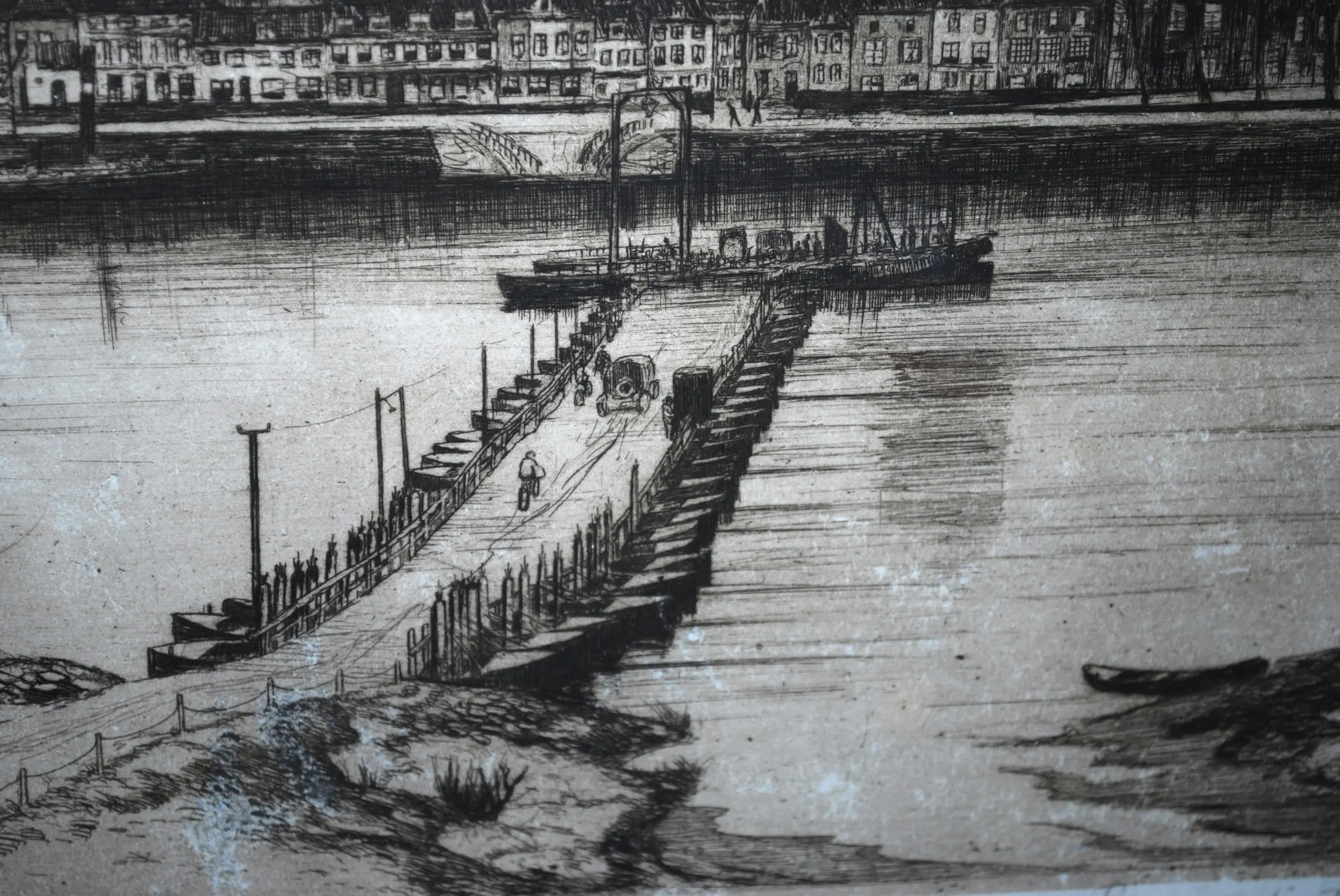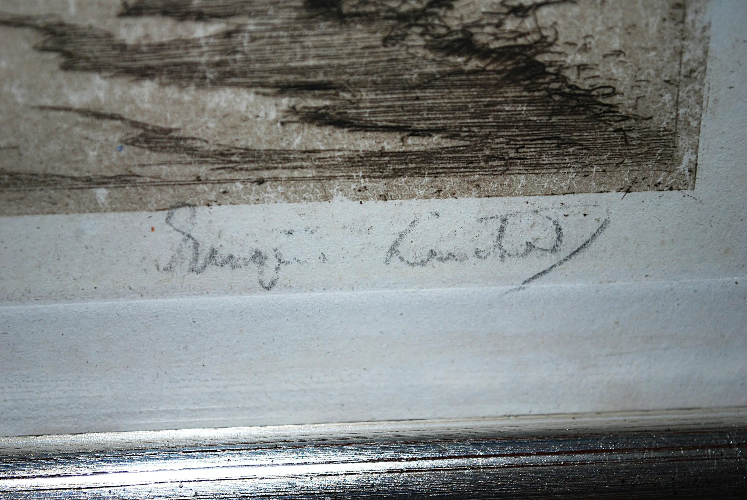 The sheet (36x56 cm) is placed loosely behind glass. Signed in pencil lower right and numbered 43/100 lower right In a wooden frame with a semi-circular profile.