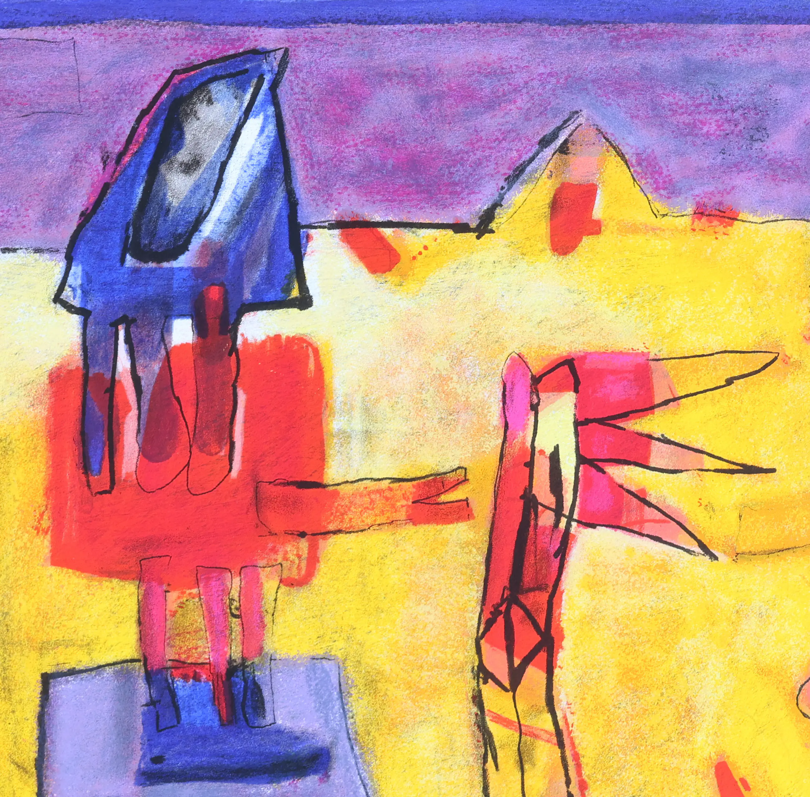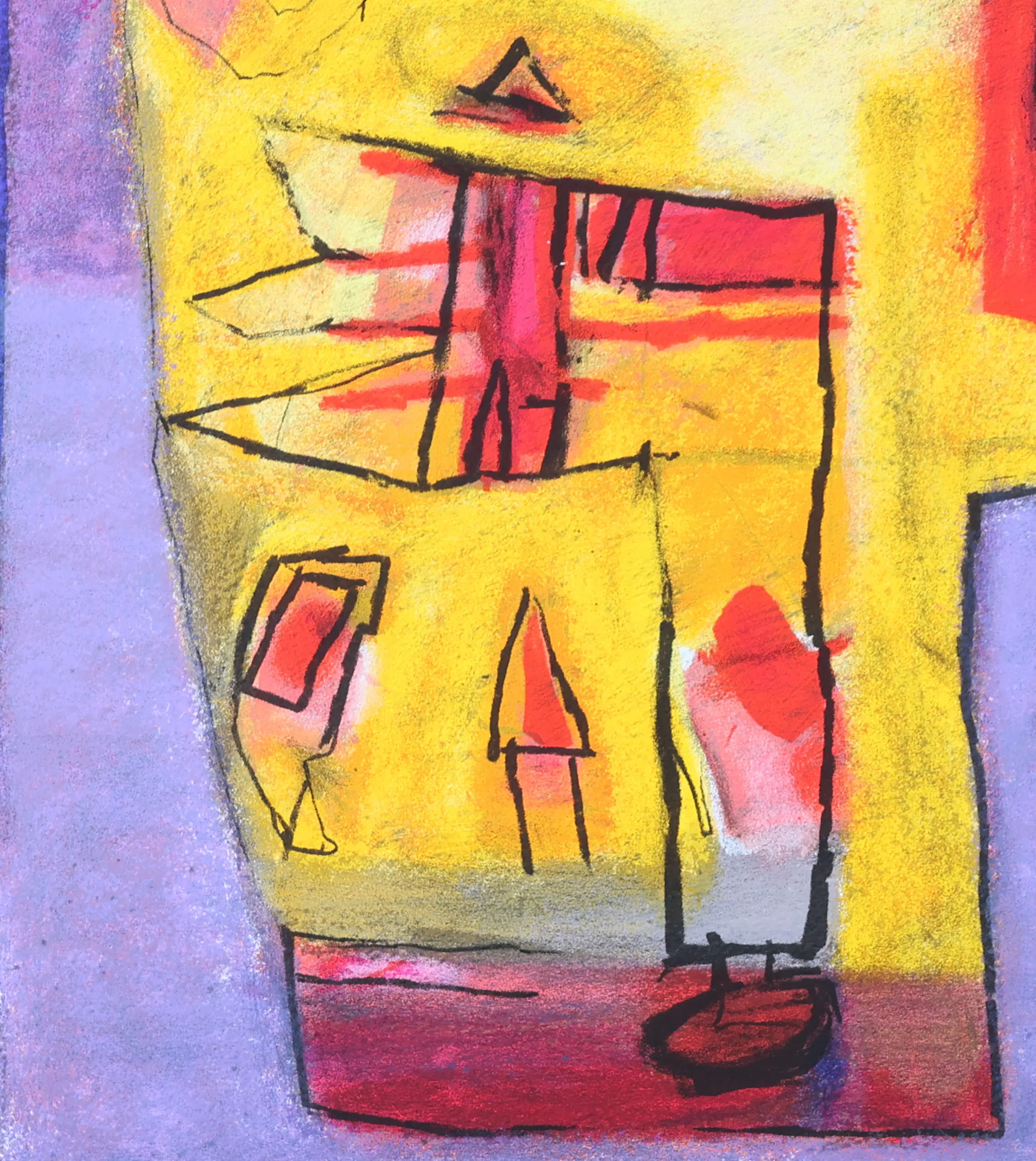 Geert Vrijdag's work, with its abstraction and abundance of color, is reminiscent of Cobra, yet has its own distinct style. Vrijdag worked without a preconceived idea, detached from figuration. The creative process was very important to him. He said that a meditative attitude allows him to work intuitively. "From that emptiness, something emerges; something unknown that longs to be known. I record the encounter with that unknown in form, color, movement, and material," Vrijdag said. He sought to banish routine and tradition from the process in order to go beyond the observable world.