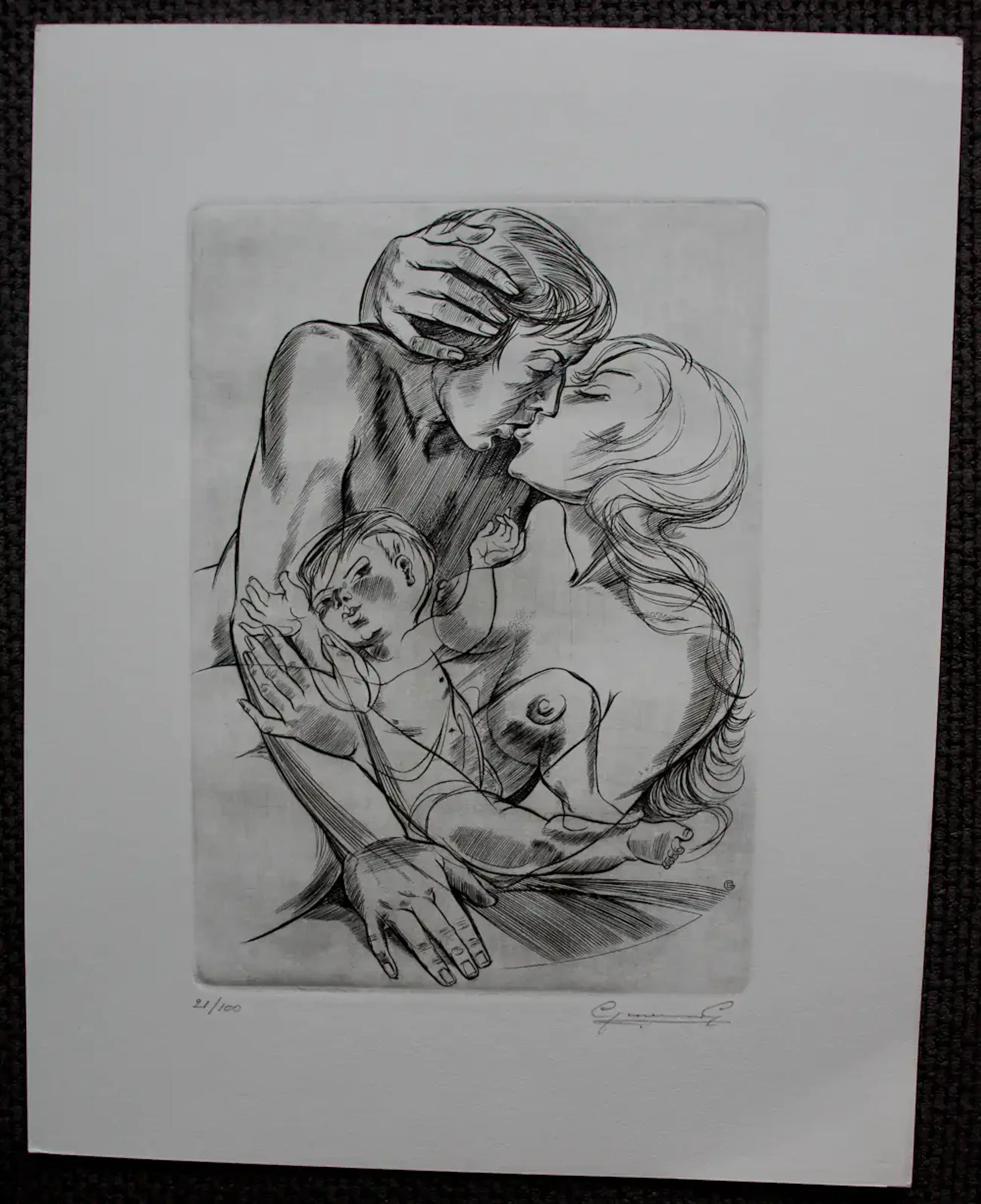 Etching by Gerard Gaudaen. Edition: 21/100. Sheet dimensions: H30 x W24cm, image dimensions: H20 x W15cm. The work is signed by the artist in the lower right corner. The authenticity of the work offered is fully guaranteed. A certificate of authenticity can be emailed upon request.