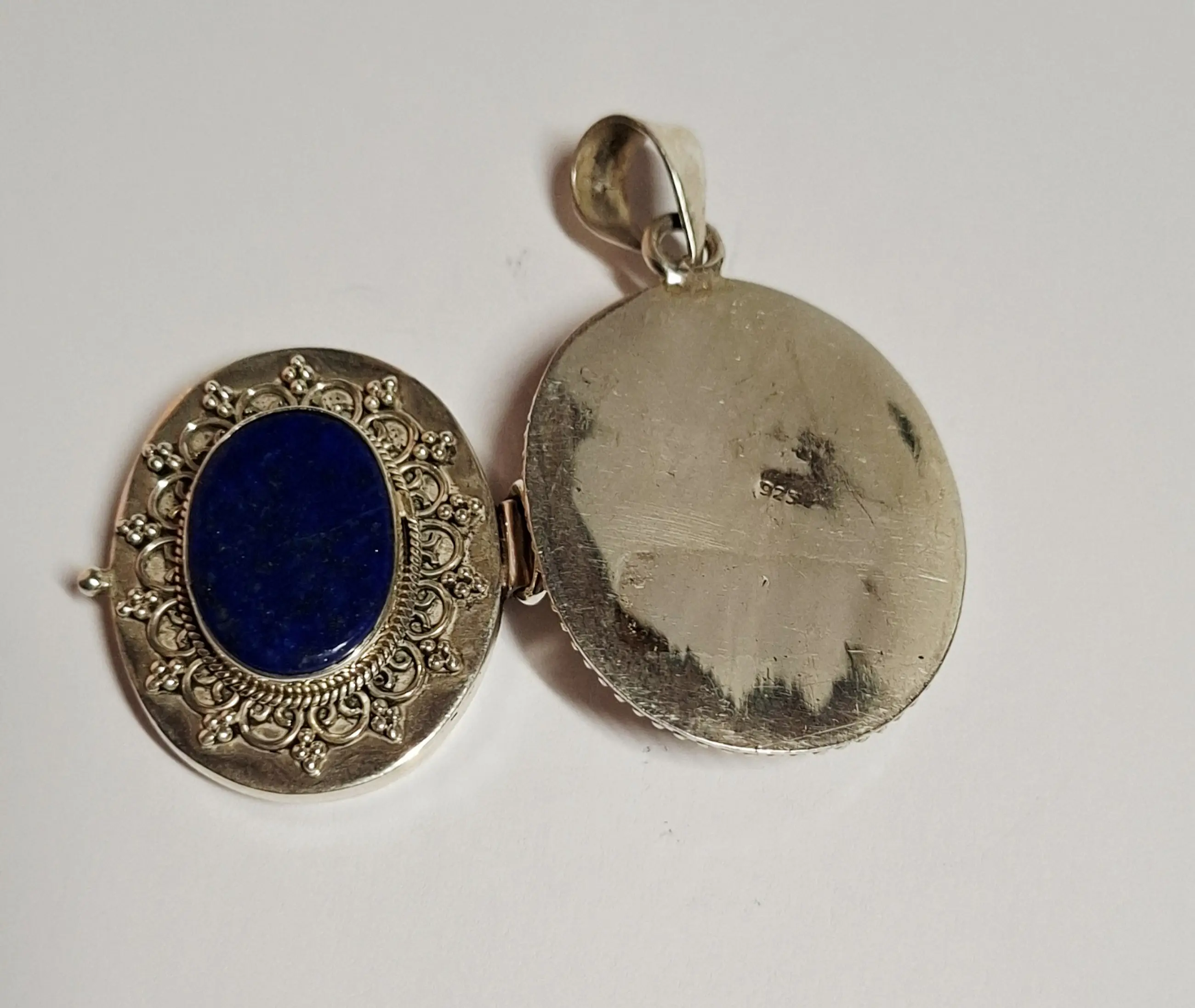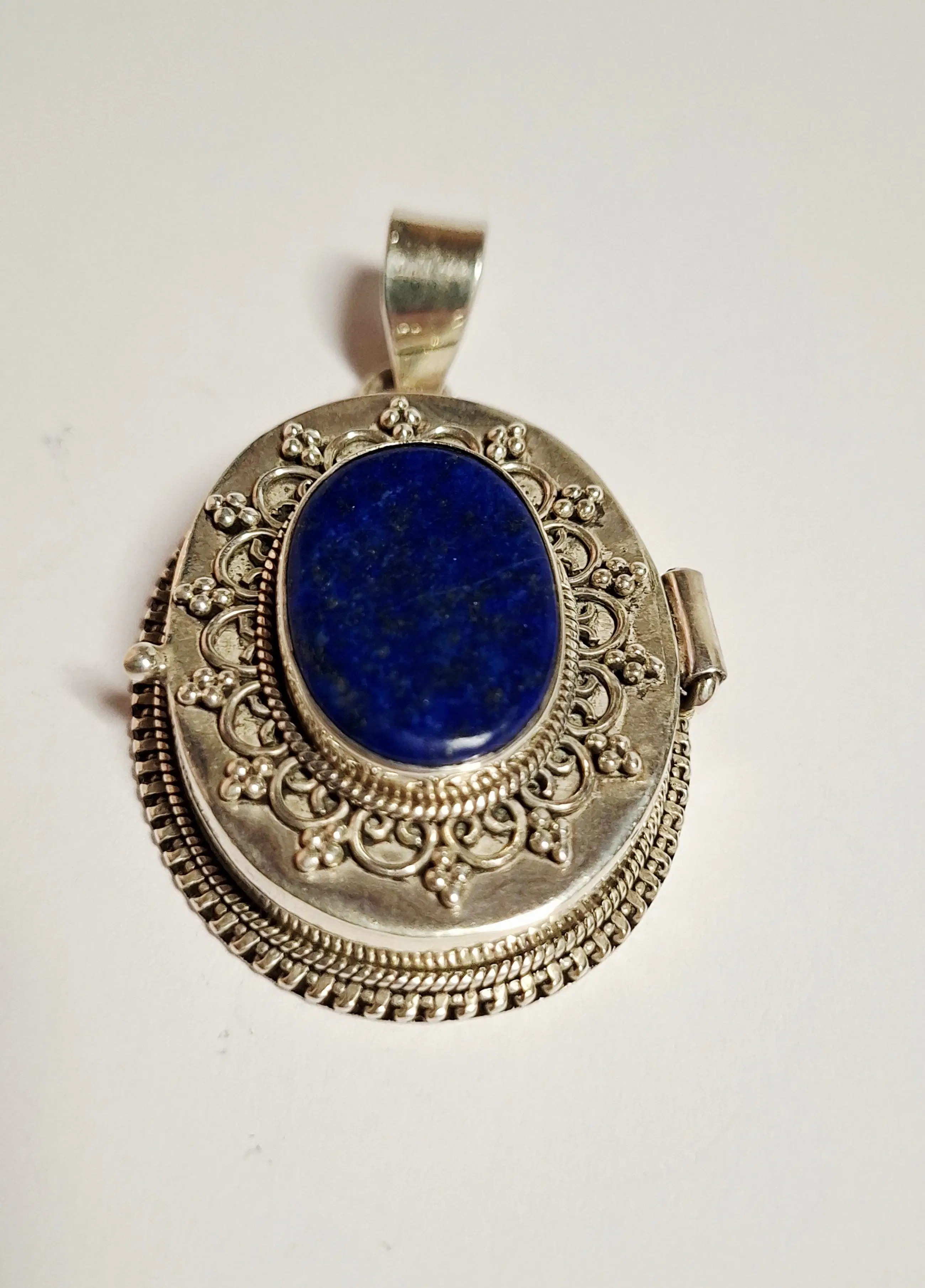 Handmade large XXL silver box pendant with natural lapis lazuli