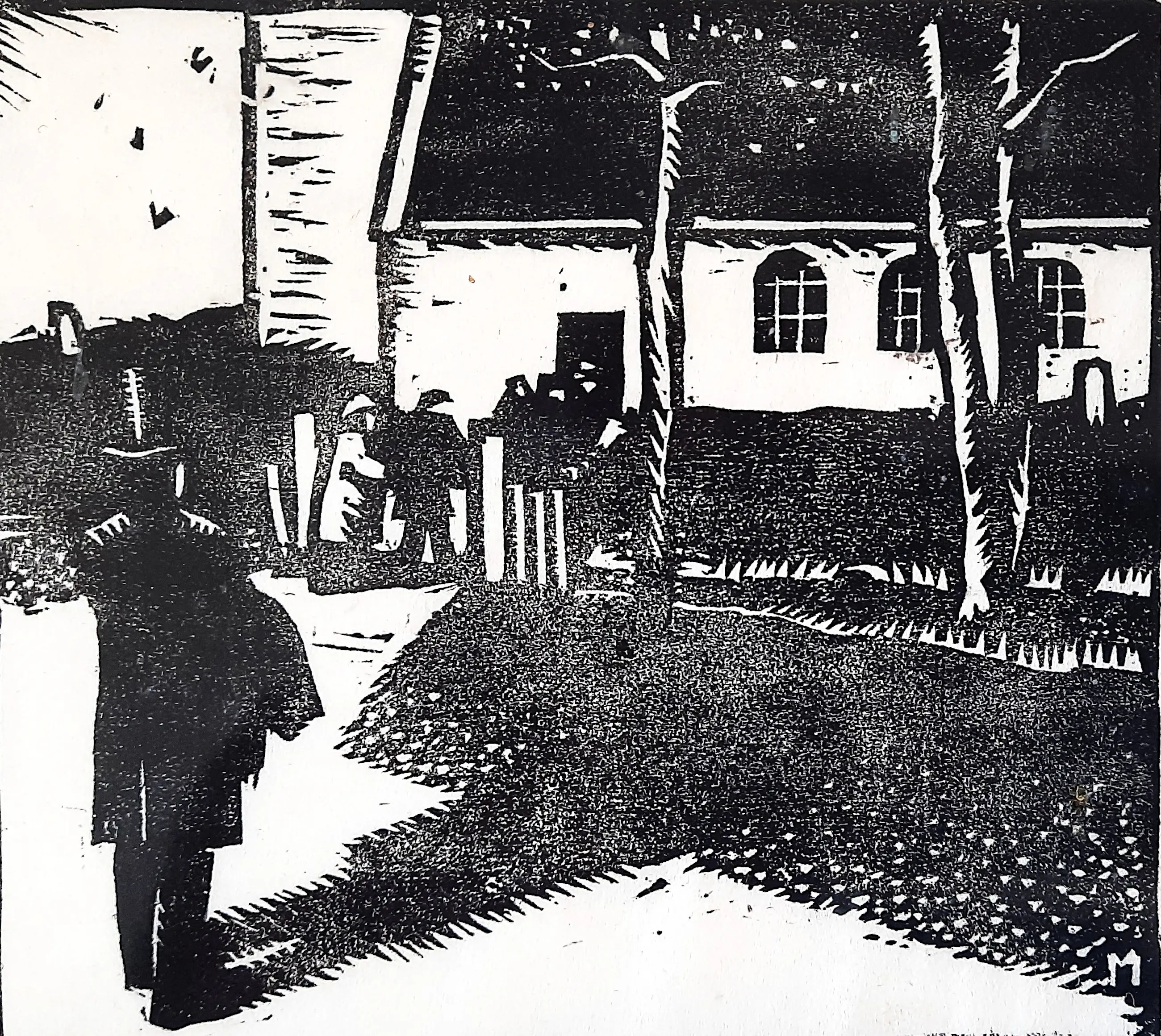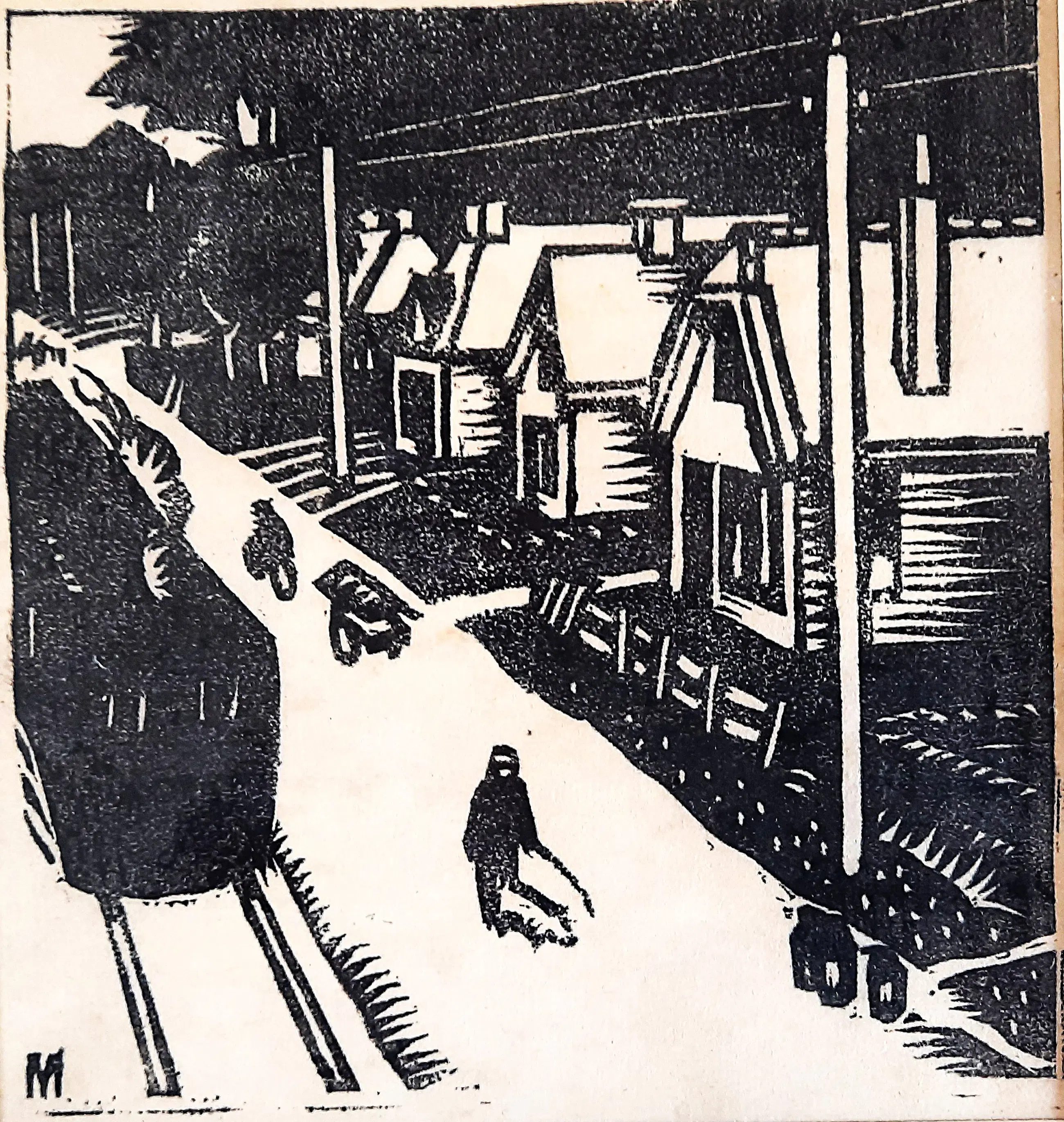 Three lino/woodcuts, two of which are signed with an initial in the print.