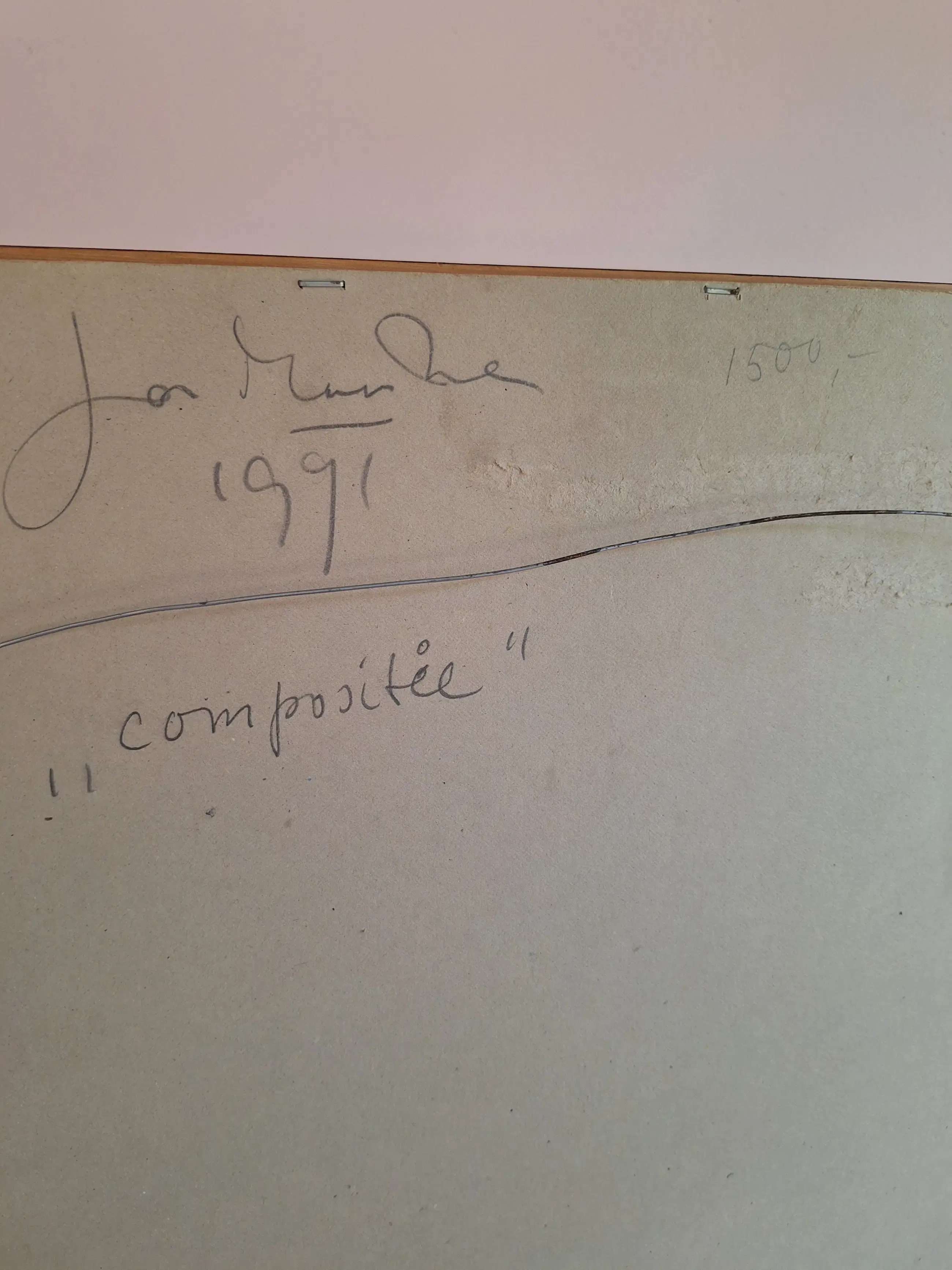 Very nice gouache on collage of newspaper clippings by Jon Marten from 1991.