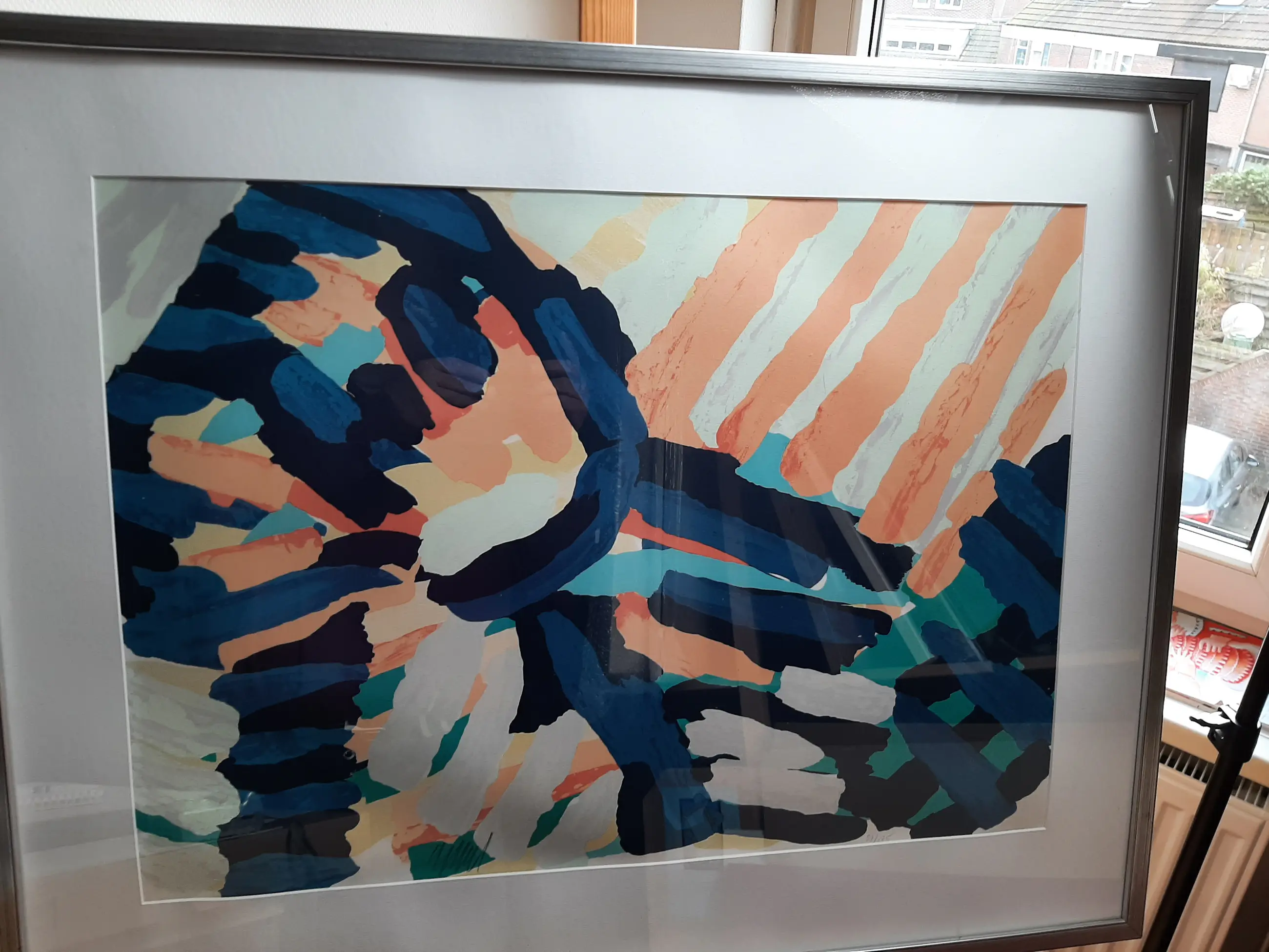 The work is H. 52 x W. 74 cm, framed H. 74 x W. 94 cm.