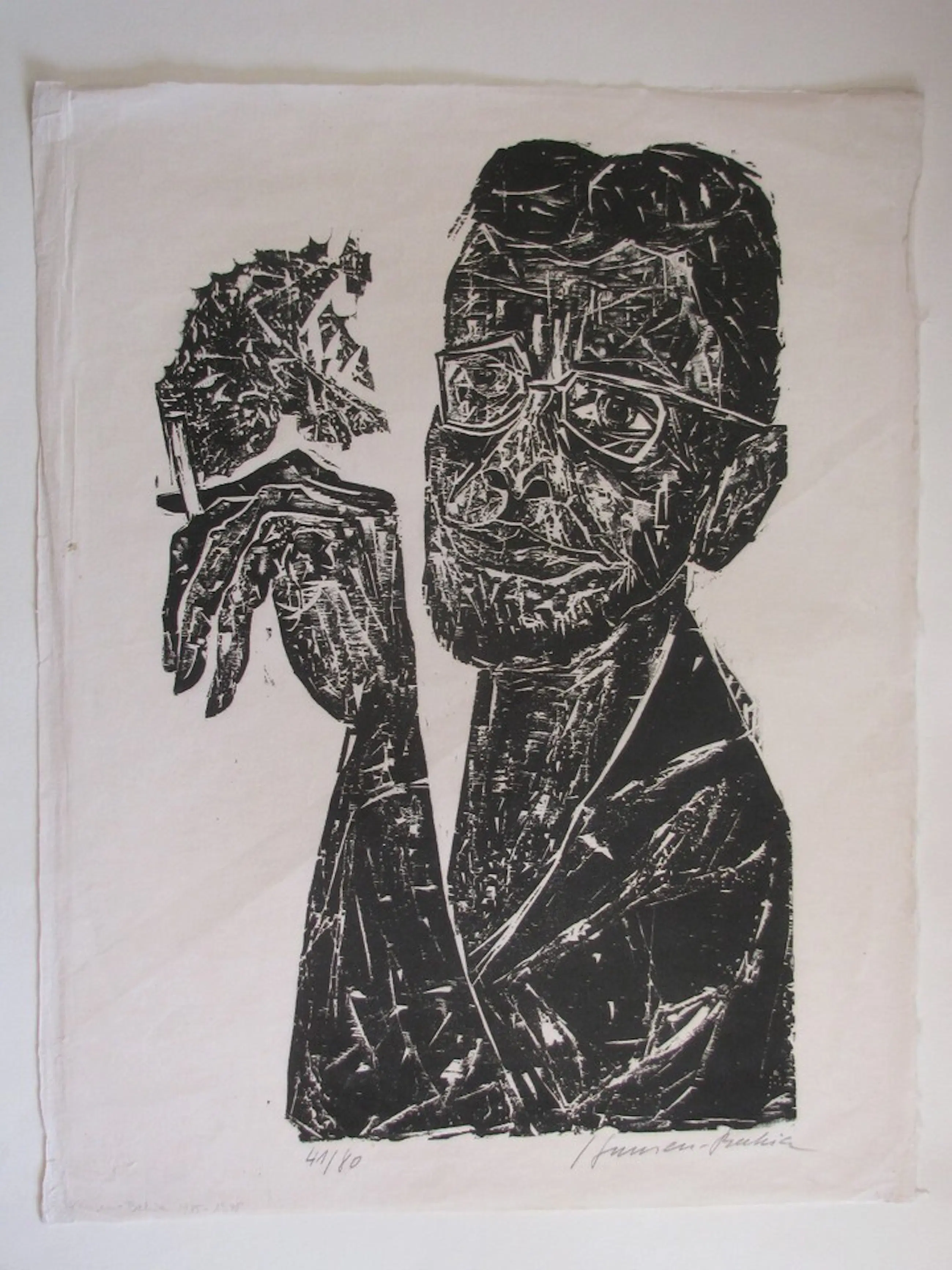 Woodcut on fine China laid paper. 67 x 53 cm. Signed in pencil. Edition, here page 41 of 80. Magnificent print with full deckle edge.