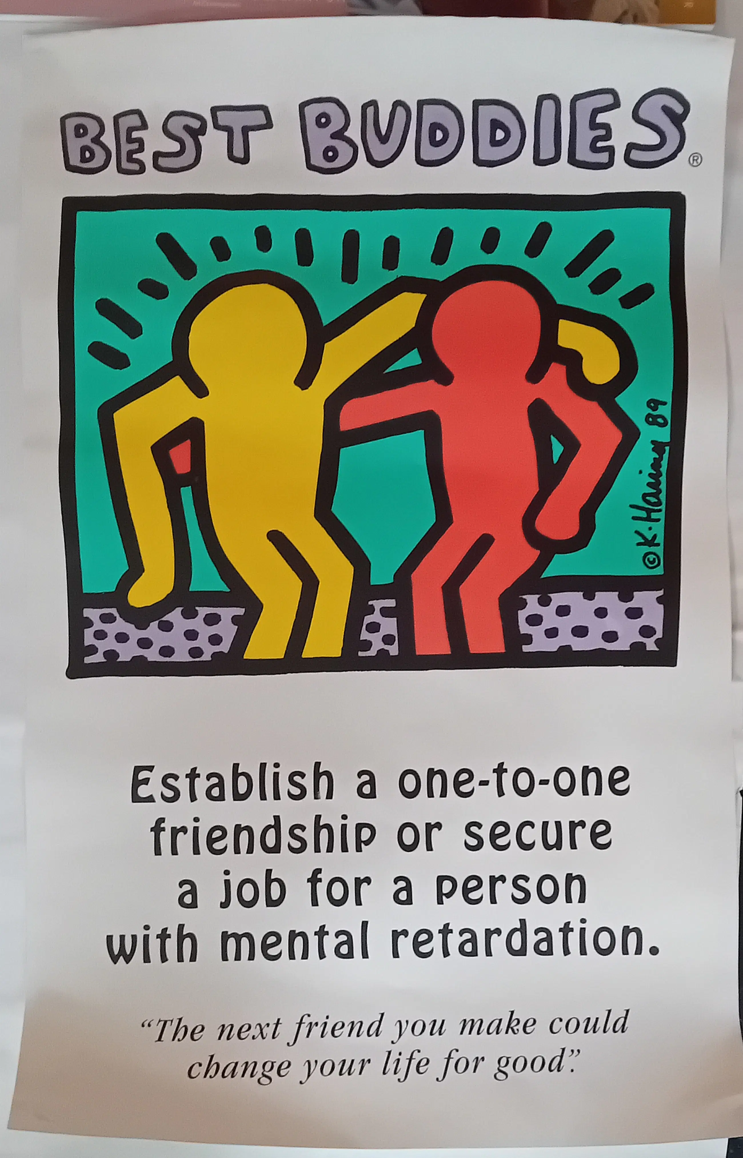 Affiche de Keinth Haring faite pour la fondation Best Buddies qui promeut le travail inclusif pour les personnes qui ont des troubles du développement ou des déficiences intellectuelles.