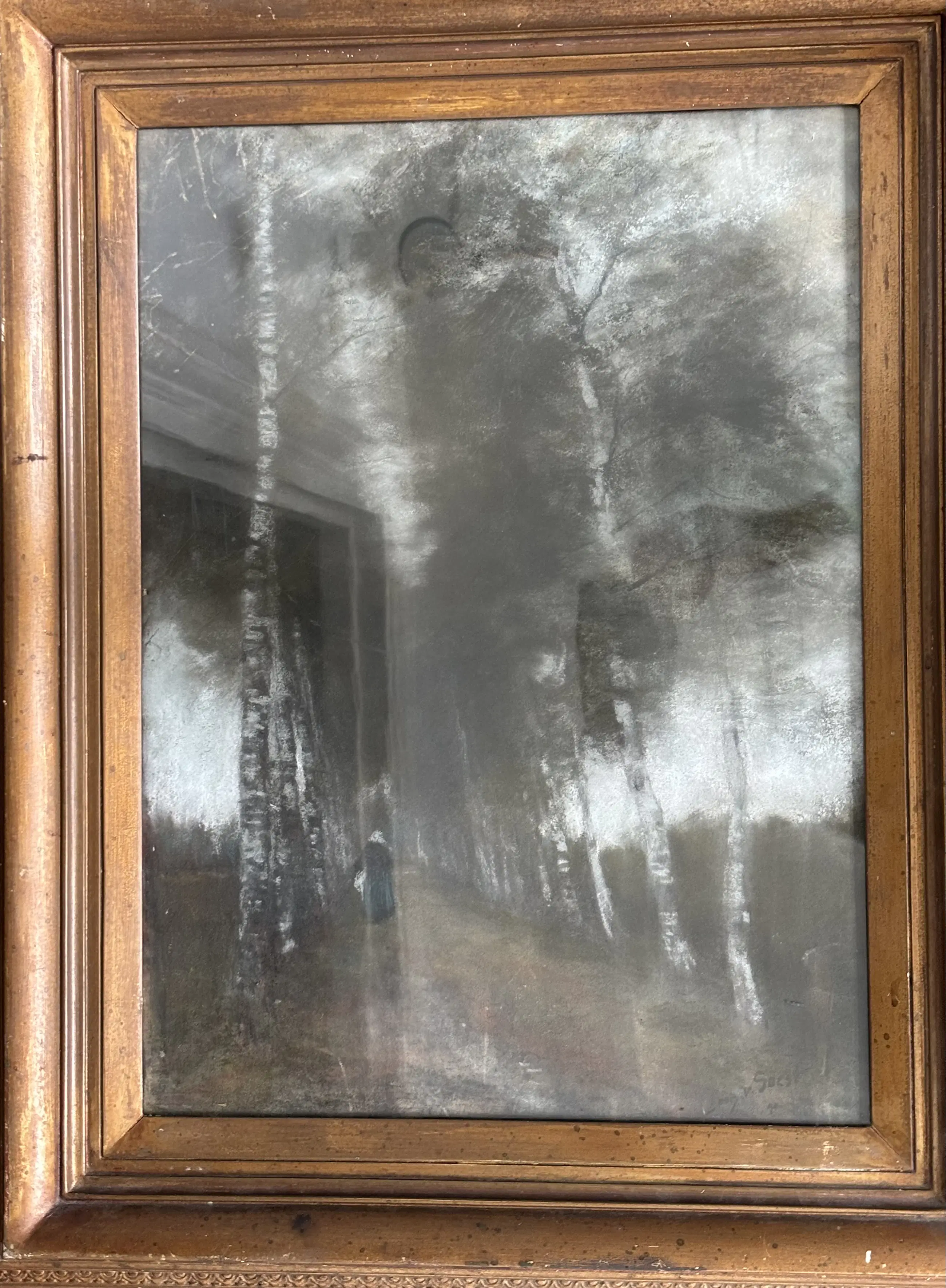 Woman Walking in Houache Lane, on canvas in a glass frame. The work is signed and dated lower right.