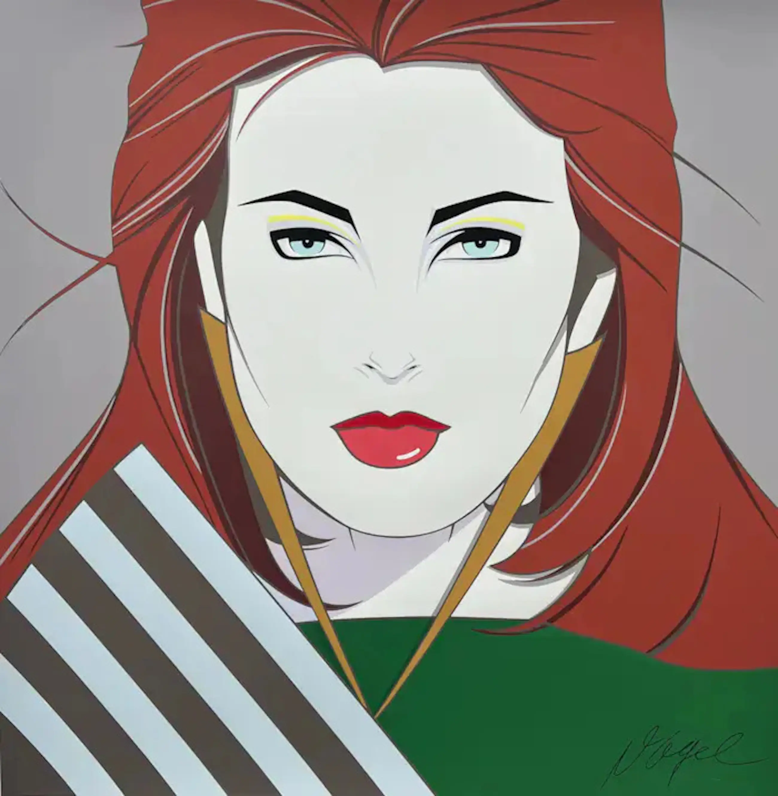 Very beautiful and large color screen print by the famous American artist Patrick Nagel.