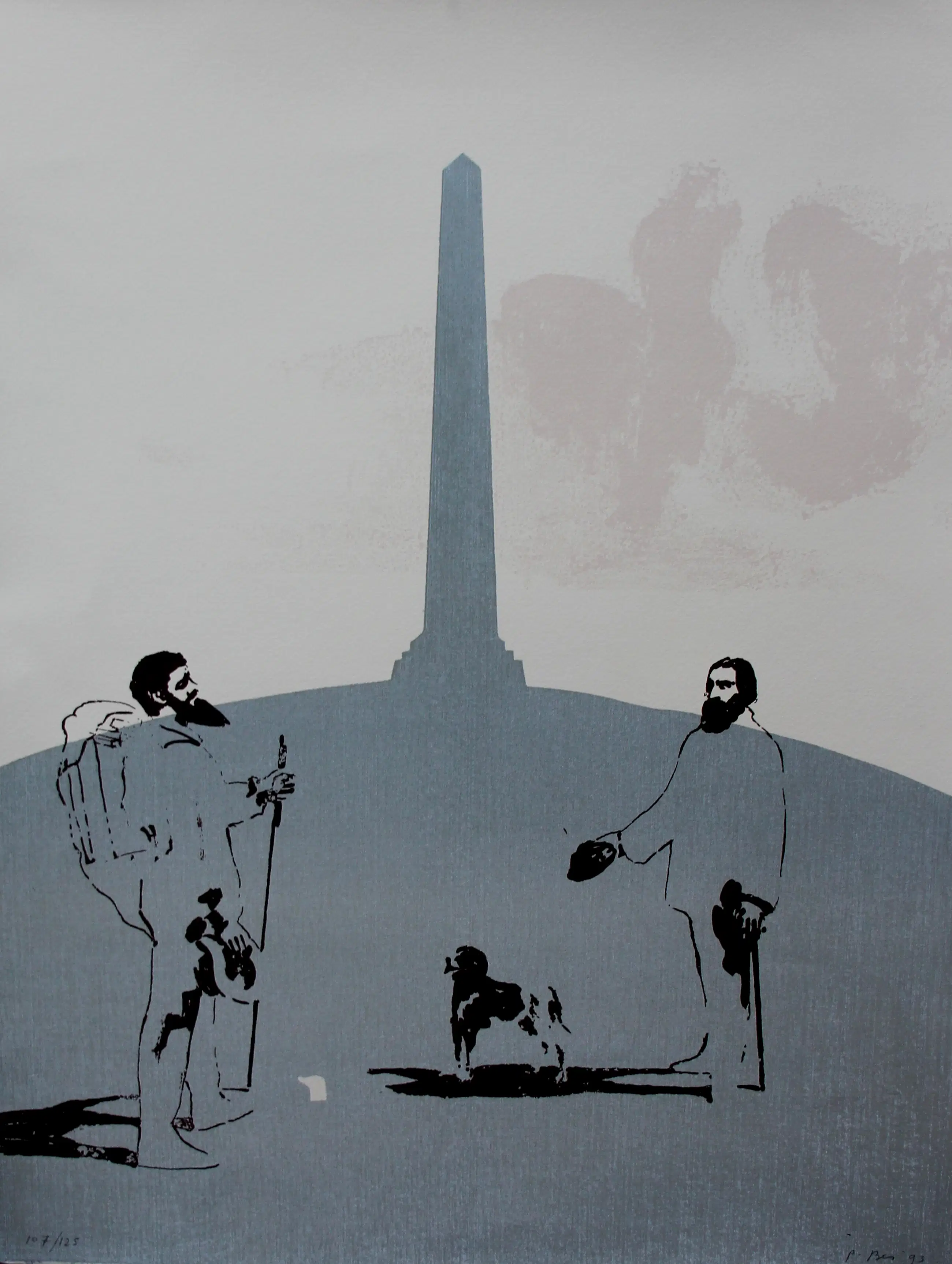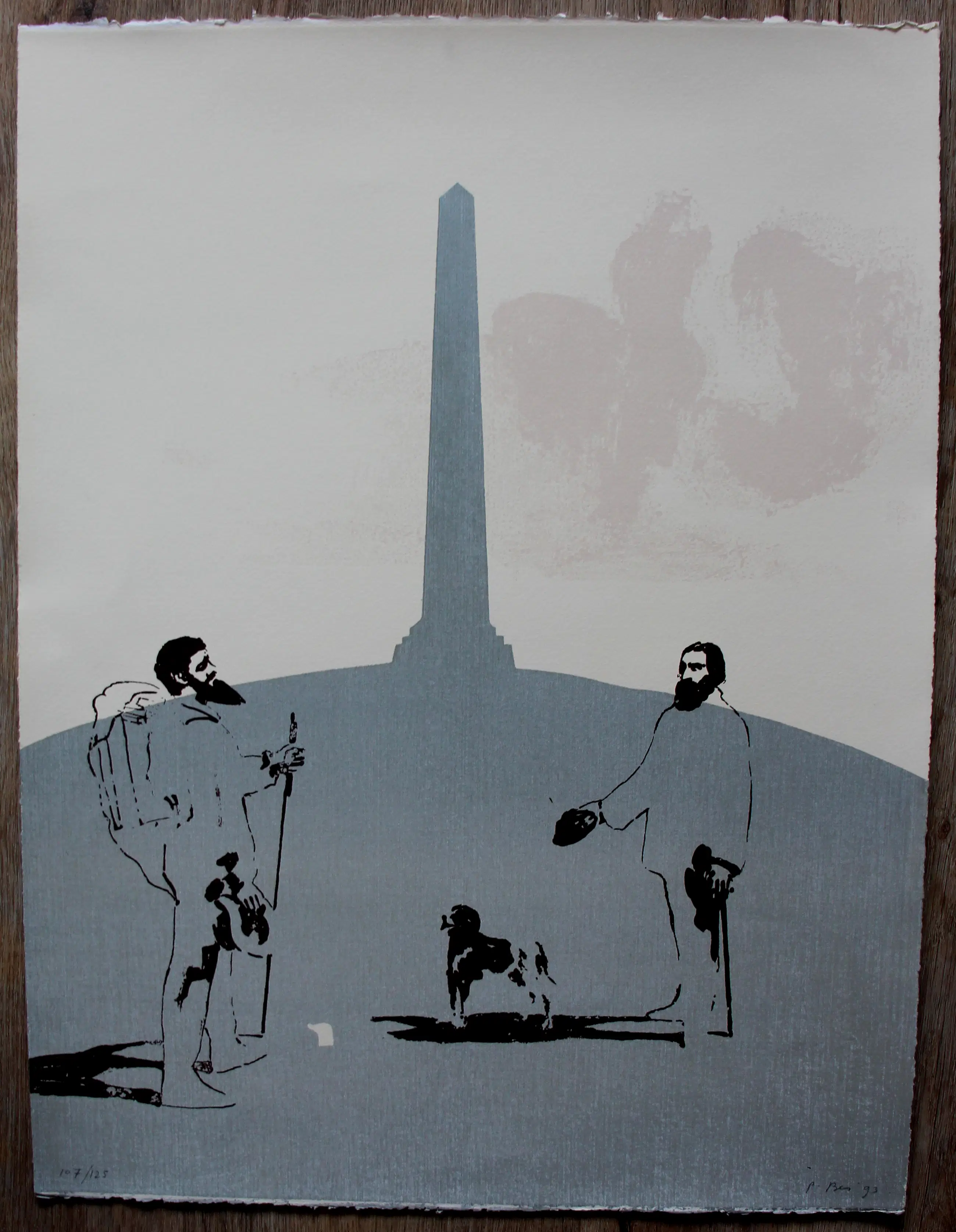 Silkscreen by Peter Bes. Title: The Meeting. Year: 1993. Edition: 107/125. Sheet dimensions: H66 x W50cm. Image dimensions: H50 x W42cm. The work is signed by the artist at the bottom right. The authenticity of this work is fully guaranteed. A certificate of authenticity can be emailed upon request.