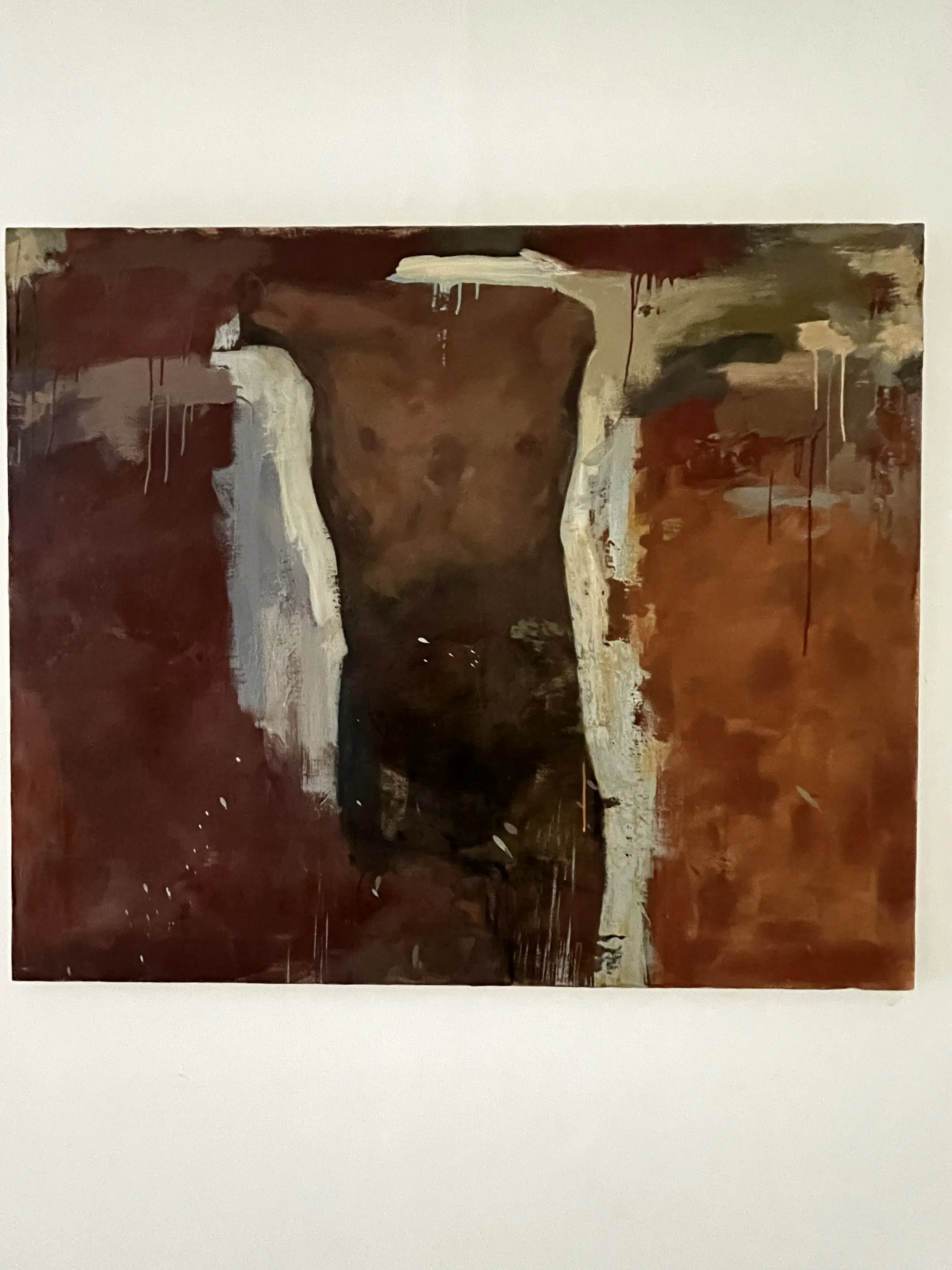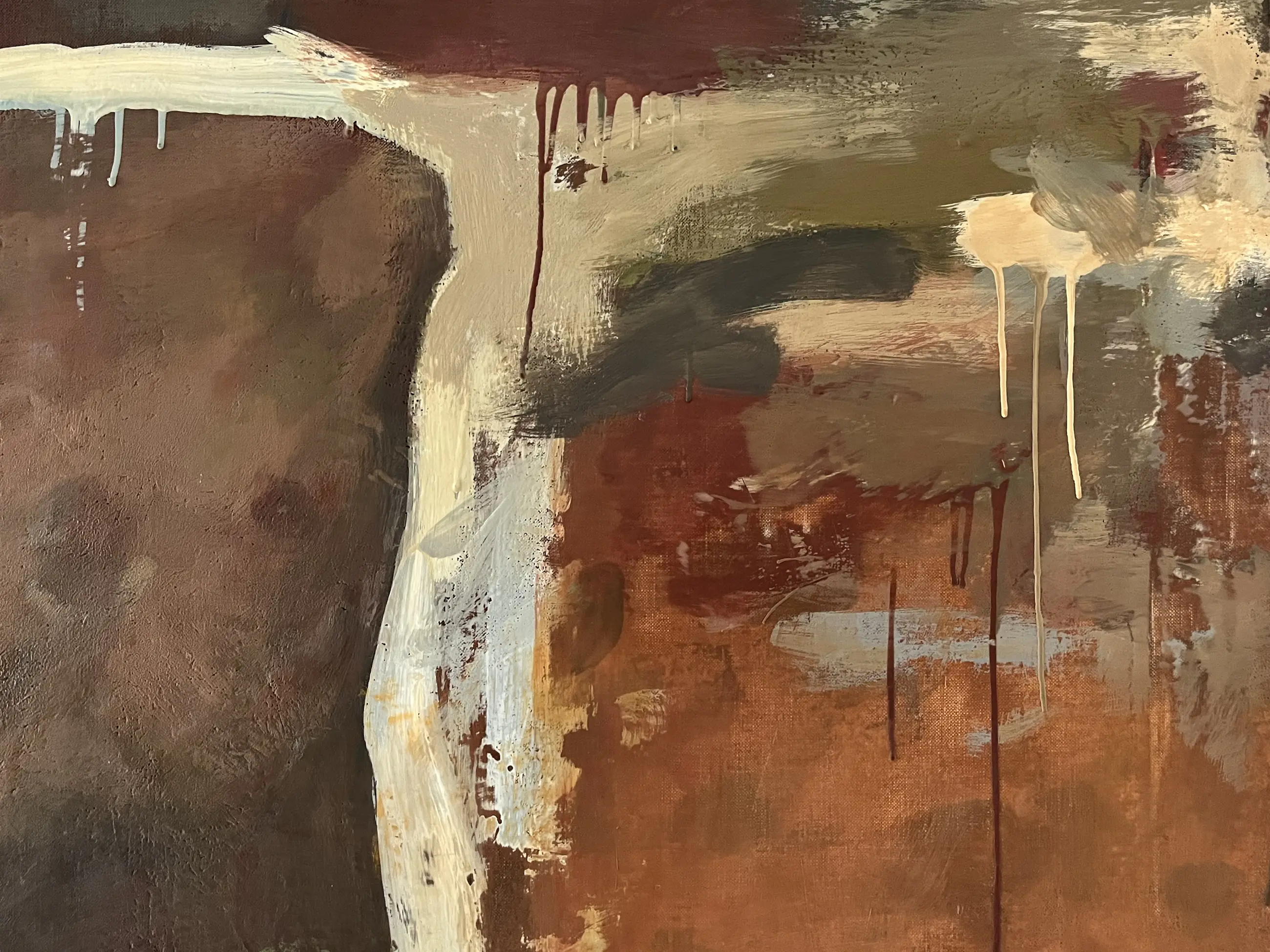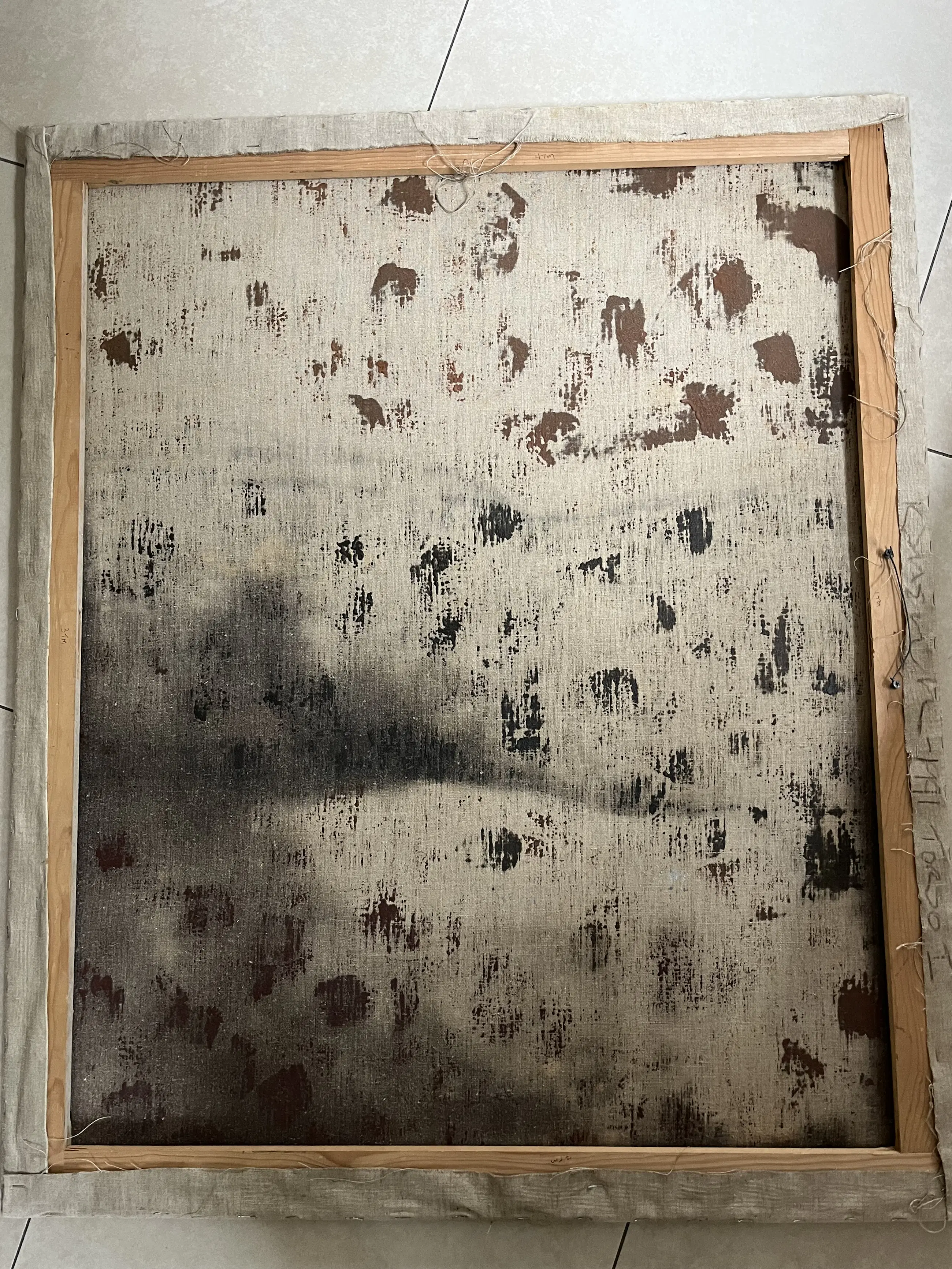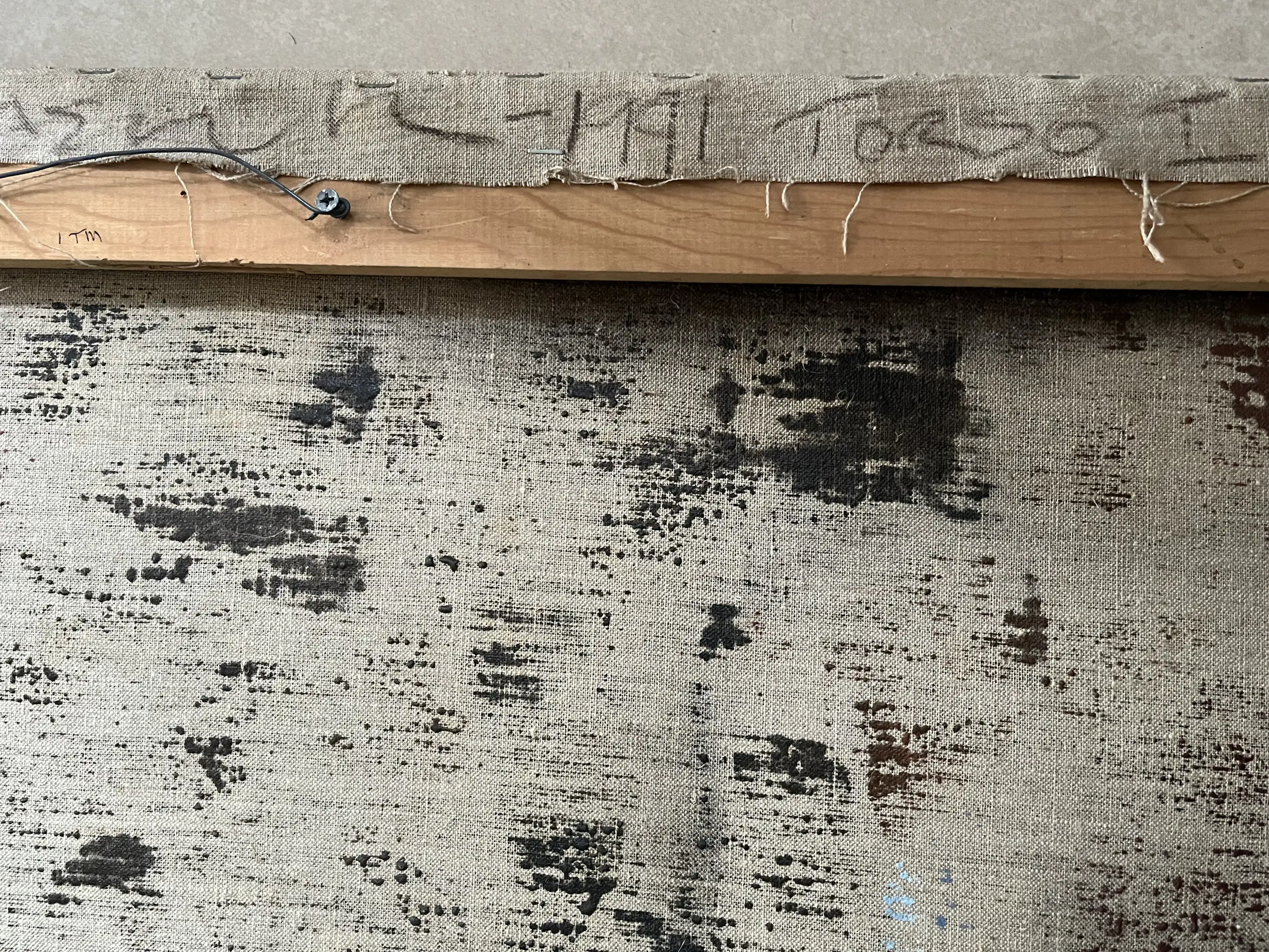Characteristic painting from 1991 Work is not framed. Signature is difficult to read Dimensions 100 x 120 cm.