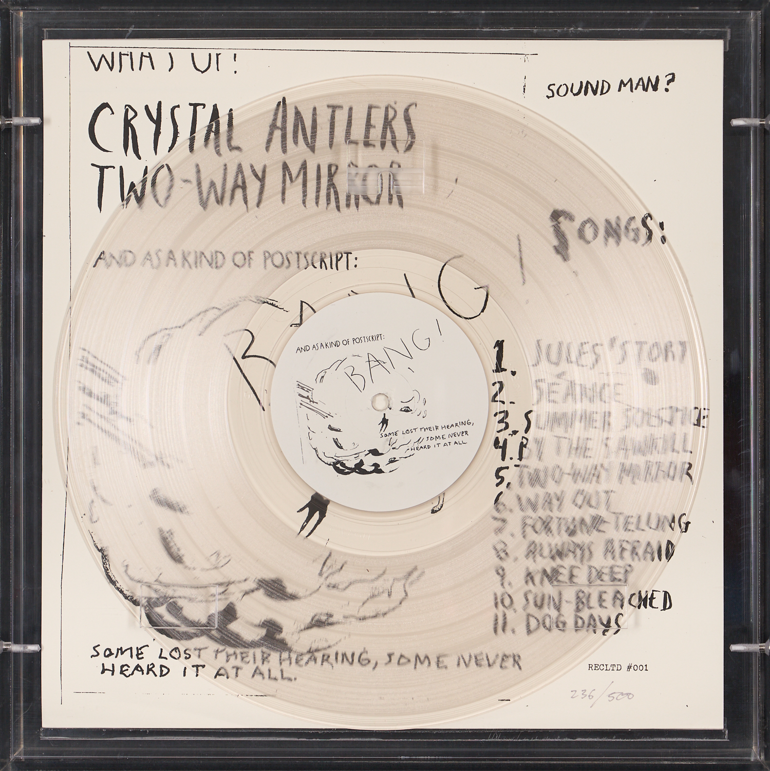 An original LP »Two-Way Mirror« by the US band Crystal Antlers from 2011, released under the label RECLTD #001, with a cover specially designed by Pettibon.