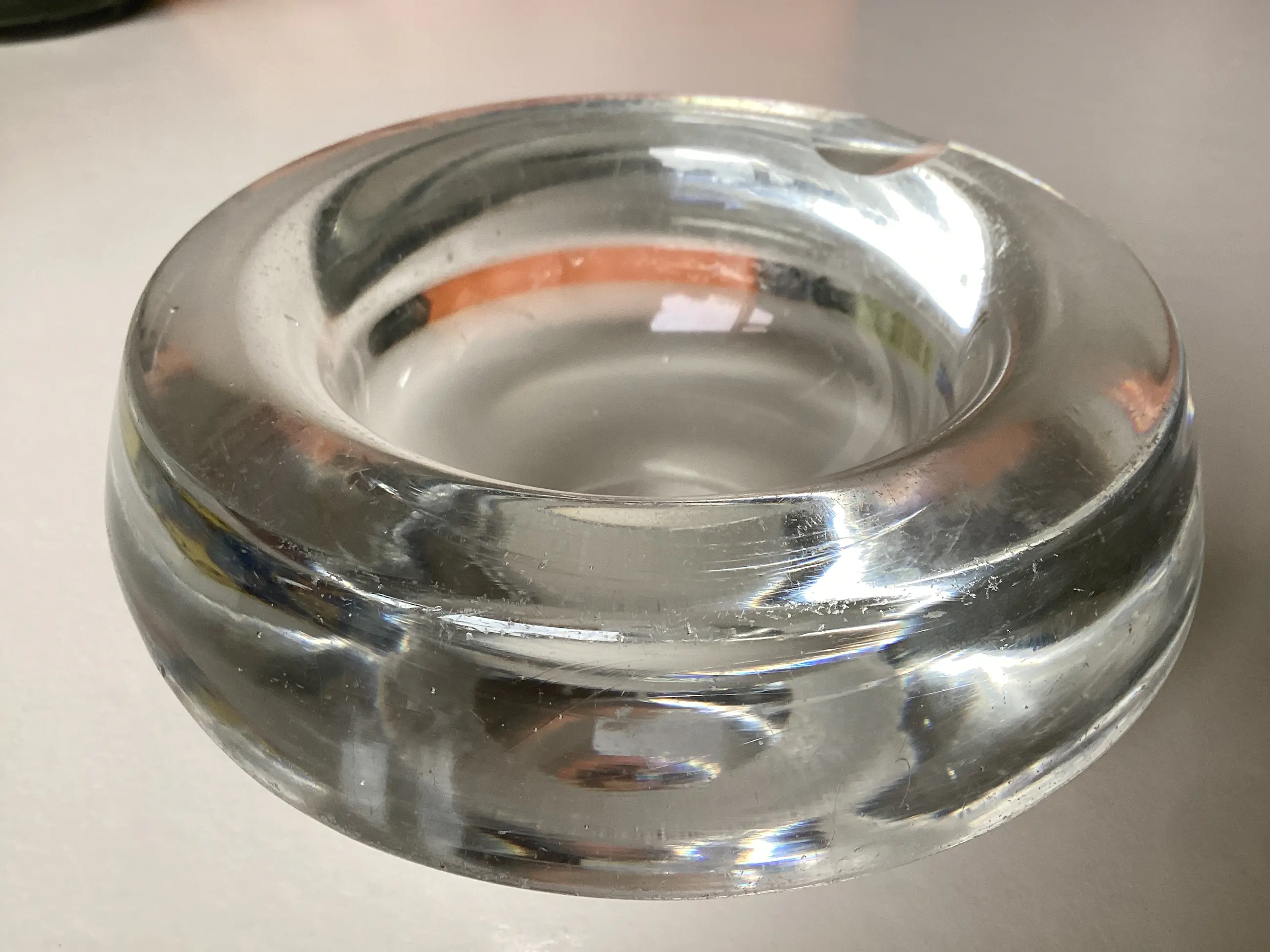 Leerdam heavy glass ashtray, approx. 1340 grams. Provided with a marking on the bottom. Ca. 1930. Traces of use