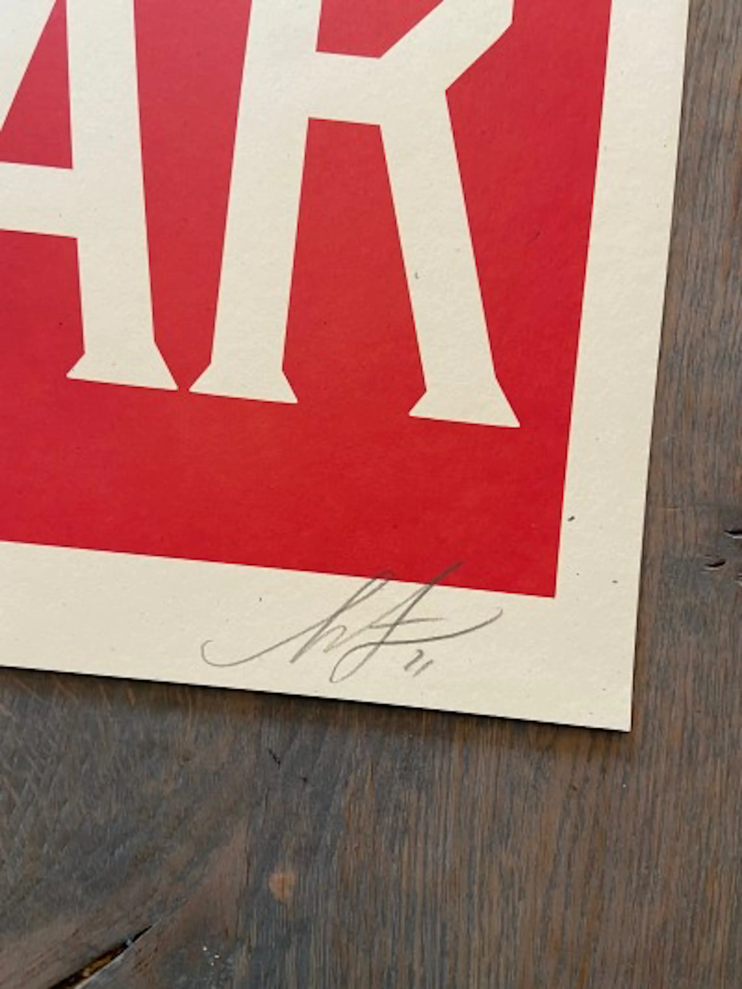 Werk van shepard fairey, gesigeerde litho, 91x61cm.