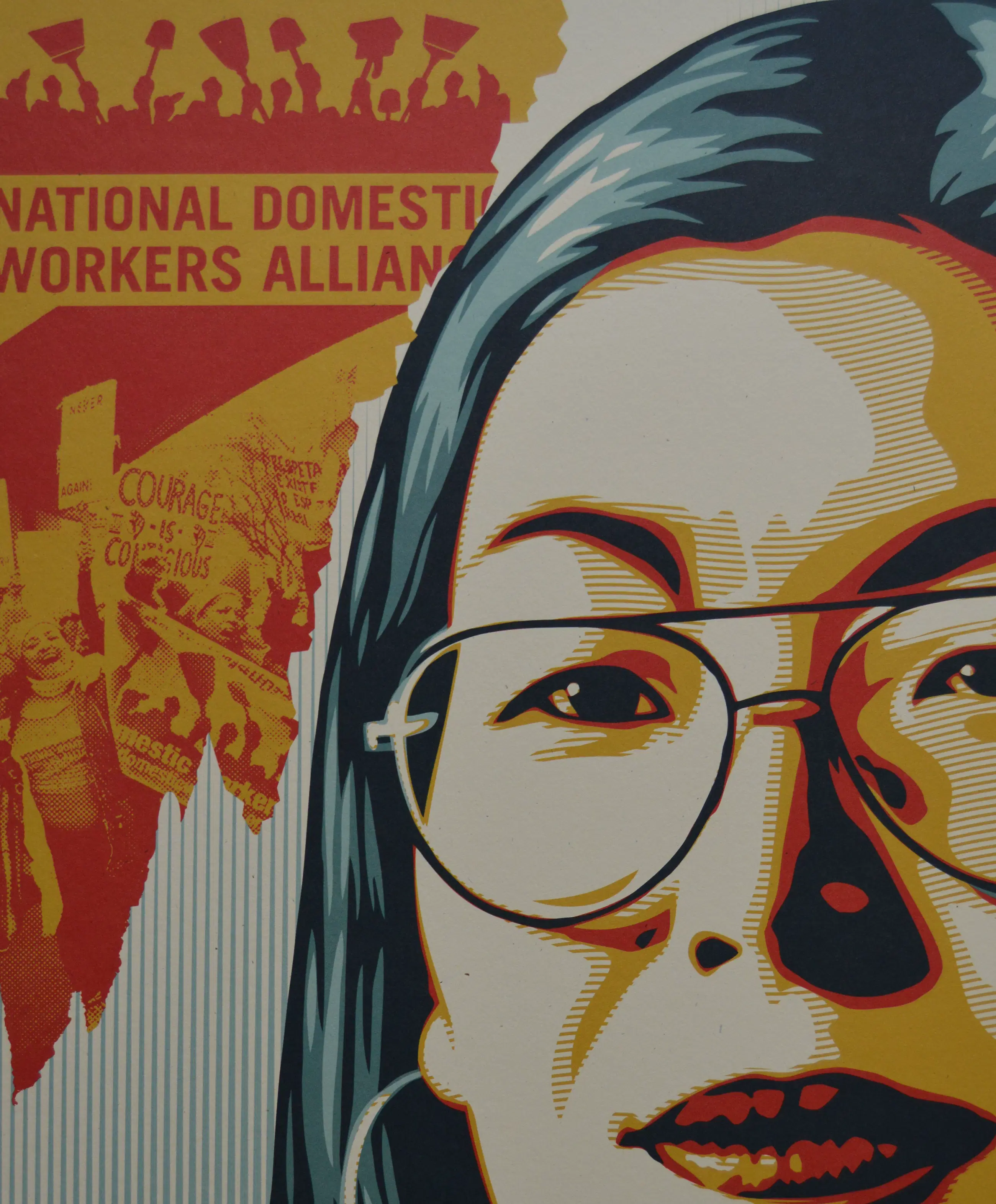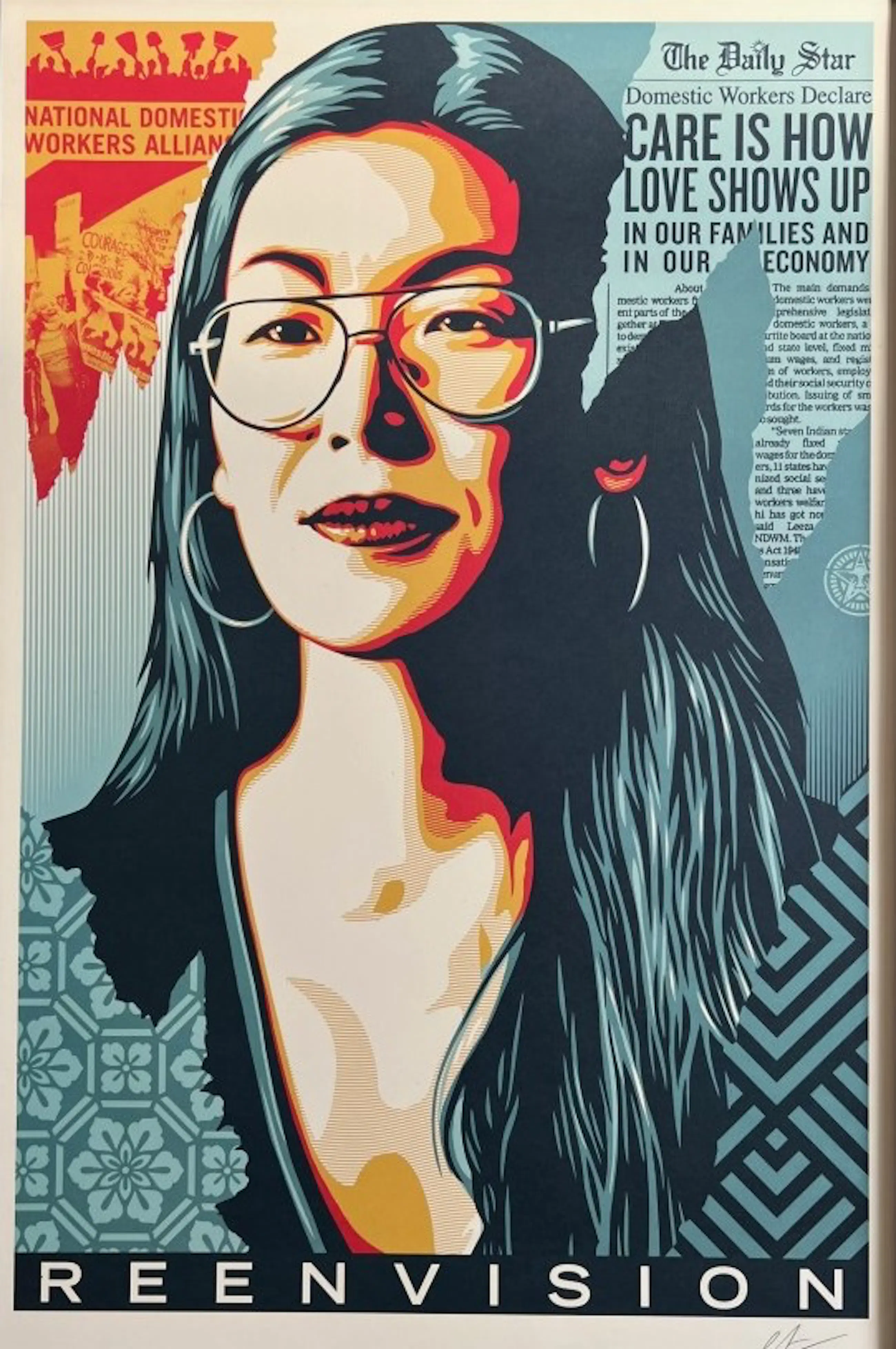 Met visionaire leiders, zoals Ai-Jen Poo, is het tijd om de kwesties die zijn gebruikt om ons te verdelen te HERFRAMEN en de gesprekken te beginnen die ons vertrouwen in elkaar kunnen herstellen. (Fairey)