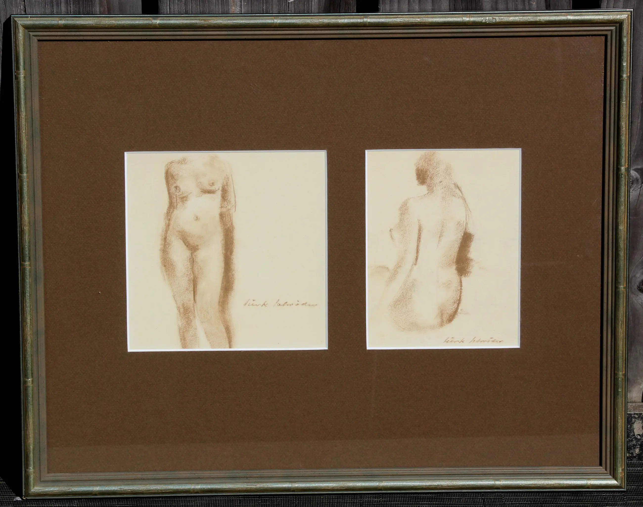 Two chalk drawings (nudes) by Sierk Schröder. Dimensions frame: H41.5 x w73cm. Dimensions representations total: H24 x w55cm. The works are signed by the artist at the bottom. The authenticity of the work offered is fully guaranteed. A certificate of authenticity can be emailed upon request.