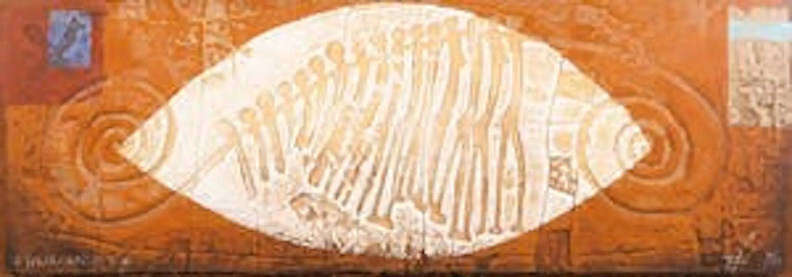 Beautiful wide artwork, with mainly brown (walnut?) in the frame and the work itself. Just moved, so I don't have room for it anymore.