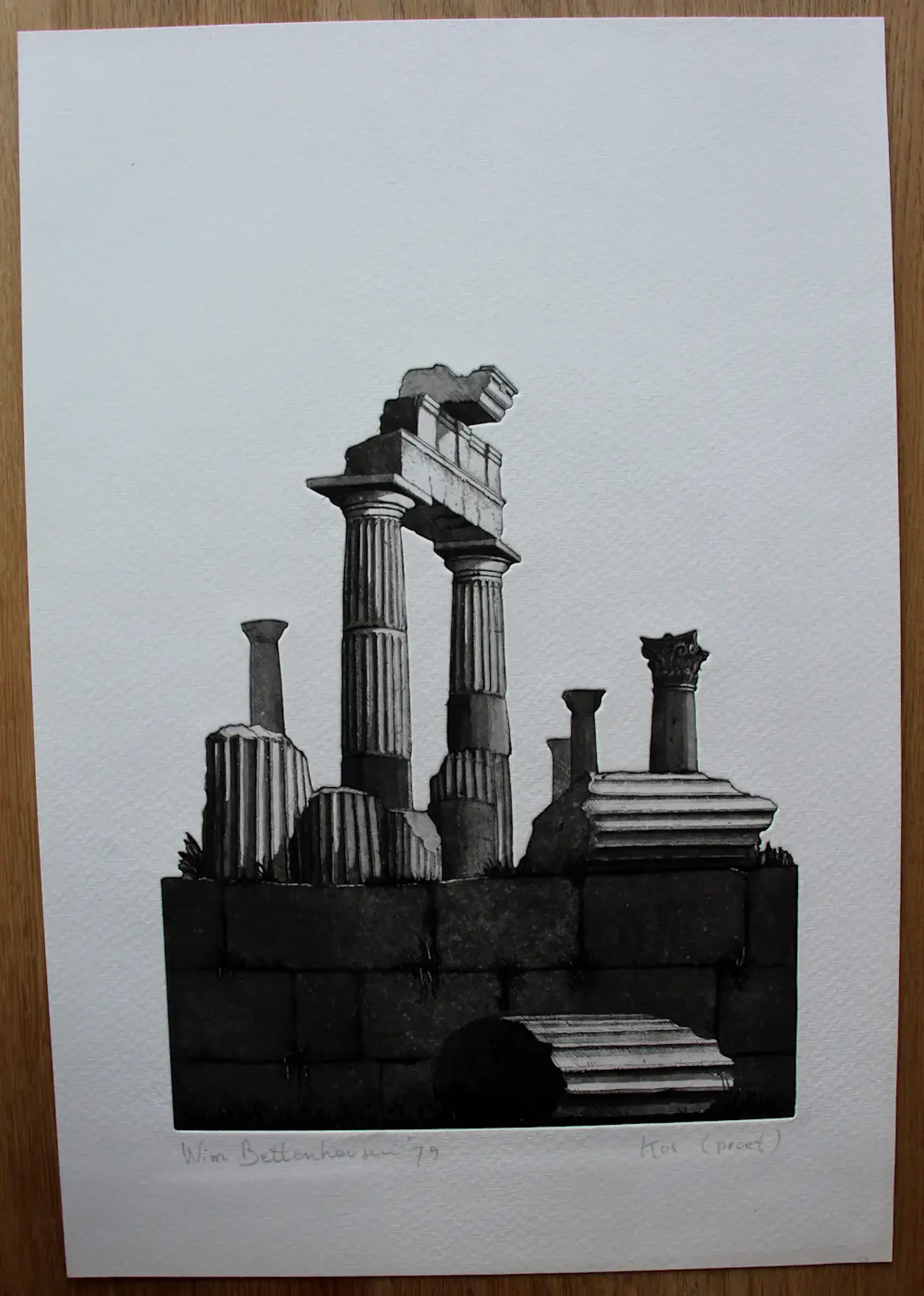 Etching by Wim van Bettenhausen. Title: Kos. Year: 1979. Edition: proof. Sheet dimensions: H48.5 x W33cm. Image dimensions: H29 x W24cm. The work is signed by the artist in pencil at the bottom left. The authenticity of the work offered is fully guaranteed. A certificate of authenticity can be e-mailed upon request.