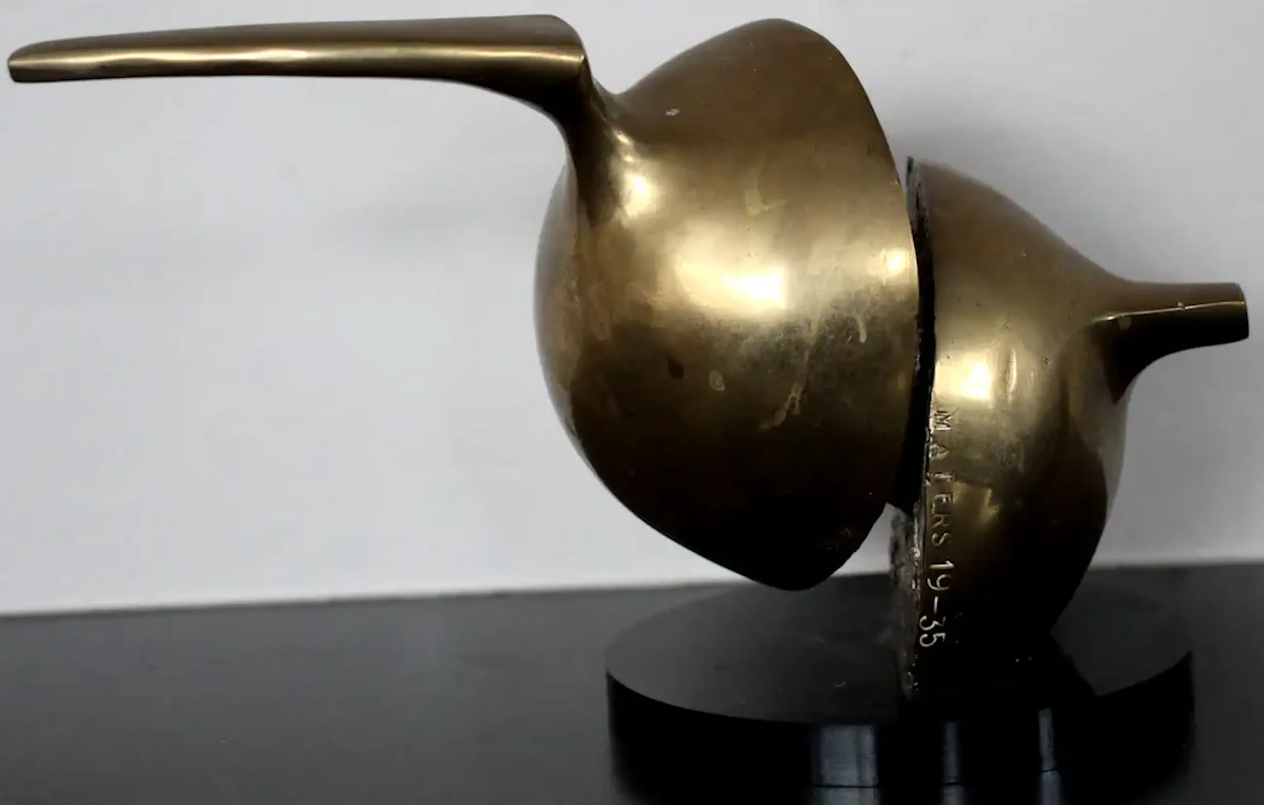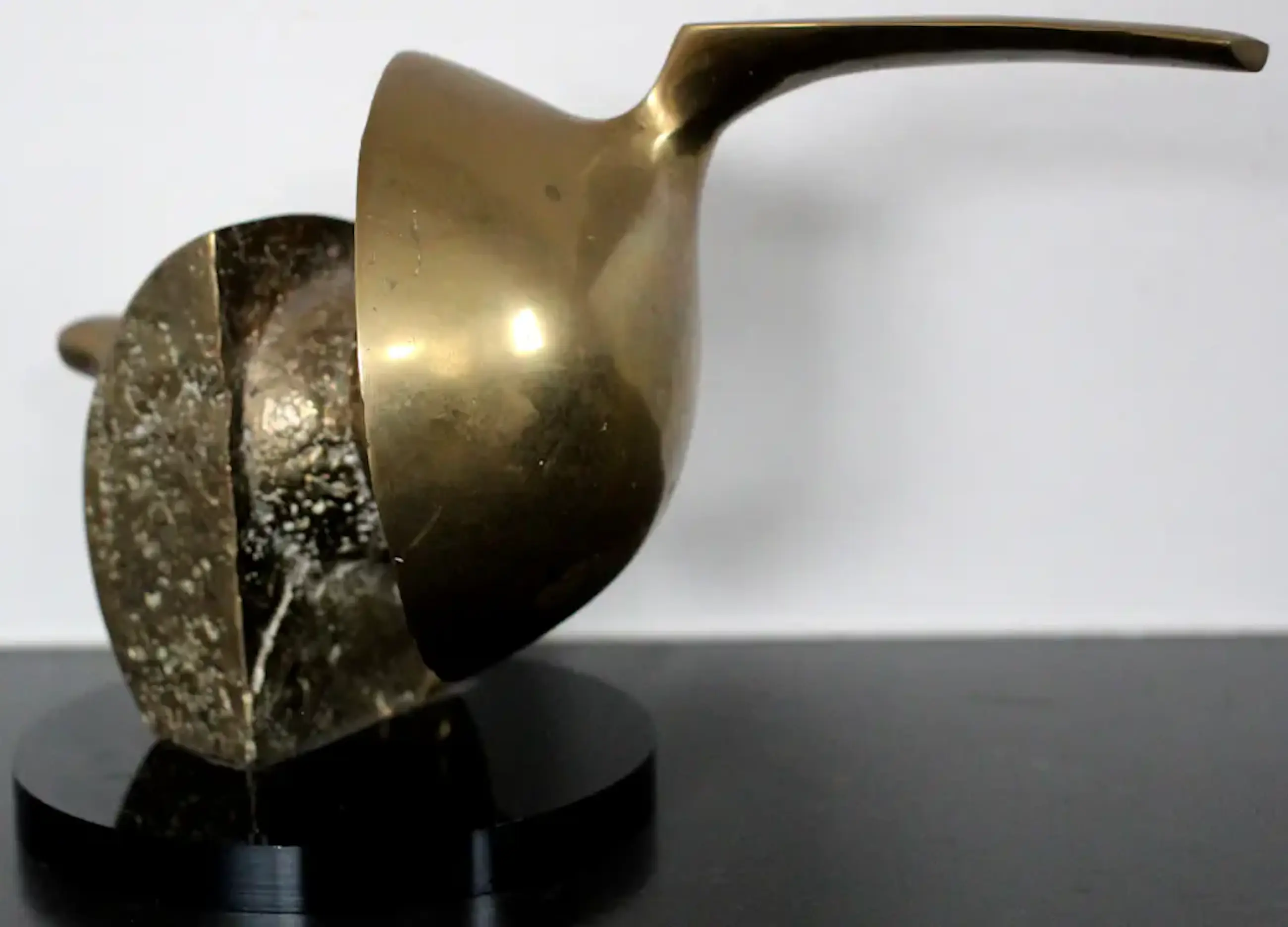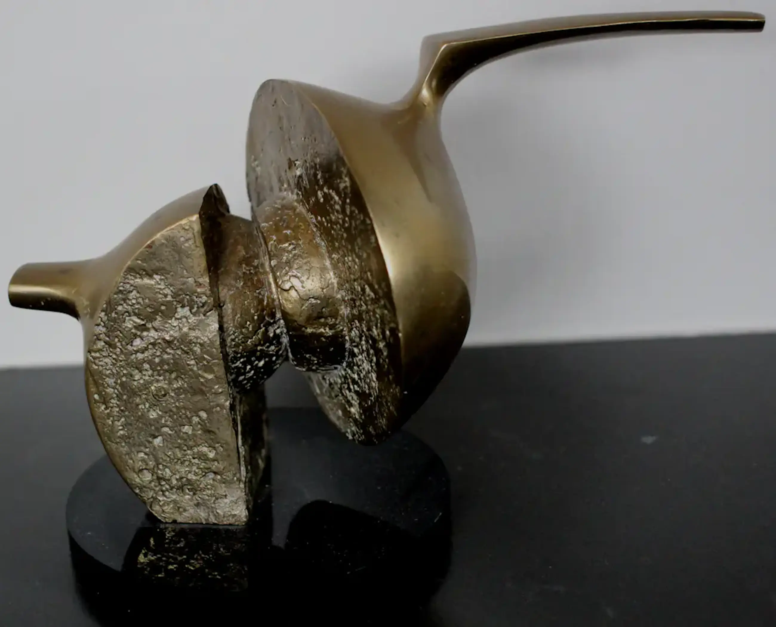 Bronze statue, on a plastic base, by Wout Maters. Abstract composition. Year: 1983. Dimensions statue incl. base: H12.5 x w20cm x w15cm. The statue is numbered (19/35) and signed by the artist. The authenticity of the work offered is fully guaranteed. A certificate of authenticity, from Kiewit Kunst, can be emailed upon request.