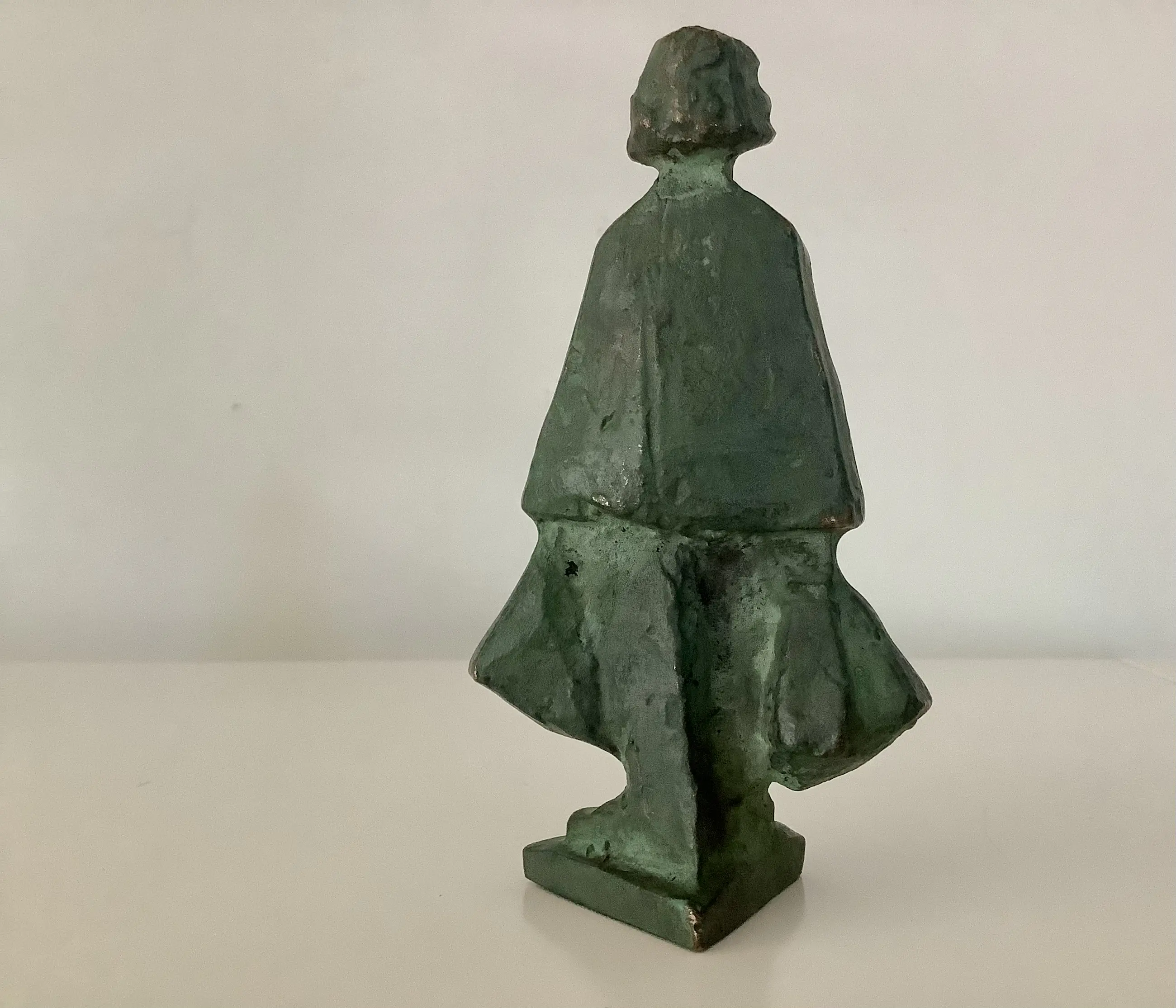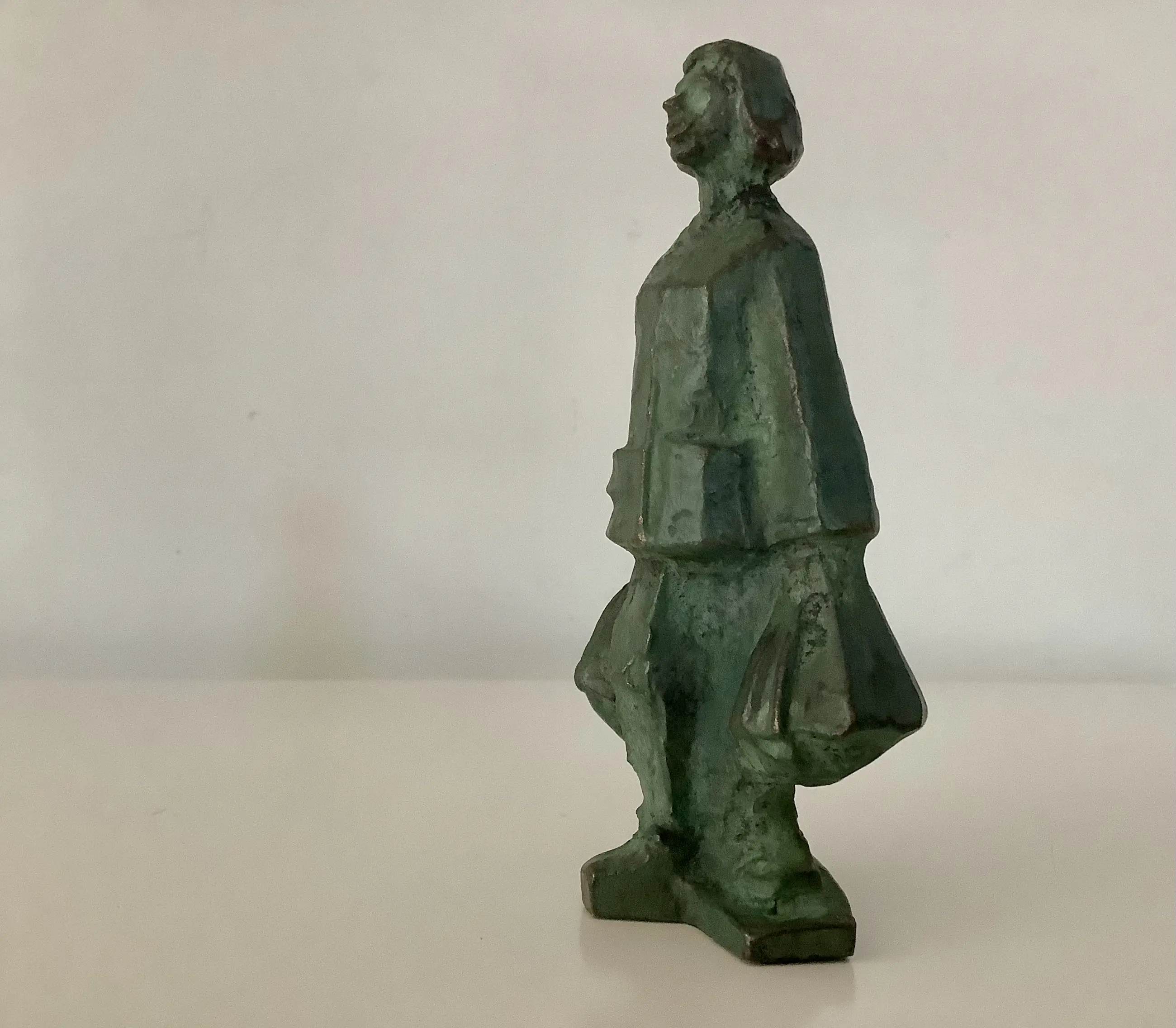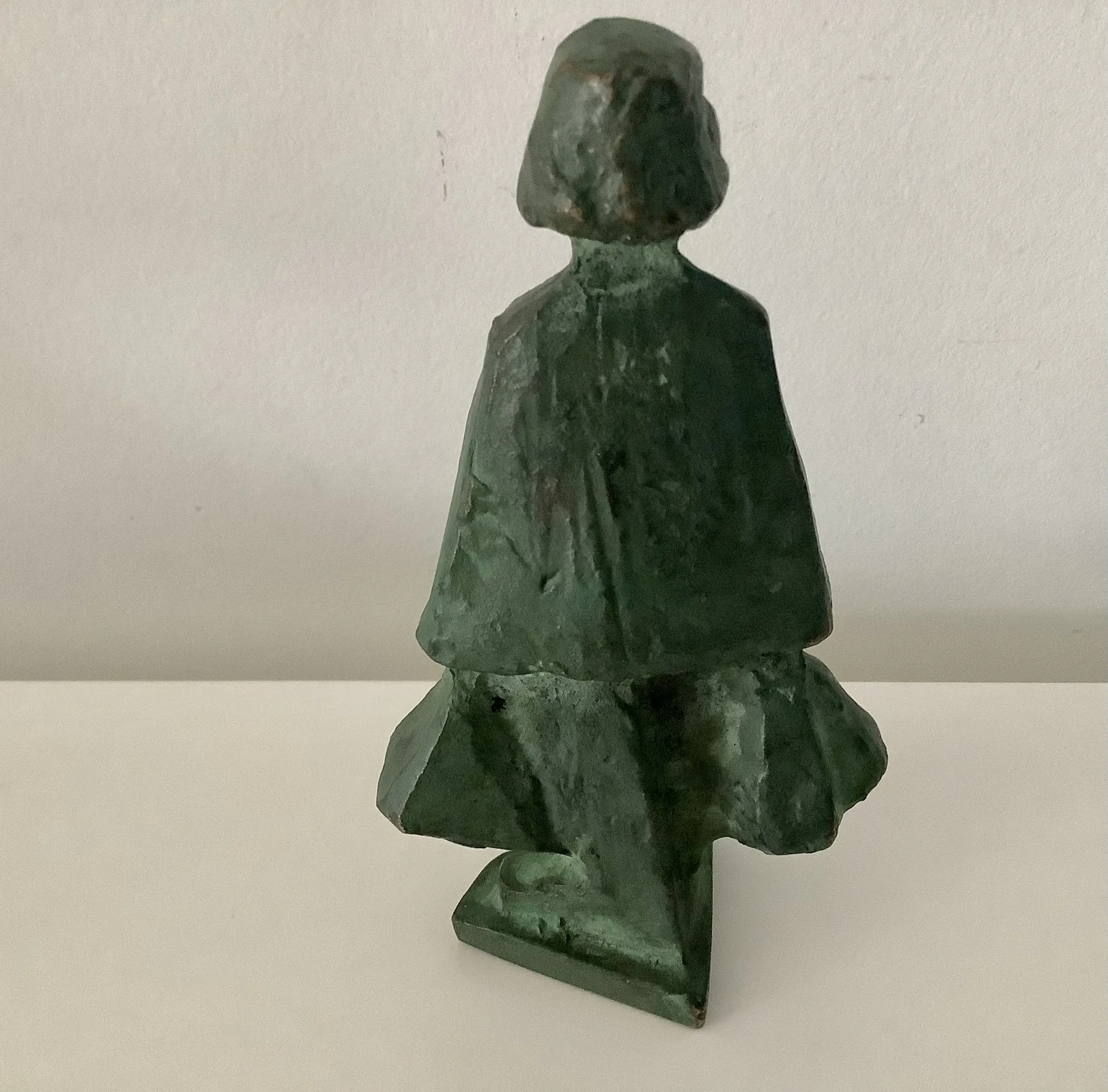 Œuvre bien connue de A. Braat, intitulée « Beppie ». Statue lourde en bronze massif avec une belle patine verte.