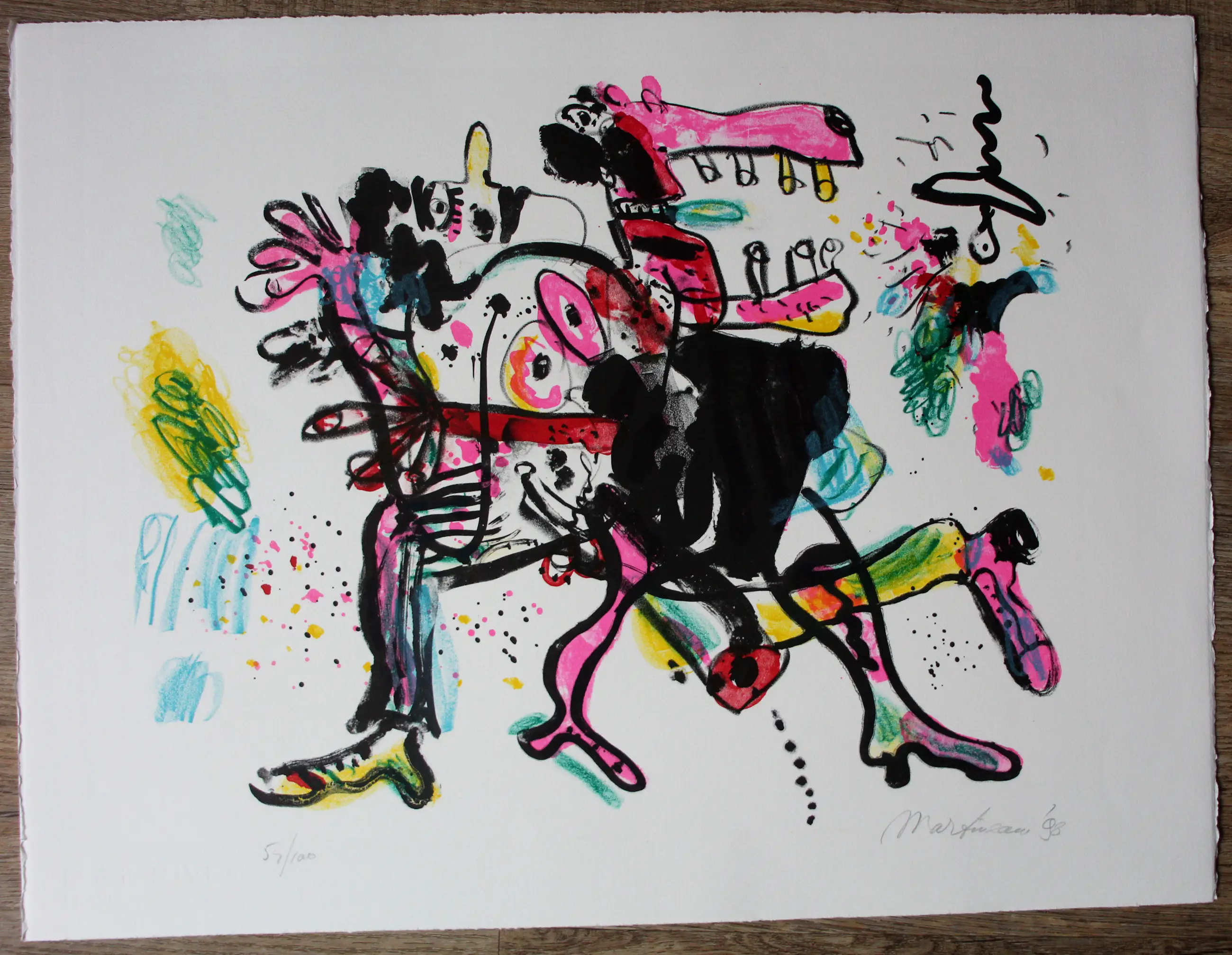 Lithographie colorée d'Anton Martineau. Titre : Tango. Numéro : 54/100. Dimensions de travail : H50,5 x l65,5cm. Dimensions : H42 x L51cm.